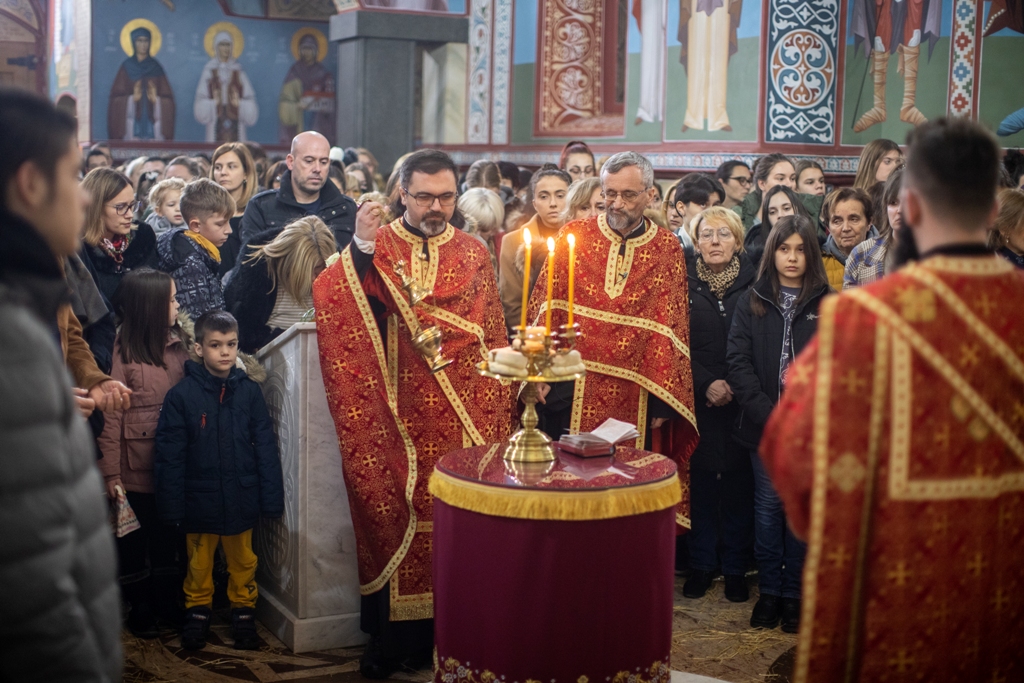 На Оце свештеници храма Успења Пресвете Богородице у Младеновцу даривали су сву децу која су се сабрала на богослужењу. Недељу дана раније деца су била даривана након евхаристијског сабрања од стране младеновачких попадија. Овај леп обичај започет је претпрошле године и деца му се посебно радују. На Бадње вече након вечерњег богослужења прочитана је Божићна посланица Његовог Преосвештенства Епископа шумадијског Г. Јована. Више хиљада Младеновчана, који су у раним вечерњим часовима испунили у потпуности храм Успења Пресвете Богородице и црквену порту, желели су да чују Богонадахнуте речи свог Архијереја и захваљујући чињеници да је било обезбеђено озвучење нису остали ускраћени. Након окрепљујућих речих нашег Владике обављено је освећења бадњака и верујућим Младеновчанима је подељено више од пет стотина бадњака. Стога, ни у овим тешким временима када многи верници услед радних обавеза нису у могућности да Бадњи дан проведу са својим породицама и испуне обичаје везане за овај живописни празник, залагањем својих свештеника нису остали ускраћен за овај древни елемент прославе Божића.