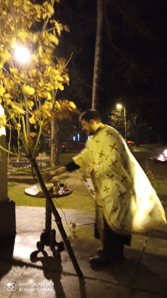 Бадњи дан у нашем храму започео је Светом Литургијом, коју је служио јереј Милош Маринковић, и на којој се причестио велики број верних, а увече је служено повечерје у препуној цркви. Верницима је причитана Божићна посланица Епископа шумадијског Господина Господина Јована, а потом су верници, заједно са најмлађима чије присуство доноси посебну радост у храму, након богослужења, кренули у опход око цркве заједно са својим парохом. Након тога бадњак је освећен и спаљен. Као сваке године, што је сада већ дугогодишња традиција, скромна трпеза љубави организована је трудом домаћица које на Бадње вече доносе своје дарове.