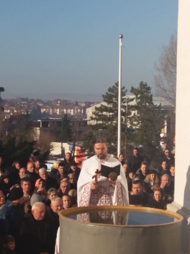 После Свете Литургије обављено је велико освећење воде, коју је верни народ у току целог дана точио и носио својим домовима, да им буде за духовно и телесно здравље и напредак. У наставку прославе овог празника у нашем граду, а у организацији Црквене општине лазаревачке, на језеру Очага одржано је богојвљенско пливање за Часни крст.
