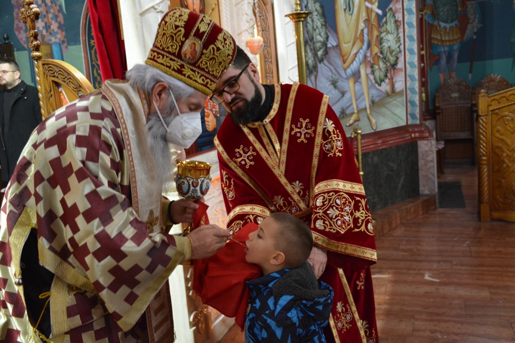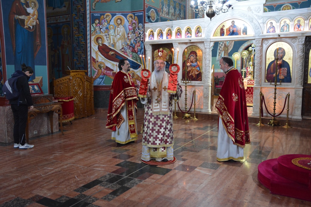 Епископу су саслуживали старешина храма протојереј-ставрофор Зарије Божовић, протојереј Срећко Зечевић, протођакон Иван Гашић и Небојша Јаковљевић.