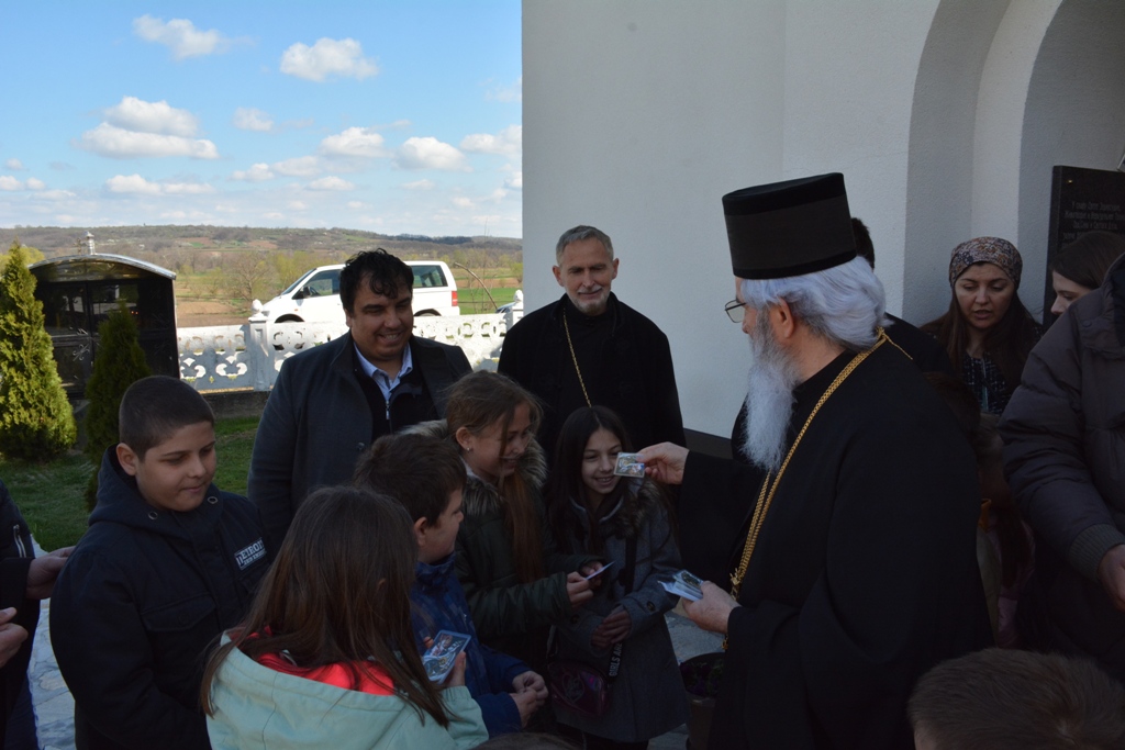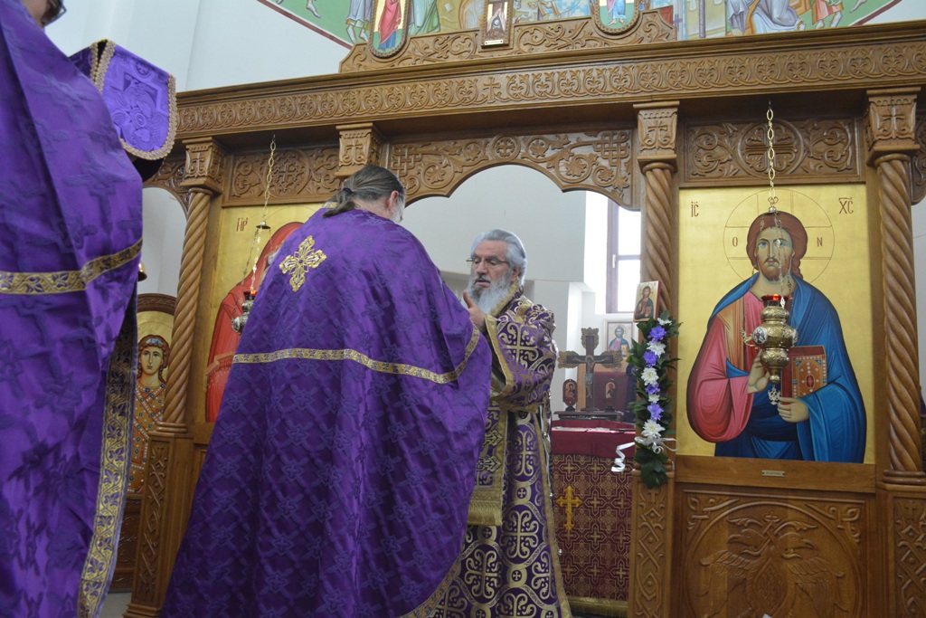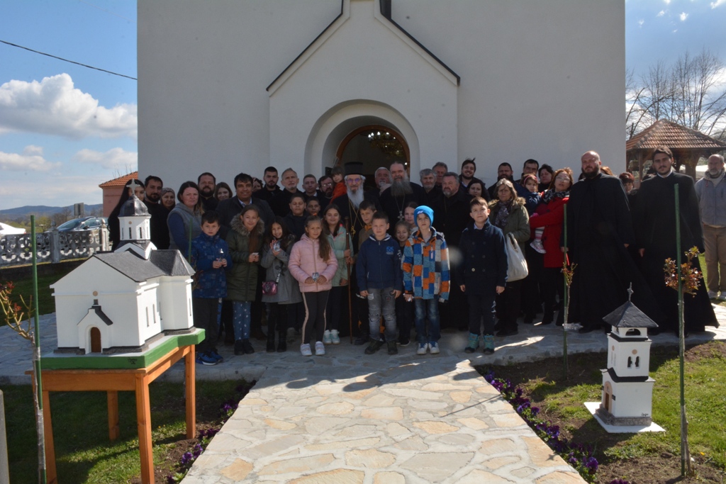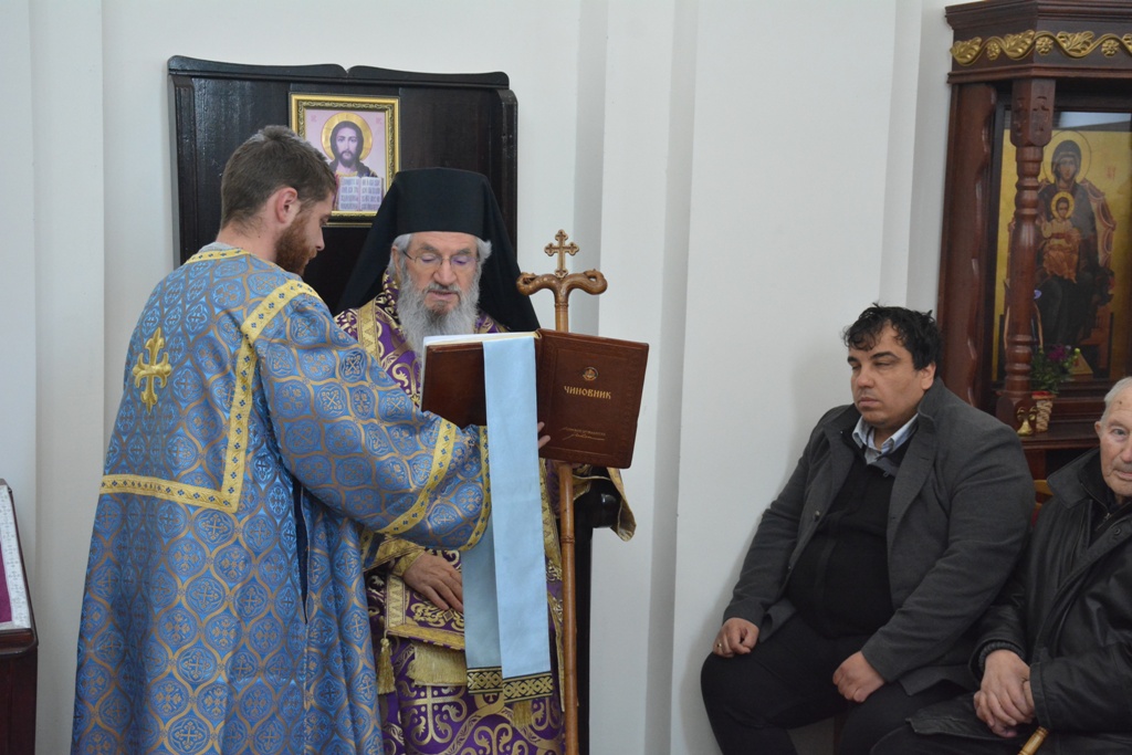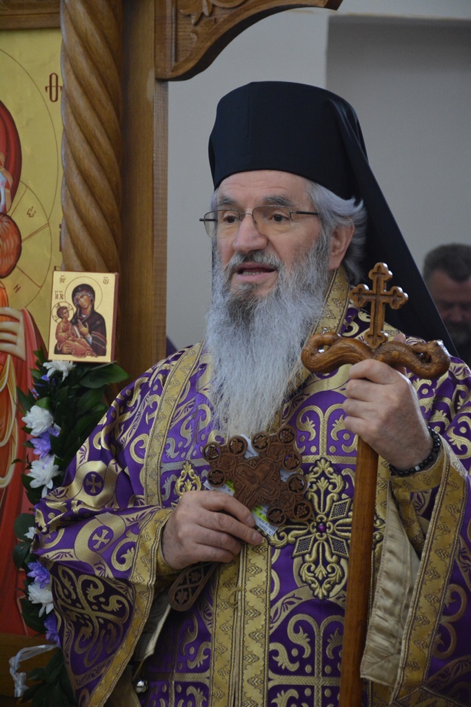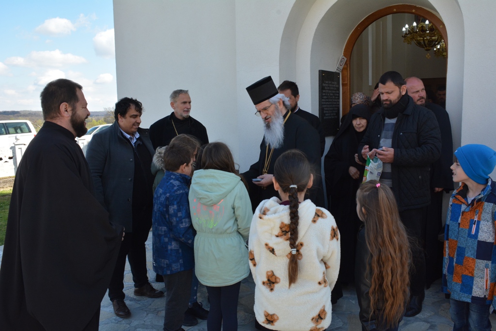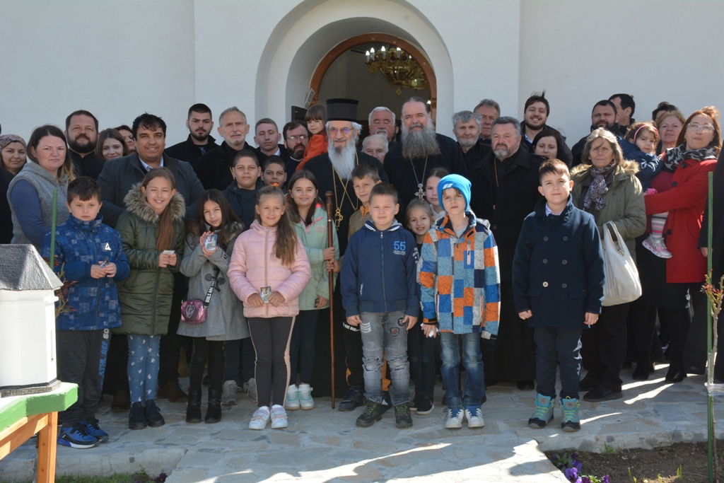 У богонадахнутој беседи Владика Јован је рекао: “Окупили смо се да служимо Свету Литургију, да се Богу молимо, да молимо Бога да нам буде милостив; а Он јесте милостив. Он ће своју милост пружати према нама онолико колико смо ми милостиви према њему, колико смо милостиви једни према другима. Да заблагодаримо Богу што нас је привео овој недељи, и на сам почетак ове недеље сабрао овде, јер ова недеља, шеста недеља Великог и васкршњег поста јесте увод у Велику недељу, Страсну недељу.Називамо је страсном јер је Господ ради нас и ради наших грехова страдао за нас. Прихватио је да Га људи и пљују и шамарају и прикују живог на Крст, све из љубави према нама. И у оме јесте највећа љубав Божија што нас је Господ управо преко Крста загрлио. И ми тога треба да се сећамо, да се сећамо те љубави Божије, да је Бог Отац није пожалио свог јединородног Сина да страда да се ми поново спасемо, да се ми поново вратили тамо где нам је намењено место било пре пада, а то је рај. Зато Господ нас позива увек, а посебно у овим посним данима да се молимо. Њему молитве наше нису потребне, али су нама потребне. Зашто? Зато ако се правилно молимо и разговарамо са Богом, да применимо то на свакодневни живот, ако хоћемо да нешто добијемо од неког човеке. Ми понизно молимо, и ако кажемо молим те дај ми то, поајми ми. И добићеш. Али ако са дрскошћу кажемо: ма мораш да ми даш, е неће нам дати ни овајчовек, неће нам дати ни Бог. Зато Бог тражи молитву, наше смирење, нашу љубав. Бог нам је дао себе тимре што нам је дао Цркву, што нам се даје у Цркви и даје нам се Господ у свим хришћанским врлинама у свим светим тајнама, а највише нам се даје Господ у Светој тајни Причешћа. Пазите, Бог нас не оставља, него нам даје себе, да ми још овде у овоме свету, кроз Причешће, осетимо ту заједницу са Богом, осетимо да примамо самога Господа у себе. И зато човек када се причешћује више није сам човек, он је са Богом. Има ли већег дара него да човек буде са Богом и да Бог буде с њиме. Ми требамо да се што чешће ппричешћујемо. Ми треба да верујемо да је у Причешћу сам Господ. Ми вером долазимо до Бога. Али исто тако и вером прилазимо светом Причешћу. Јер ми који се причешћујемо стално треба да се сећамо оних речи Христових ко једе моје тело и пије моју Крв у мени обитава и ја у њему. Заиста Бог обитава у нама. Зато Свети оци кажу онај човек који се причешћује пребива у Богу и Бог обитава у њему. Па куд ћеш већег дара, зар можемо имати већи дар него да Бога задобијемо. Ми људи осећамо дарове овоземаљске које Бог и људи дају. Осећамо и дар што нам је Бог дао живот. Осећамо дар ако живимо хришћанским животом. Осећамо дар кад нам Бог даје пород, кад нам Бог даје другог човека поред себе. Али све је то неупоредиво са даром када Бог себе нама даје. Е зато кажем када се причешћујемо треба да верујемо. Ми примамо самога Бога, не некакве симболе. Зато је потребно, колико год је то могуће нама грешнима, палима, да се припремамо за свето причешће. Има разних начина на које се припремамо: то је пост, стрпљење, милосрђе, молитва, али највећа и најзначајнија припрема наша треба да се састоји у нашем покајању и у нашем исповедању грехова. Искрено покајање. Покајање је велико чудо, велика сила, велика моћ, која преображава човека из грешног у светост, из грешног стања у праведно стање.
