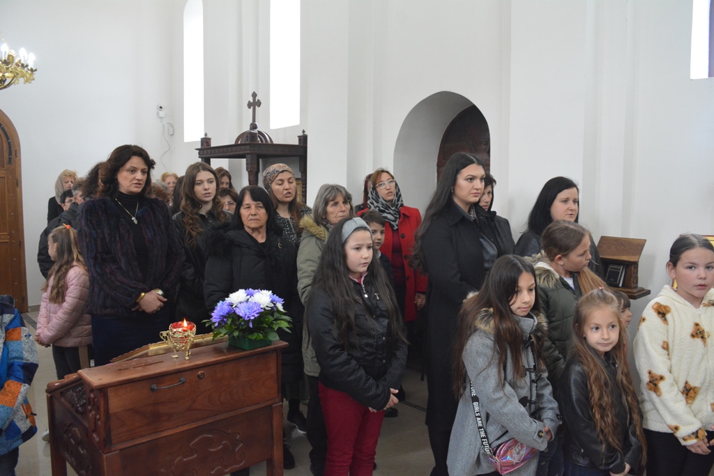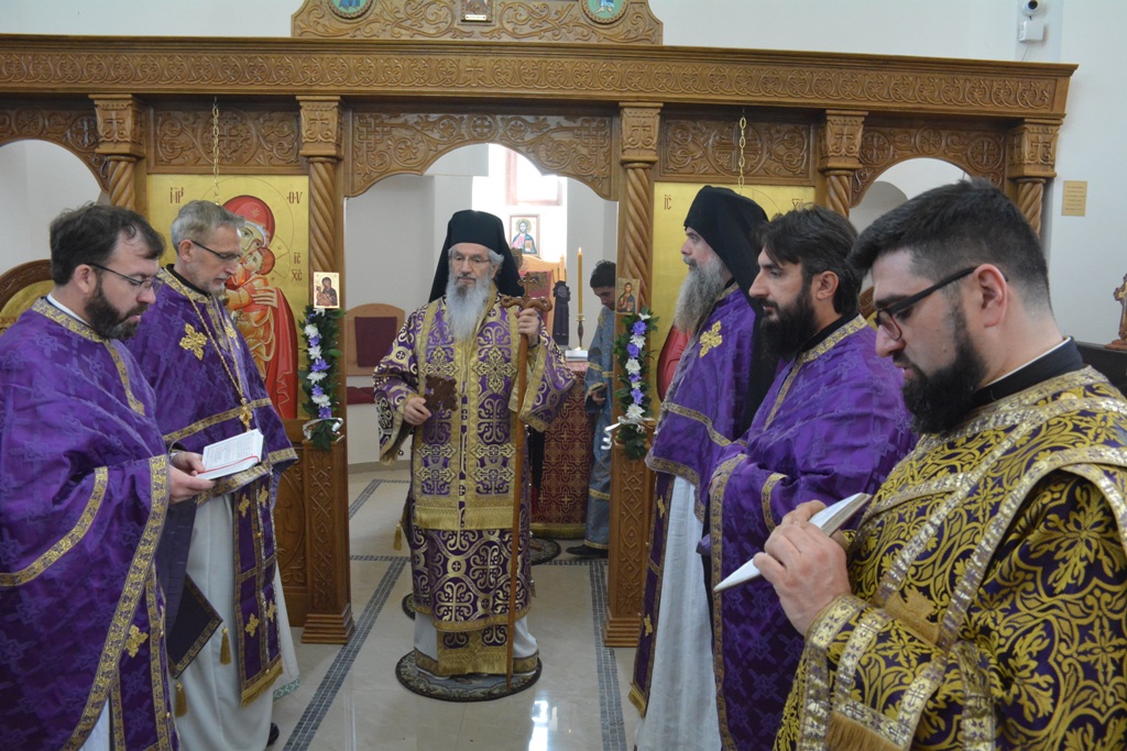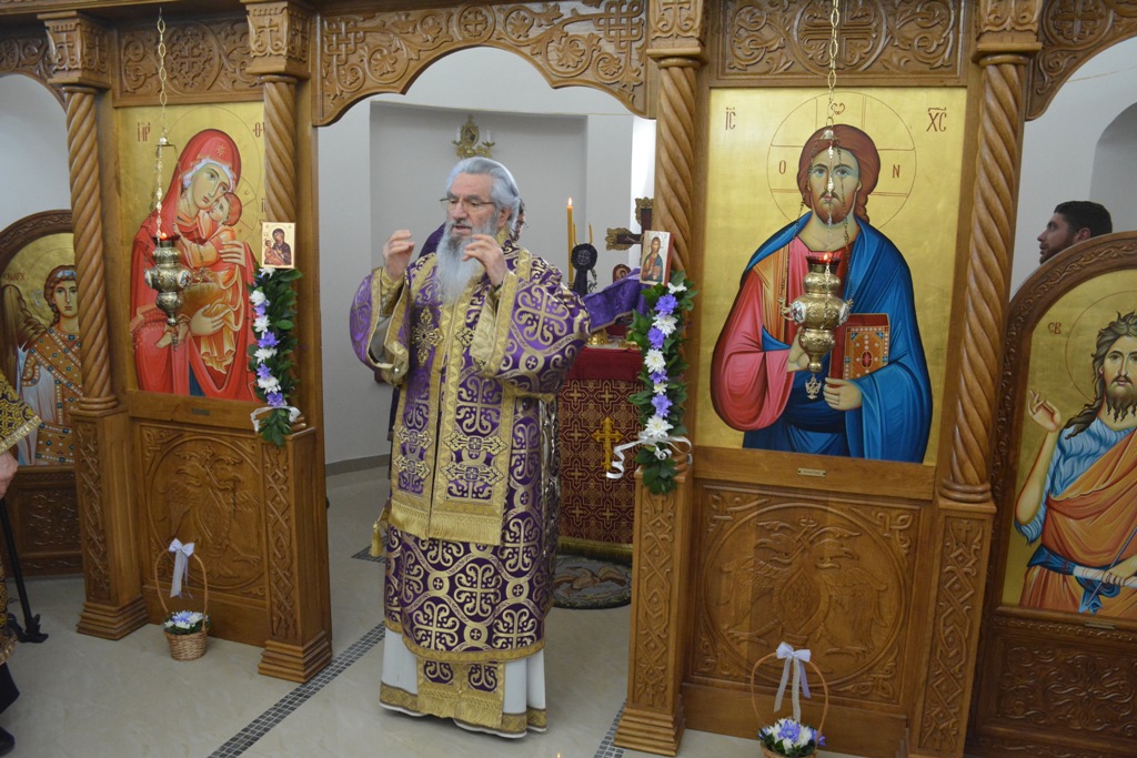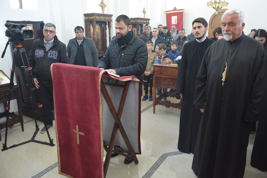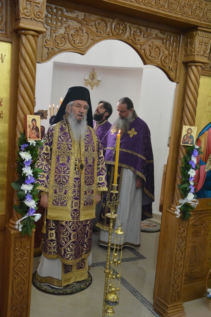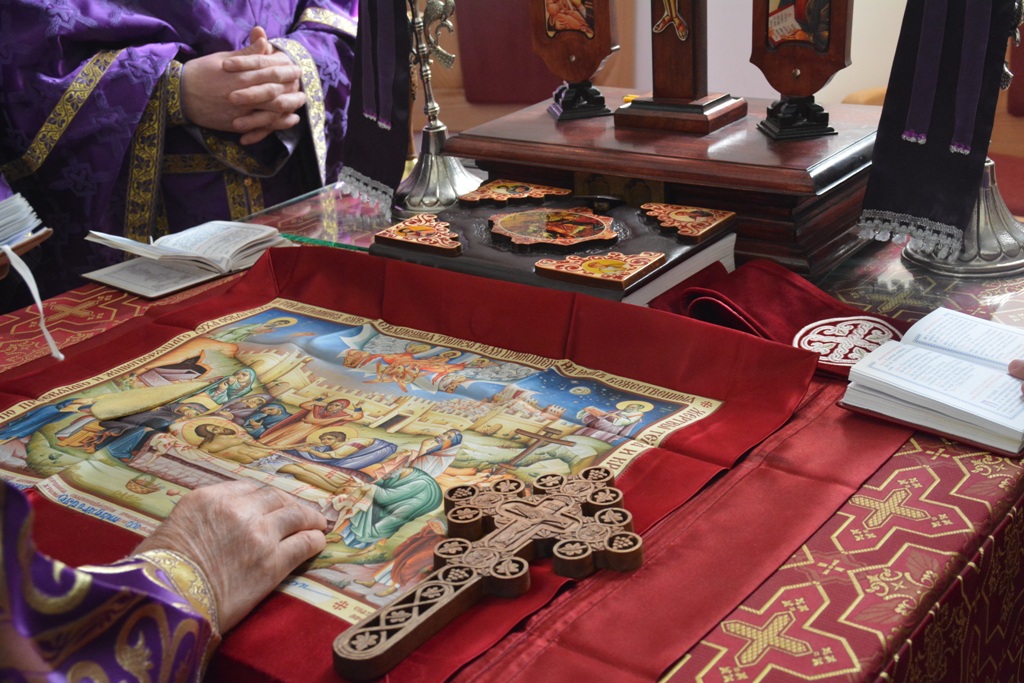 У богонадахнутој беседи Владика Јован је рекао: “Окупили смо се да служимо Свету Литургију, да се Богу молимо, да молимо Бога да нам буде милостив; а Он јесте милостив. Он ће своју милост пружати према нама онолико колико смо ми милостиви према њему, колико смо милостиви једни према другима. Да заблагодаримо Богу што нас је привео овој недељи, и на сам почетак ове недеље сабрао овде, јер ова недеља, шеста недеља Великог и васкршњег поста јесте увод у Велику недељу, Страсну недељу.Називамо је страсном јер је Господ ради нас и ради наших грехова страдао за нас. Прихватио је да Га људи и пљују и шамарају и прикују живог на Крст, све из љубави према нама. И у оме јесте највећа љубав Божија што нас је Господ управо преко Крста загрлио. И ми тога треба да се сећамо, да се сећамо те љубави Божије, да је Бог Отац није пожалио свог јединородног Сина да страда да се ми поново спасемо, да се ми поново вратили тамо где нам је намењено место било пре пада, а то је рај. Зато Господ нас позива увек, а посебно у овим посним данима да се молимо. Њему молитве наше нису потребне, али су нама потребне. Зашто? Зато ако се правилно молимо и разговарамо са Богом, да применимо то на свакодневни живот, ако хоћемо да нешто добијемо од неког човеке. Ми понизно молимо, и ако кажемо молим те дај ми то, поајми ми. И добићеш. Али ако са дрскошћу кажемо: ма мораш да ми даш, е неће нам дати ни овајчовек, неће нам дати ни Бог. Зато Бог тражи молитву, наше смирење, нашу љубав. Бог нам је дао себе тимре што нам је дао Цркву, што нам се даје у Цркви и даје нам се Господ у свим хришћанским врлинама у свим светим тајнама, а највише нам се даје Господ у Светој тајни Причешћа. Пазите, Бог нас не оставља, него нам даје себе, да ми још овде у овоме свету, кроз Причешће, осетимо ту заједницу са Богом, осетимо да примамо самога Господа у себе. И зато човек када се причешћује више није сам човек, он је са Богом. Има ли већег дара него да човек буде са Богом и да Бог буде с њиме. Ми требамо да се што чешће ппричешћујемо. Ми треба да верујемо да је у Причешћу сам Господ. Ми вером долазимо до Бога. Али исто тако и вером прилазимо светом Причешћу. Јер ми који се причешћујемо стално треба да се сећамо оних речи Христових ко једе моје тело и пије моју Крв у мени обитава и ја у њему. Заиста Бог обитава у нама. Зато Свети оци кажу онај човек који се причешћује пребива у Богу и Бог обитава у њему. Па куд ћеш већег дара, зар можемо имати већи дар него да Бога задобијемо. Ми људи осећамо дарове овоземаљске које Бог и људи дају. Осећамо и дар што нам је Бог дао живот. Осећамо дар ако живимо хришћанским животом. Осећамо дар кад нам Бог даје пород, кад нам Бог даје другог човека поред себе. Али све је то неупоредиво са даром када Бог себе нама даје. Е зато кажем када се причешћујемо треба да верујемо. Ми примамо самога Бога, не некакве симболе. Зато је потребно, колико год је то могуће нама грешнима, палима, да се припремамо за свето причешће. Има разних начина на које се припремамо: то је пост, стрпљење, милосрђе, молитва, али највећа и најзначајнија припрема наша треба да се састоји у нашем покајању и у нашем исповедању грехова. Искрено покајање. Покајање је велико чудо, велика сила, велика моћ, која преображава човека из грешног у светост, из грешног стања у праведно стање.