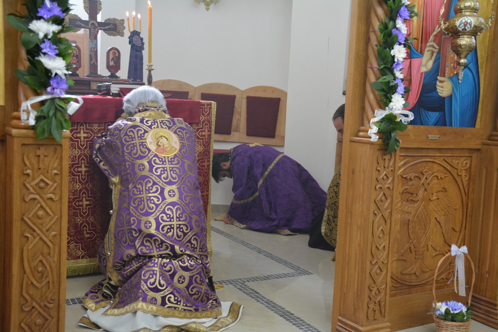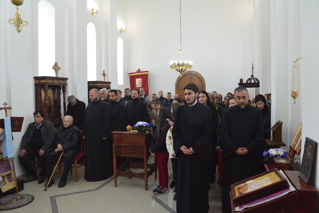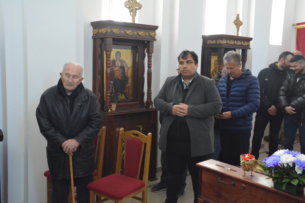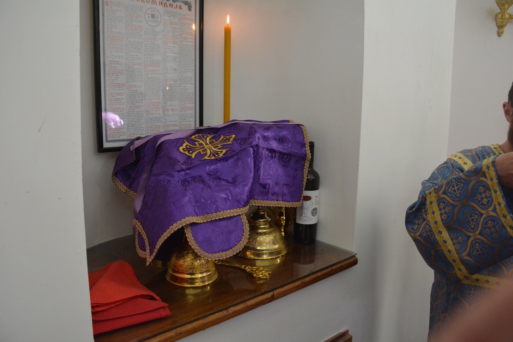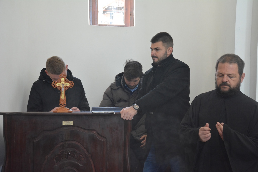 Свештенство левачког намесништва у јутарњим часовима исповедио је игуман манастира Пиносаве, архимандрит Петар (Драгојловић), који је саслуживао у Литургијском сабрању Епископу Јовану, заједно са архијерејским намесником левачким протојерејем – ставрофором Милићем Марковићом, јерејима Слободаном Савковићем, Бојаном Стојадиновићем и протођаконом Иваном Гашићем.