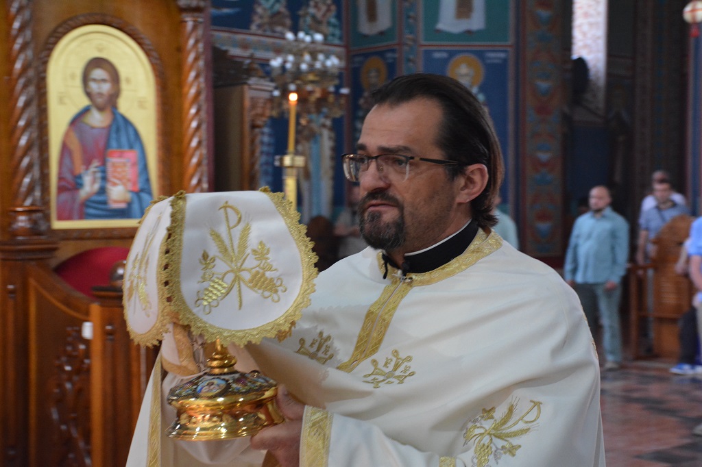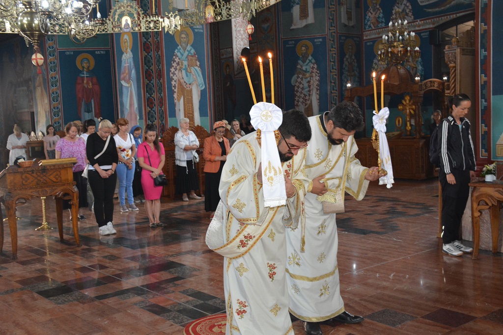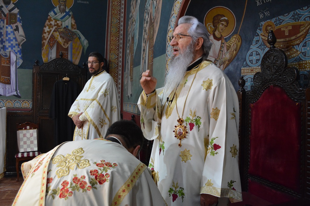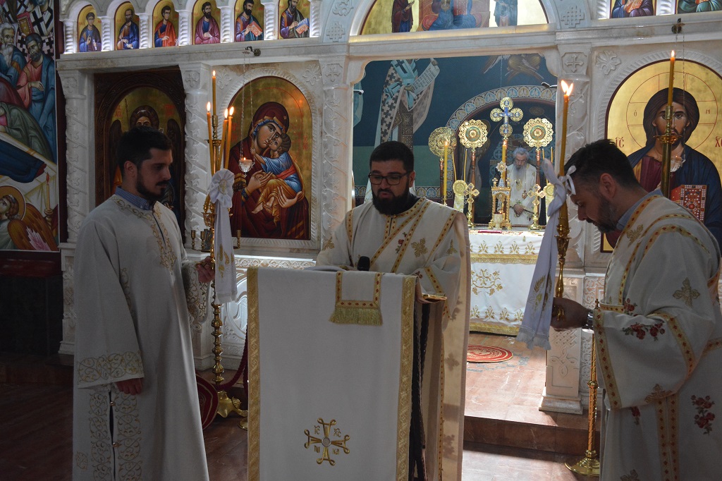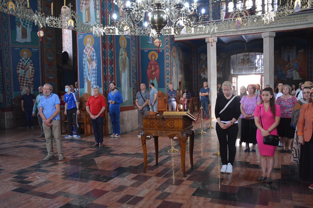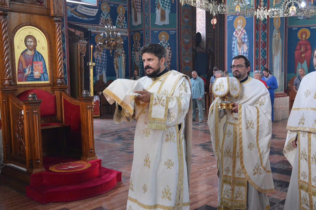 Епископу су саслуживали свештеници и ђакони саборног храма.