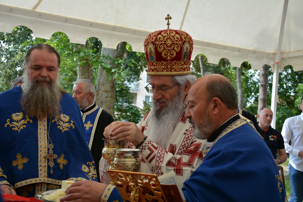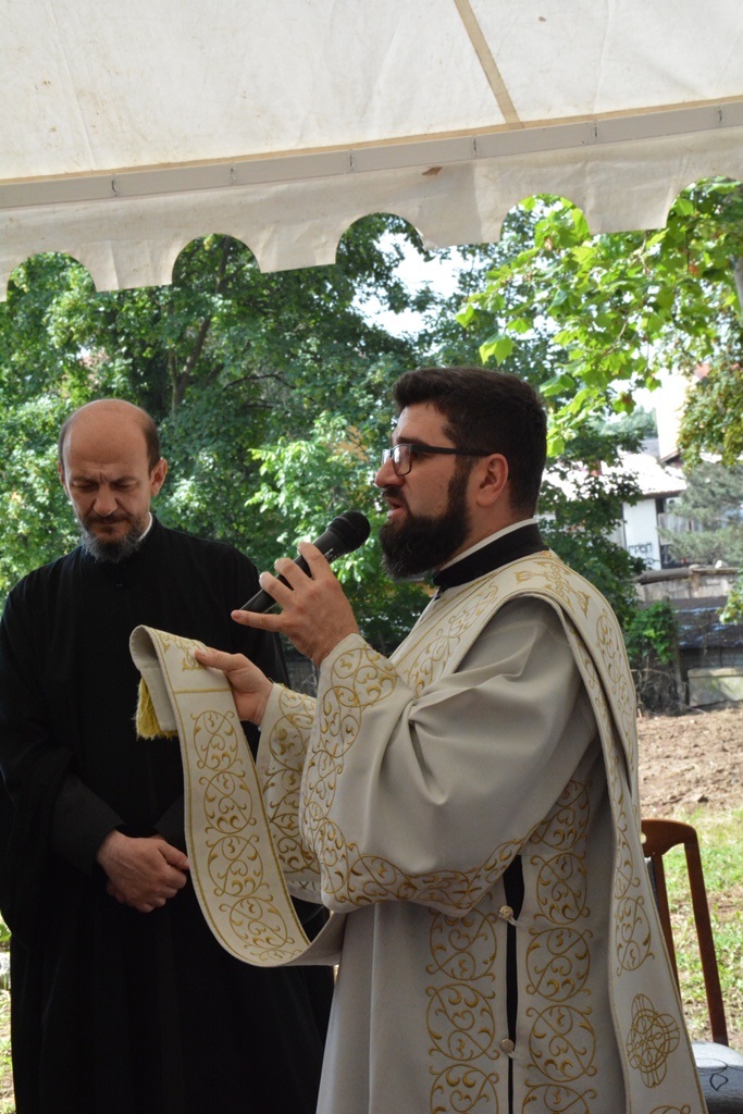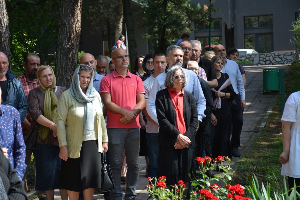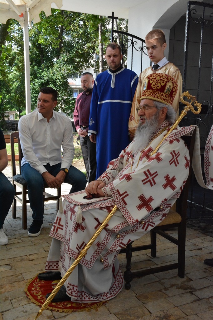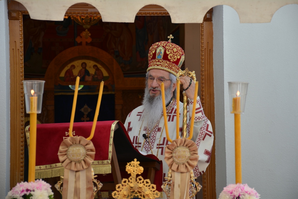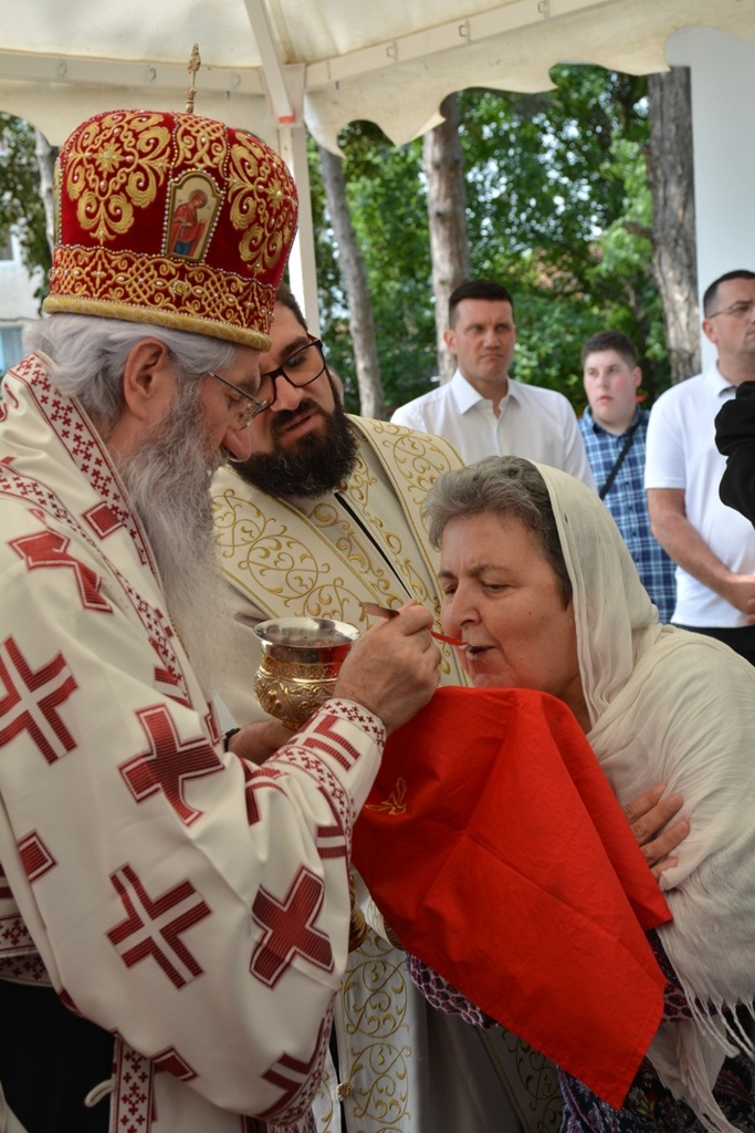 „Помаже вам Бог, браћо и сестре. Нека нам је благословено наше сабрање у овом Светом Храму, где смо дошли, да се Богу помолимо, да Бога замолимо за све оно што нам је потребно, а човеку је на првом месту потребно његово спасење. Да се помолимо Богу за здравље и наше и болесника свих, да се помолимо Богу за добро, како за своје добро, тако браћо и сестре и за сваког другог човека, јер у томе и јесте хришћанство. Да ми саосећамо једни друге, као што саосаћемо себе саме. И зато смо се и сабрали у овом Светом Храму да служимо Литургију, а бити на Литургији значи учествовати у трпези Господњој, а знамо чему нам служи трпеза, да се окрепимо и нахранимо да не би тело ослабило. На ту трпезу само Духовну трпезу на коју је Господ самога себе поставио да би се ми хранили Њиме. Ми се хранимо Богом кроз веру, љубав, наду, молитву, а на првом месту кроз Свету Тајну Причешћа, и зато на свакој Литургији, Господ себе даје, али никога не приморава да Га узме у себе, то је слобода човекова.