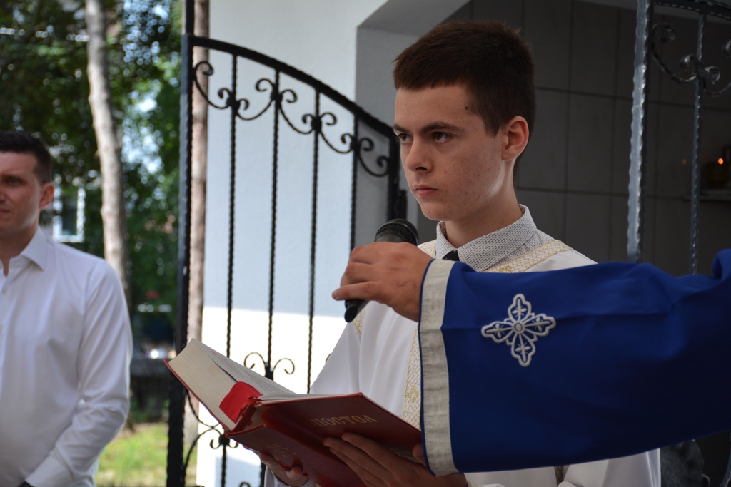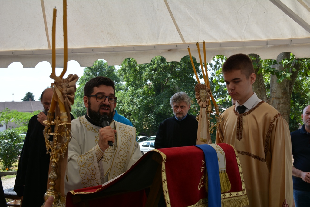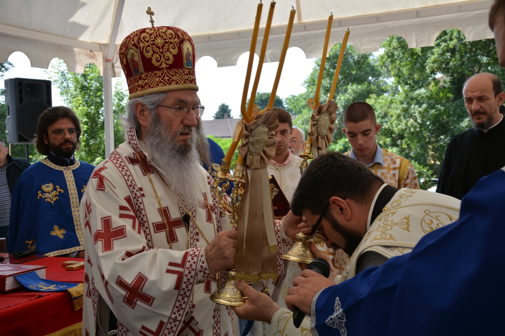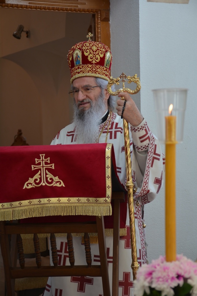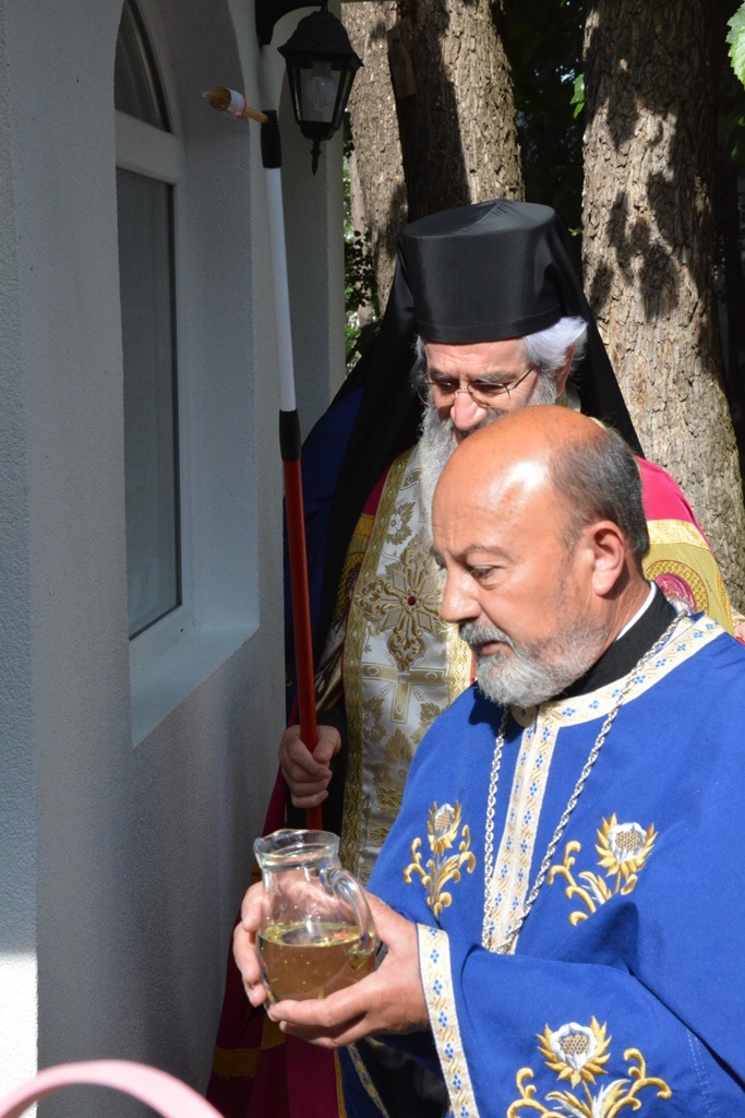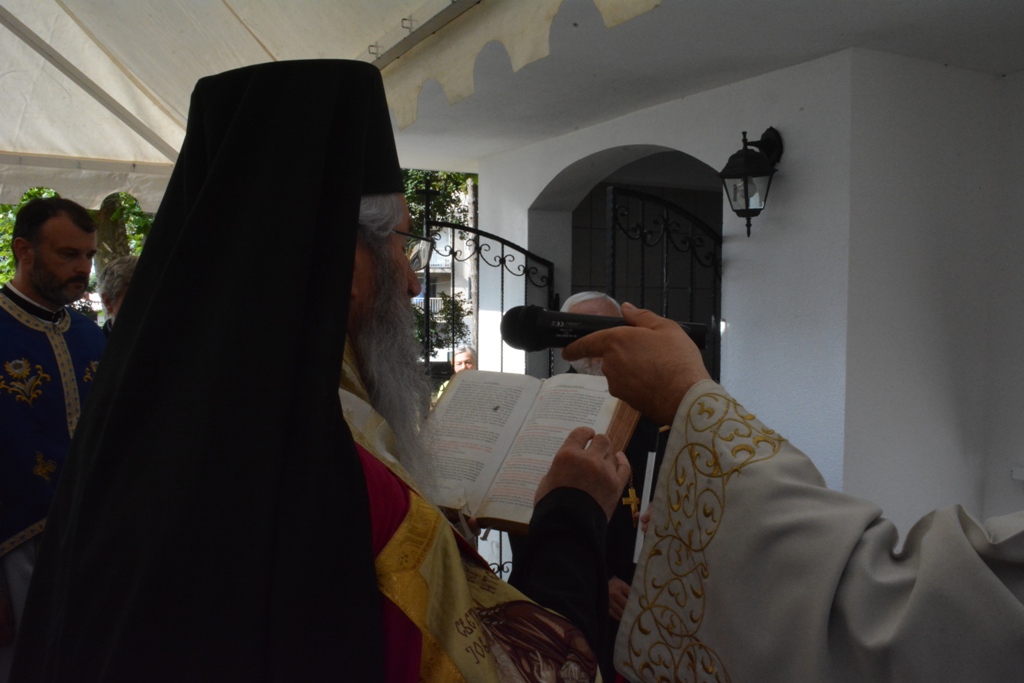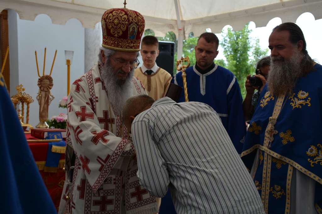 „Помаже вам Бог, браћо и сестре. Нека нам је благословено наше сабрање у овом Светом Храму, где смо дошли, да се Богу помолимо, да Бога замолимо за све оно што нам је потребно, а човеку је на првом месту потребно његово спасење. Да се помолимо Богу за здравље и наше и болесника свих, да се помолимо Богу за добро, како за своје добро, тако браћо и сестре и за сваког другог човека, јер у томе и јесте хришћанство. Да ми саосећамо једни друге, као што саосаћемо себе саме. И зато смо се и сабрали у овом Светом Храму да служимо Литургију, а бити на Литургији значи учествовати у трпези Господњој, а знамо чему нам служи трпеза, да се окрепимо и нахранимо да не би тело ослабило. На ту трпезу само Духовну трпезу на коју је Господ самога себе поставио да би се ми хранили Њиме. Ми се хранимо Богом кроз веру, љубав, наду, молитву, а на првом месту кроз Свету Тајну Причешћа, и зато на свакој Литургији, Господ себе даје, али никога не приморава да Га узме у себе, то је слобода човекова.
