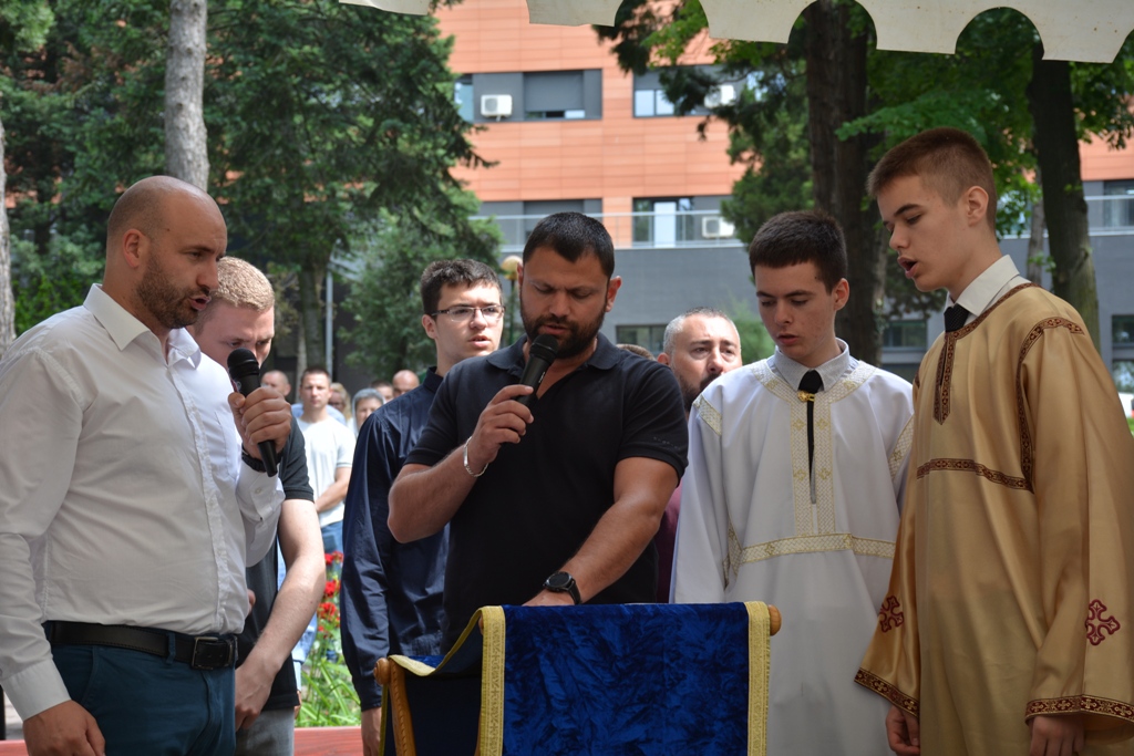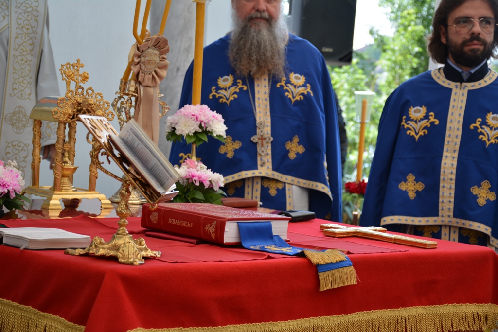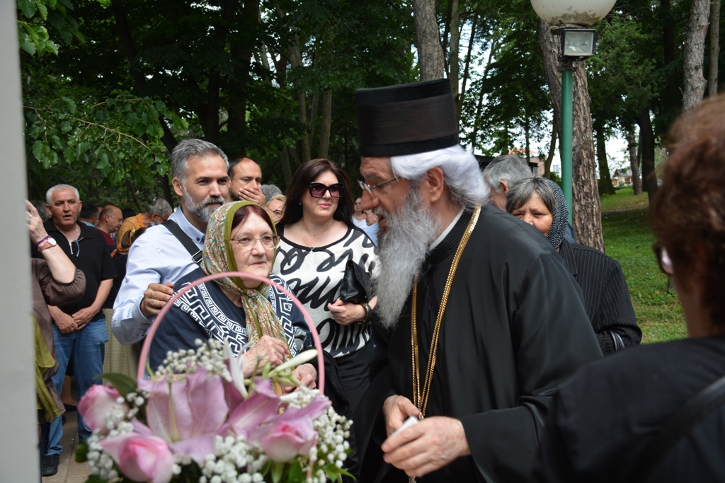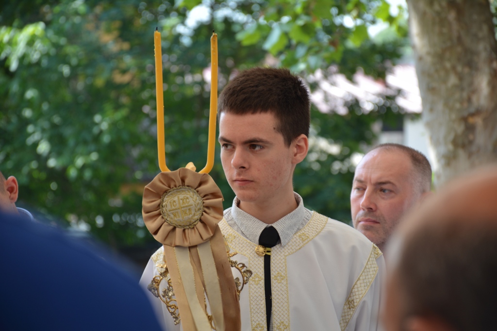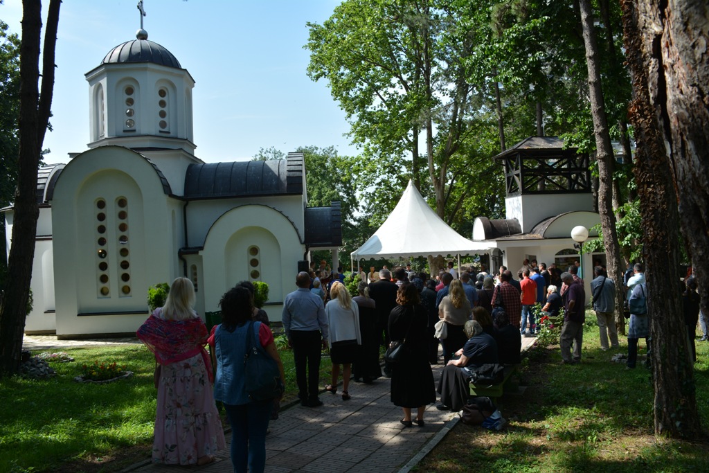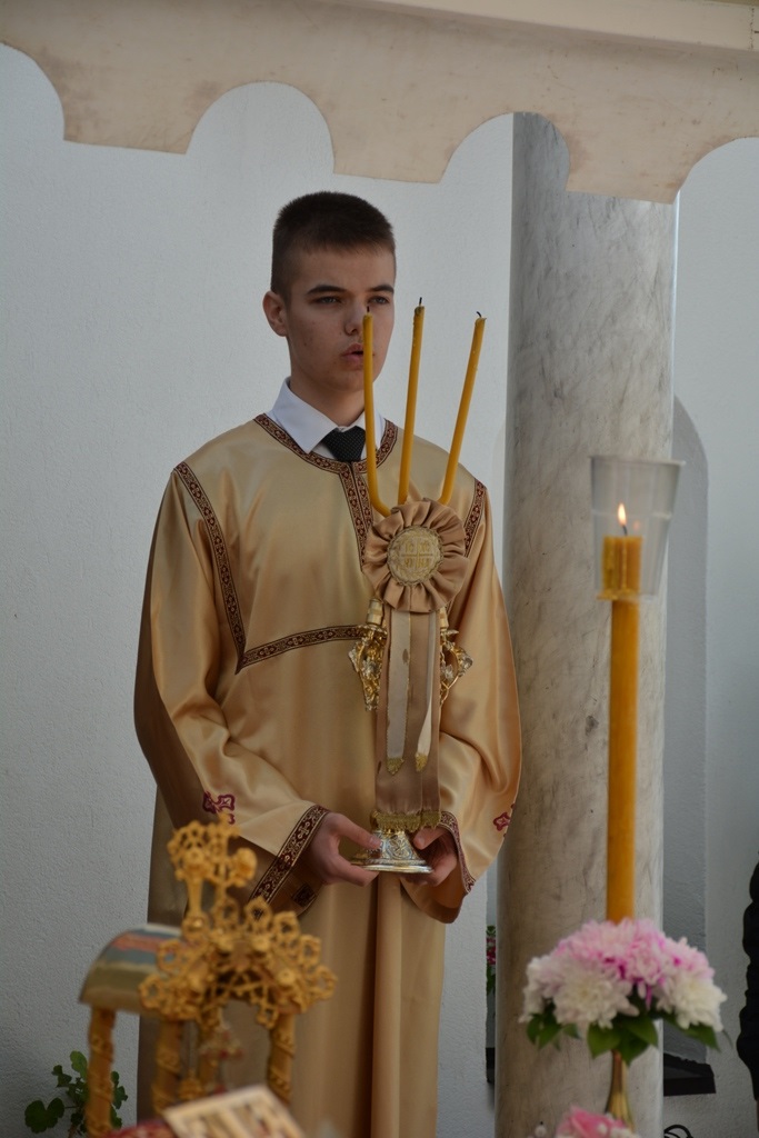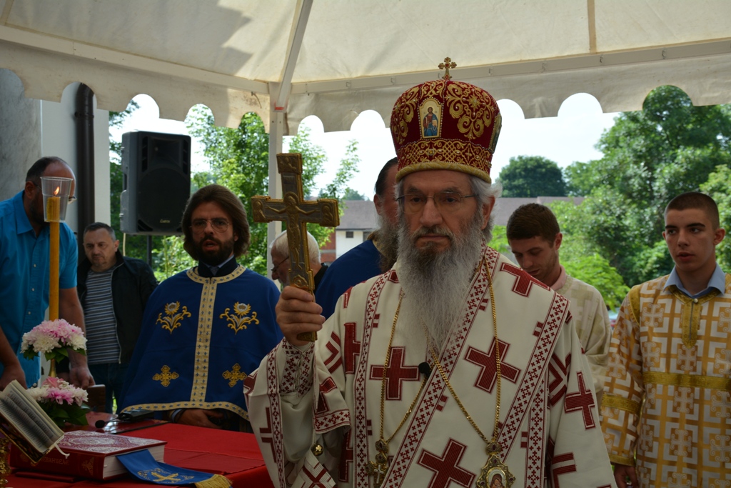 Ми смо се данас сабрали овде да славимо Бога и да се сјединимо са Богом, али и да прославимо једног Божијег угодника који је из нашег рода. Данас наша Црква прославља Светог Јована Владимира, краља српскога. Он је био владар, али је био мудар владар и није се поносио тиме што је седео на краљевској столици, него тиме што је служио народу. Био је молитвеник, градитељ манастира и цркава, и ми њега славећи као човека славимо га као богобојажљивог са великом вером и љубављу према Богу и према ближњима, али и великог мученика и великог страдалника. Зашто кажем великог мученика и великог страдалника? Свети Јован је имао много проблема, као владар имао је унутрашње и спољне непријатеље. Унутрашњи непријатељи то су били јеретици богумили, а спољашњи то су били његови савладари. Био је велики мученик поготово зато што је страдао од родбинске руке. Али његова љубав је обливала и његовог убицу. Пазите браћо и сестре! Шта то значи имати веру, имати љубав, да можеш њоме да обливаш и секиру која те сече и непријатеља који те убија, то је хришћанство, а не да измишљамо непријатеље, овај ме мрзи, овај ме не воли. Зашто да се тиме оптерећујемо да ли нас неко воли или не? Наше је да волимо свакога, јер Бог воли сваког човека, воли подједнако и праведника и грешника. Не треба да се оптерећујемо другима, треба да гледамо себе, да ли ја живим Јеванђељем, да ли ја живим заповестима Христовим, по ономе чиме треба да живим и то је човеку слободно. Али човек који нема довољно љубави он говори „овај ме воли овај ме не воли“ и човек он да воли само онога који њега воли, а оног другог ни име неће да му спомене. Свети Јован Владимир живео је Христовом љубављу и зато је волео оне који га воле и оне који га не воле. Зашто? Па зато што је Бог љубав, браћо и сестре. Ми често говоримо о Христовој љубави, она је највећа, већа је и од родитељске љубави. Онда можемо да поставимо и питање: Шта је то љубав Христова? Знамо да Бог воли сваког човека, љубав Христова на коју смо сви позвани не да само о њој говоримо, не да будемо хришћани својим речима него својим животом и својим делима. Да реч Христова буде закон по којем живимо. И заиста Он када нас је позвао на љубав, позвао нас је да љубимо један другога и да се волимо међусобно, и да волимо свакога човека. Истина, међу нама има и нетрпељивост и мржња, као људи смо слаби и некад не можемо да одолимо тим изазовима својим, али зато ако је Јеванђеље систем вредности по коме живимо, ако је то наш поглед на свет, онда ми знамо да волимо, онда знамо да љубимо другога, односно да се жртвујемо за другога. Јер љубав је и жртва и што се већа жртва даје то је љубав видљивија, она је осећајнија, браћо и сестре. Човек који има љубави Божије у себи он ће имати и љубави према другоме. Ми обично кажемо ја волим Бога, али не могу волети овога поред себе. Али права љубав Божија ће нас увек подстицати да кажемо опрости брате, опрости сестро. Треба да отворимо своје срце, да га омекшамо да може да уђе онај кога ми сматрамо чак и непријатељем. Љубав она највише шири видике људске, љубав према Богу и према човеку шири срце човеково и тако срце човеково постаје толико велико да може сместити цео свет, наравно ако прво у њега смести Бога. А Бог, где је Бог тамо је све велико. Бог је већи од неба и земље, па он и шири наше срце тако да можемо свакога да сместимо у своје срце. Свакога ма какав ч