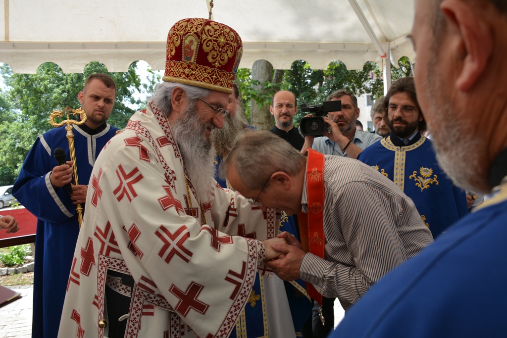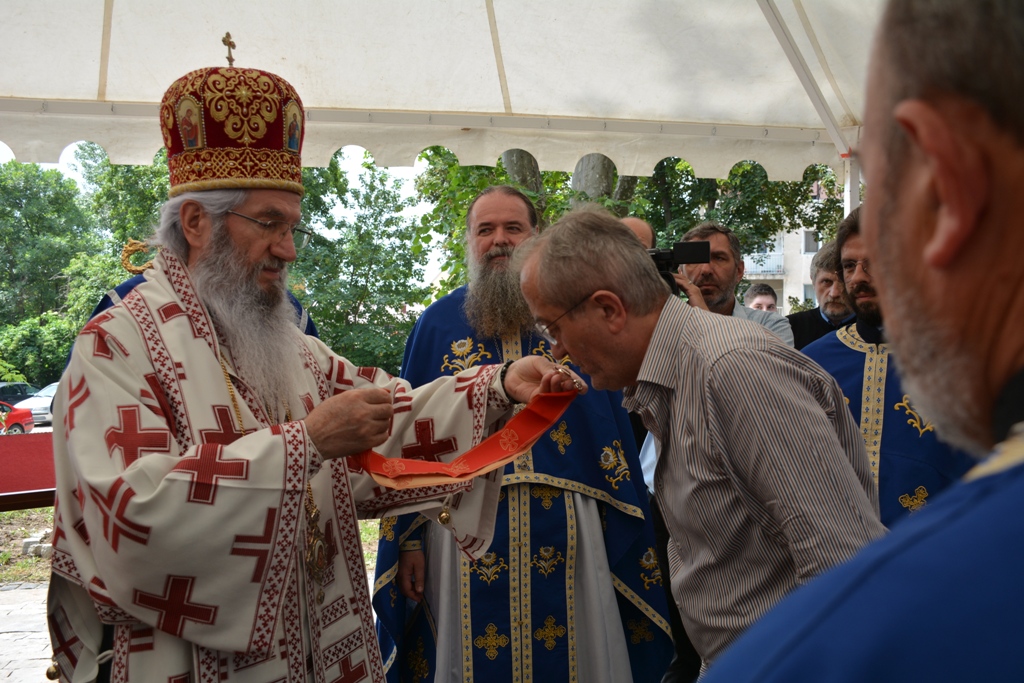 Владика је у наставку Литургије одликовао: Горана Милетића и Гошу ФОМ архијерејским граматама, а Милутина Кокотовића орденом крагујевачких мученика због доприноса храму Светог деспота Стефана.