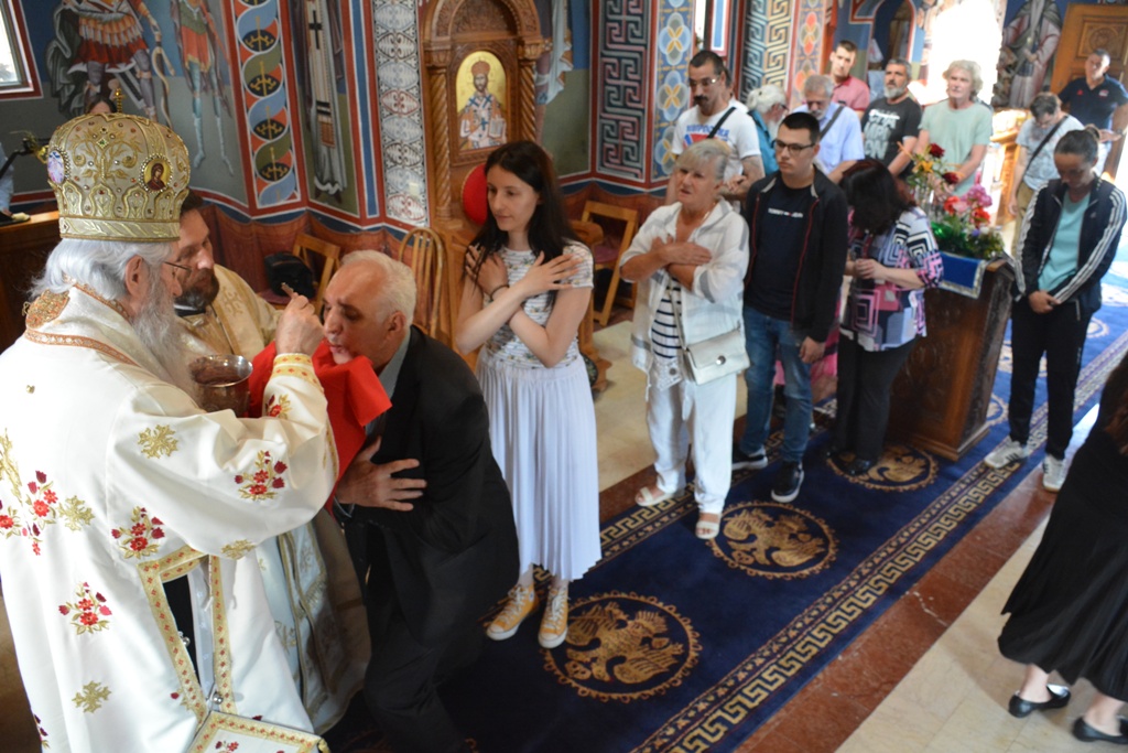 На крају Свете Литургије Светим Тајнама се причестио верни народ, а по завршетку Преосвећени Владика је верном народу поделио благослов и иконице.