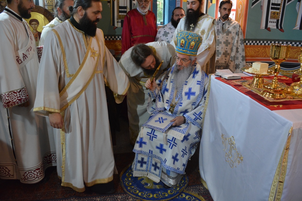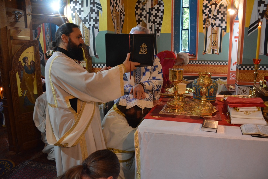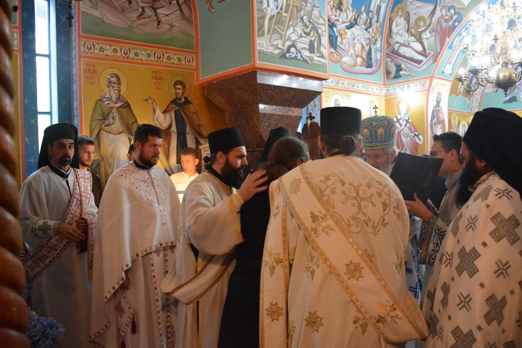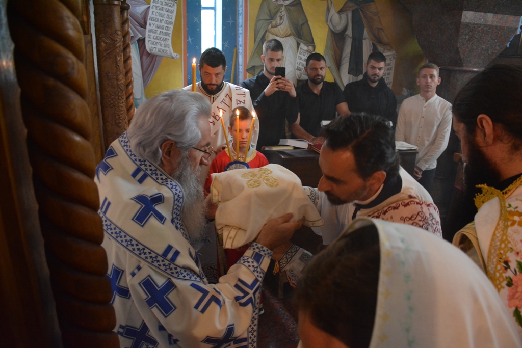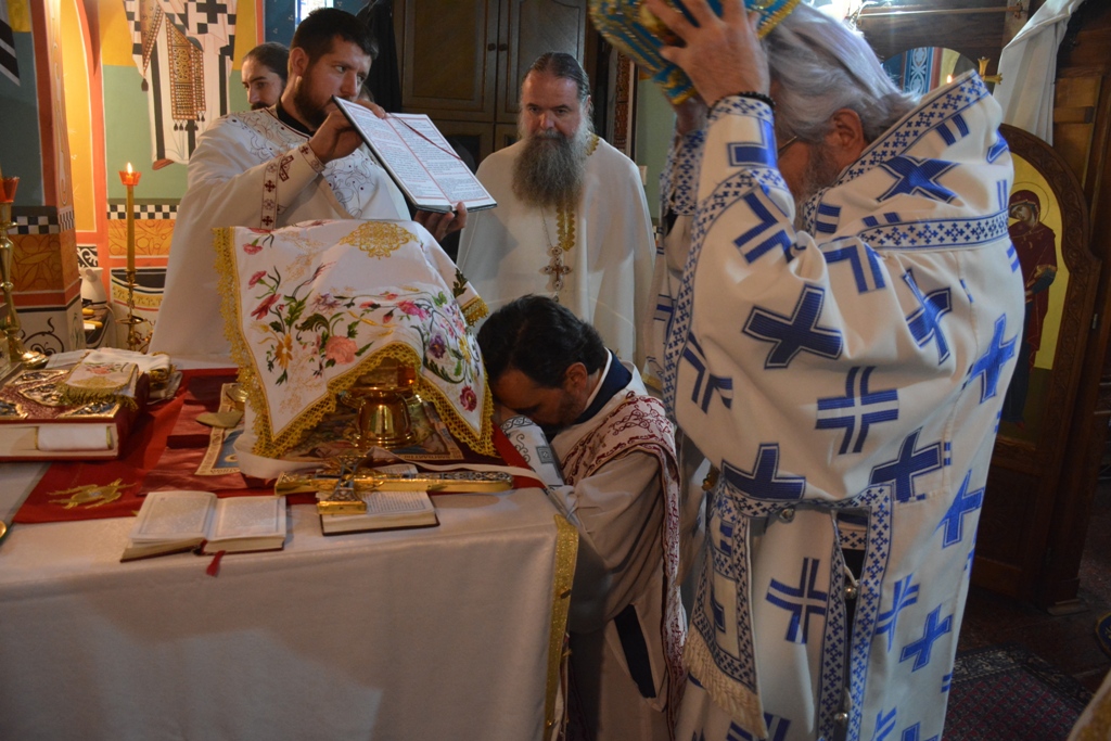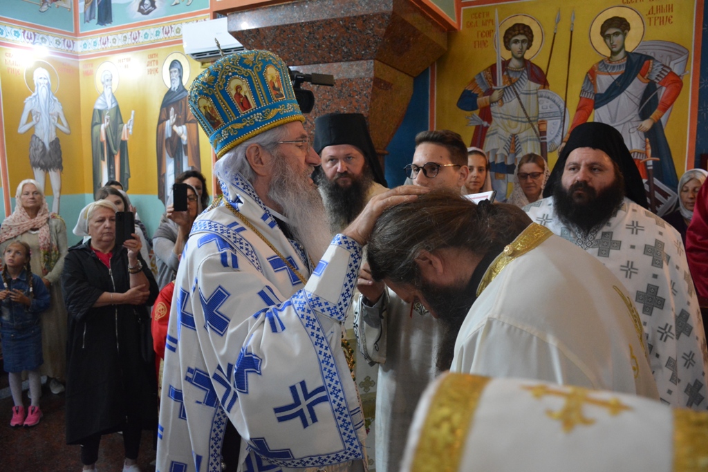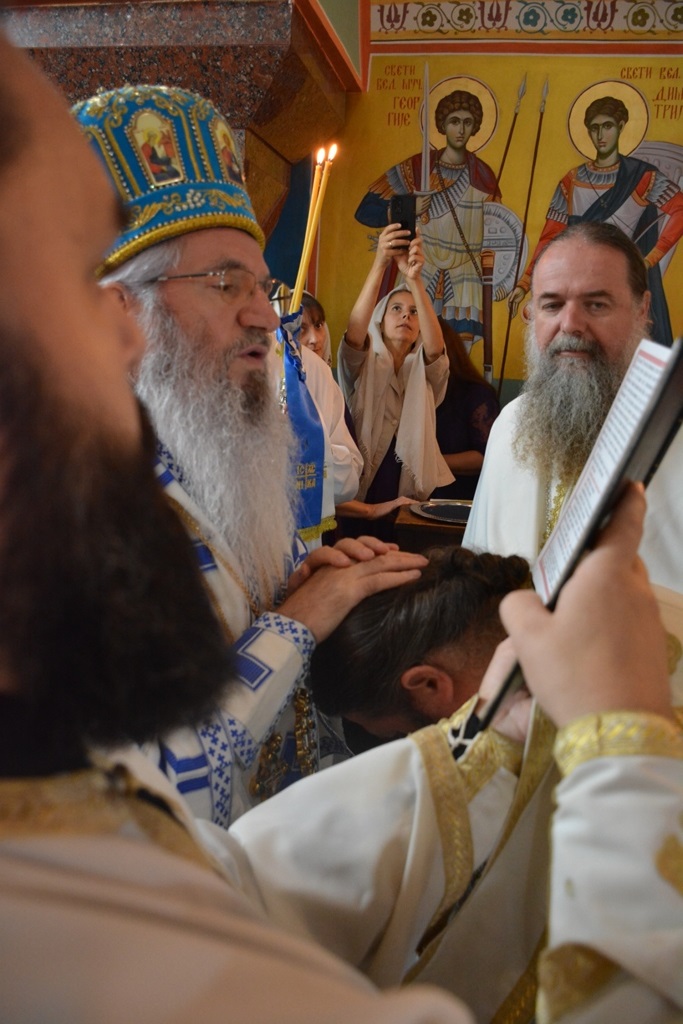 После великог входа дотадашњи архиђакон Марко (Марковић) приведен је кроз двери у олтар и молитвама које су следиле рукоположен је у чин јеромонаха, а потом је у чин јерођакона рукоположен монах Нектарије (Ивановић). Преосвећени Владика је у својим беседама новорукоположене потсетио на узвишеност позива свештенослужења и на неопходност наоружавања смирењем, трпљењем, послушношћу и љубављу, и да свој свештенишки живот живе у страху Божијем како се не би огрешили о љубав Божију.