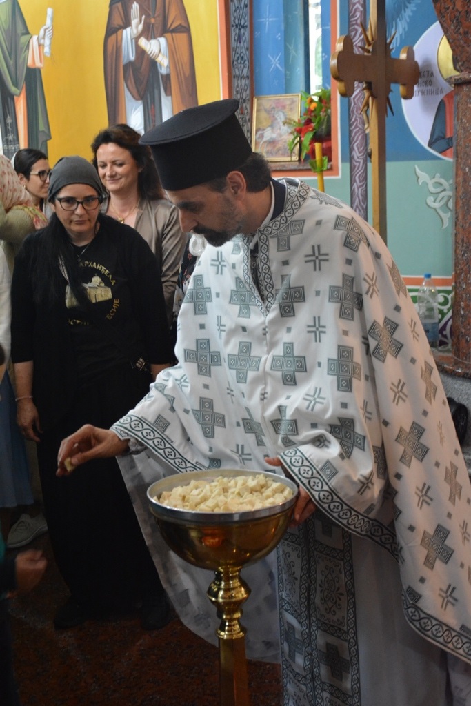 Након литургијског сабрања Епископ Јован заједничарио је са свештенством и верницима у трпези љубави коју је несебичним трудом и љубављу припремило братство ове свете обитељи.