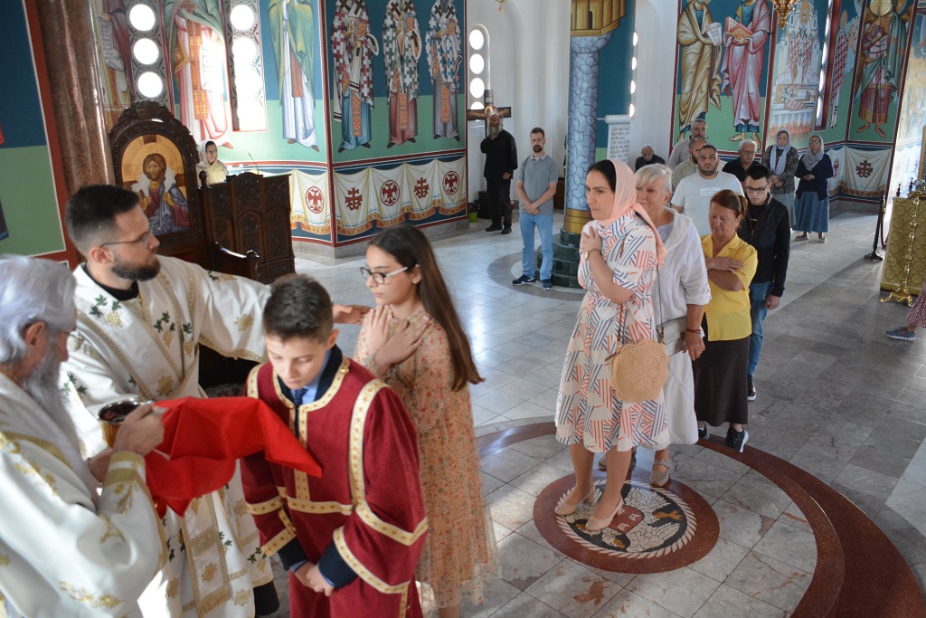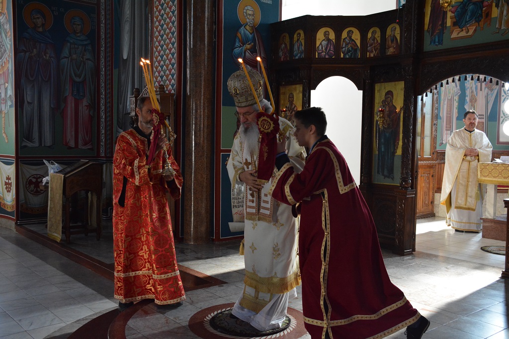 У наставку свете литургије, Преосвећени је причестио верни народ, који је заблагодарио Богу на свим даровима, које су примили на светом сабрању.