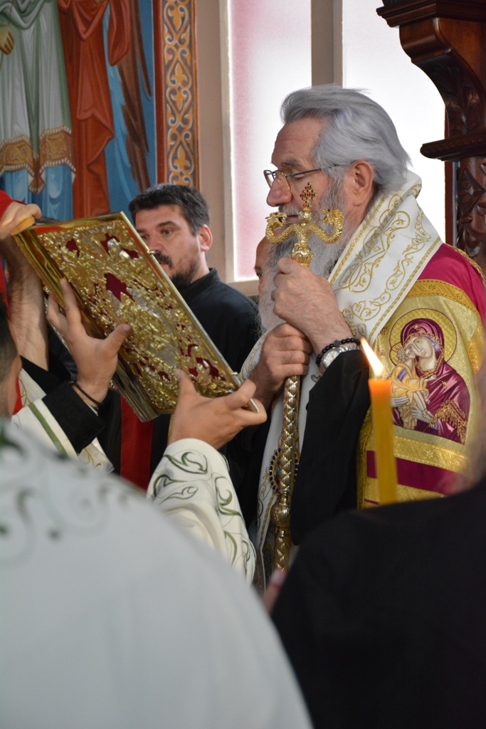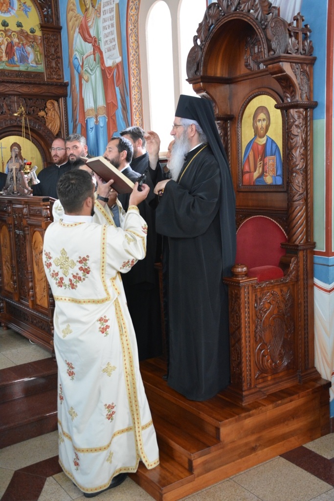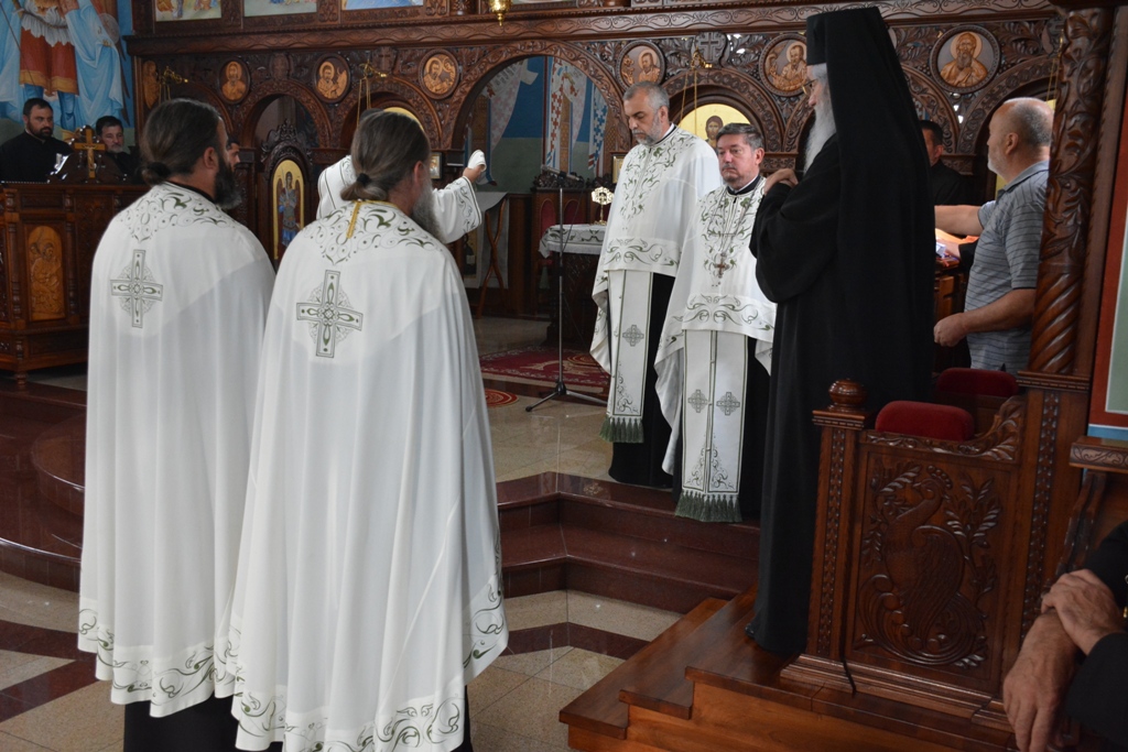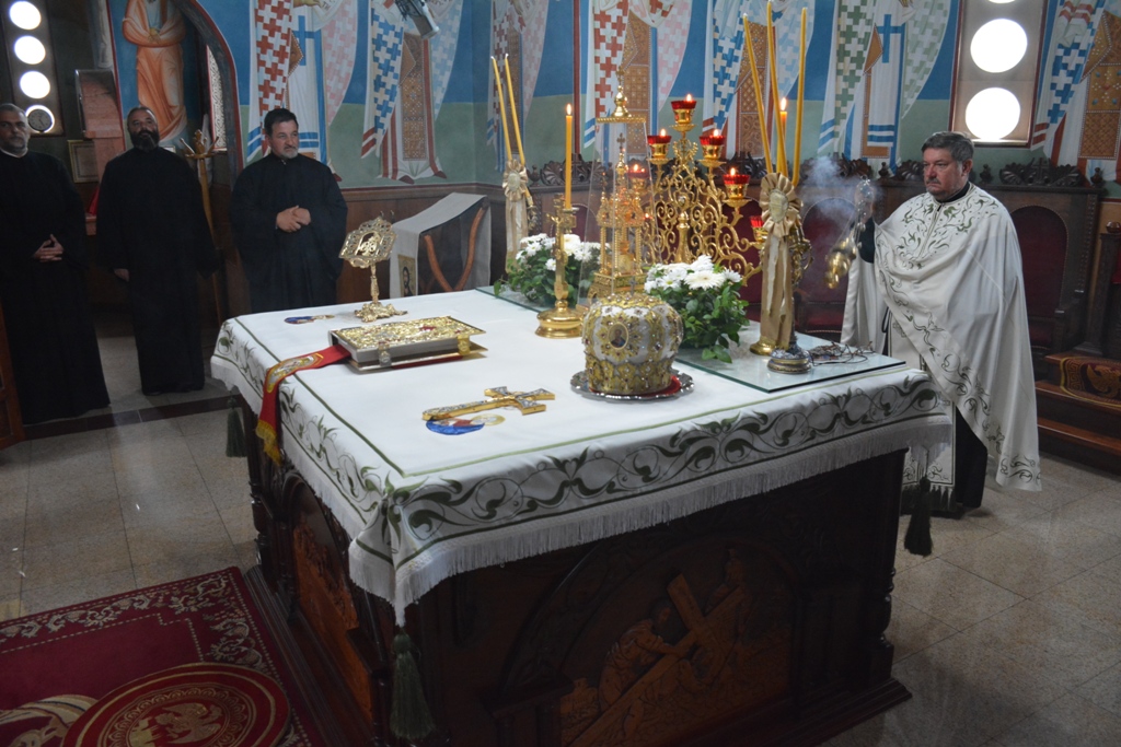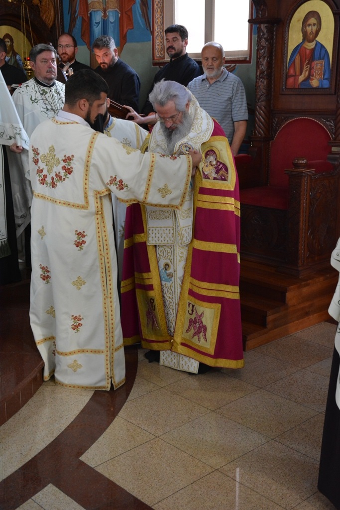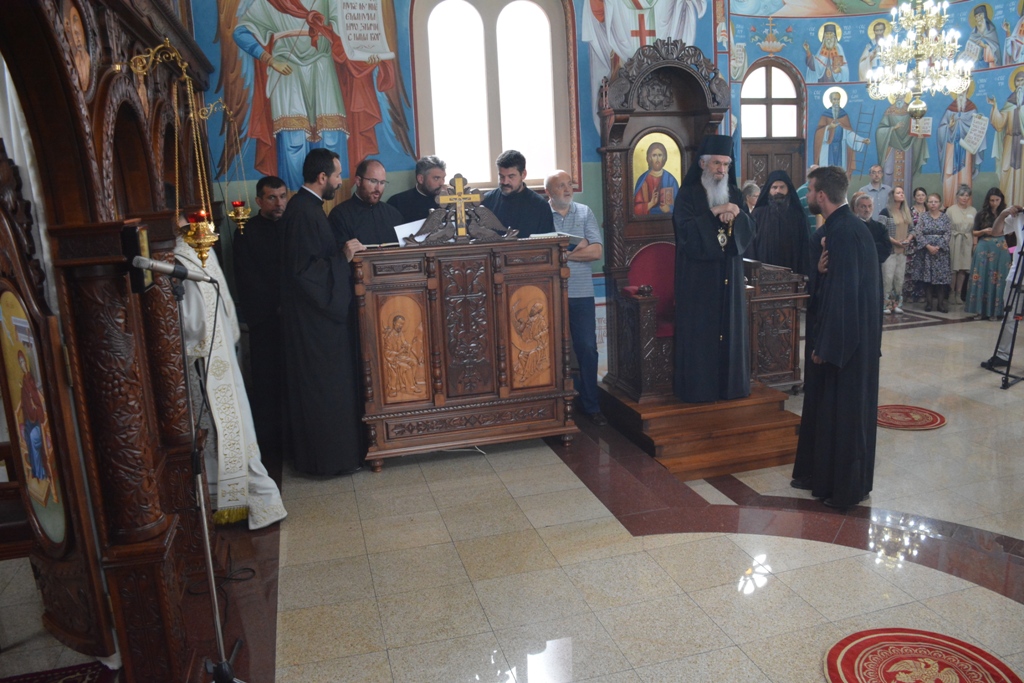 Његовом Преосвештенству су саслуживали ректор Богословије Светог Јована Златоуста протојереј-ставрофор проф. др Зоран Крстић, архимандрит Петар (Драгојловић) игуман манастира Пиносава, протојереј Љубиша Ђураш, протонамесник Иван Теодосић, протођакон Иван Гашић и ђакон Александар Бабић.