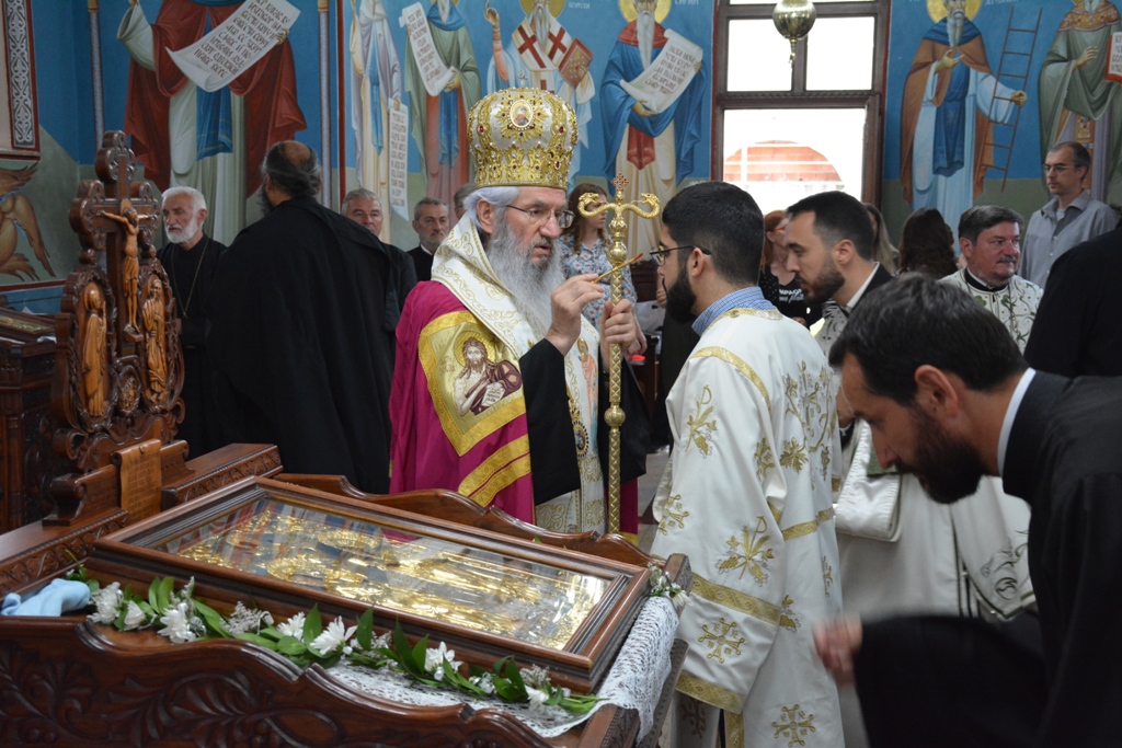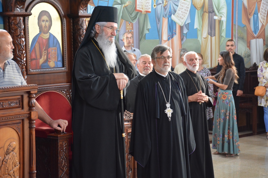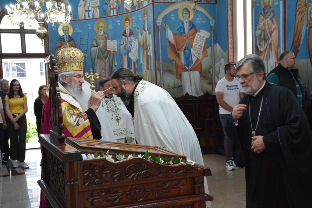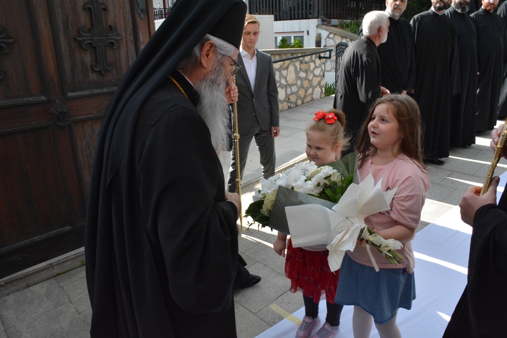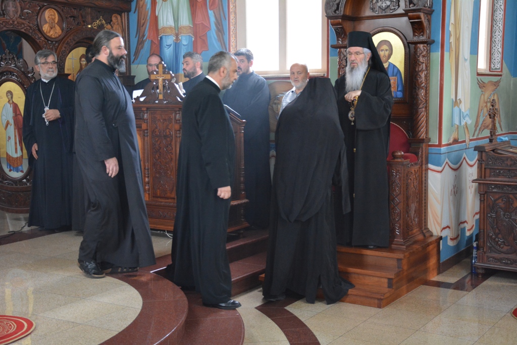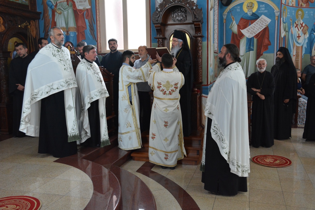 Његовом Преосвештенству су саслуживали ректор Богословије Светог Јована Златоуста протојереј-ставрофор проф. др Зоран Крстић, архимандрит Петар (Драгојловић) игуман манастира Пиносава, протојереј Љубиша Ђураш, протонамесник Иван Теодосић, протођакон Иван Гашић и ђакон Александар Бабић.
