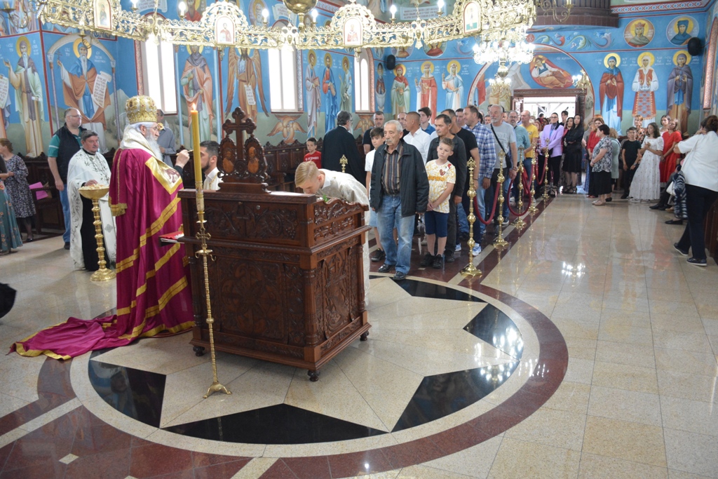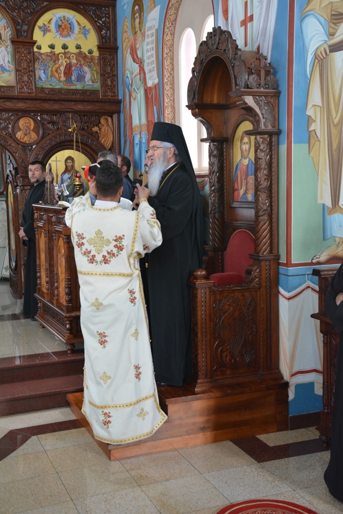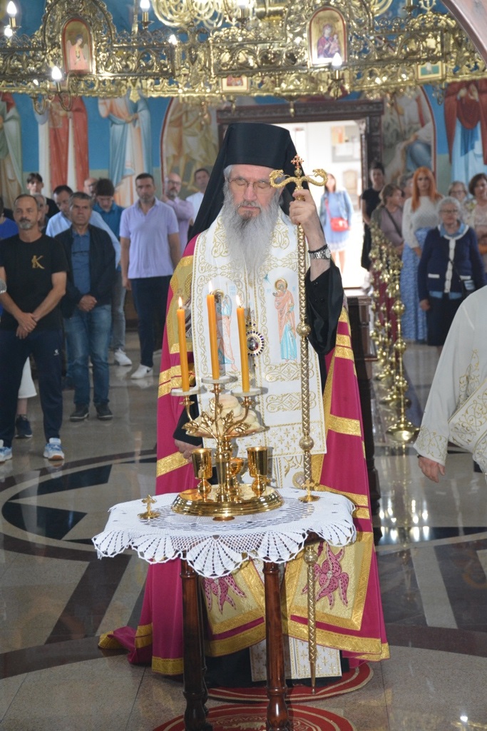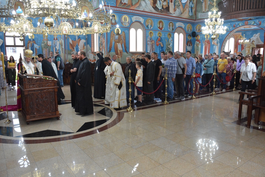Након одлуженог празничног бденија, Епископ је верне поздравио и поучио својом беседом и свима честитао храмовну славу Свете Апостоле Петра и Павла: