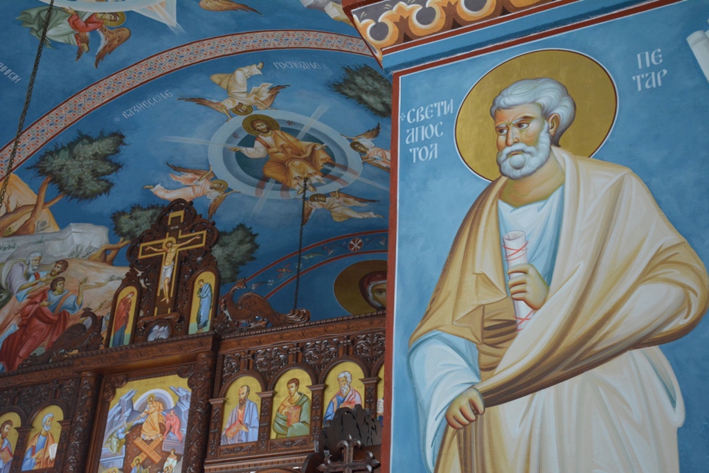 “Срећна храмовна слава, братству овога храма и свима вама који сте данас дошли обде на ово богослужење и који ћете сутра доћи на Свету Литургију да се причестите и да се сједините са Богом. Ваш долазак на богослужења, а посебно на Литургију уствари говори о вашој вери, да верујете и да исповедате веру баш онако како су исповедали и проповедали Свети апостоли Петар и Павле, којима је овај предивни храм и посвећен. Треба да се молимо Богу, браћо и сестре, да имамо веру какву је имао апостол Петар. Ону веру за коју је Господ рекао да ће на његовој вери саградити Цркву своју, и да је врата пакла не могу надвладати. Истина, апостол Петар, иако је имао јаку веру, у време слабости своје, одрекао се Христа. Када се одрекао, он је просто чуо онај глас Христов који му је рекао: “Петре, док петао не запева три пута ћеш ме се де одрећи” и плакаше Петар. То је нама пример, браћо и сестре, ми смо људи који смо слаби, који клецамо, који падамо, који посрћемо, али не смемо да изгубимо веру, поготову тада, јер вера ће нам говорити и када нас снађу и невоље и беде, вера ће на казати “Устани, охрабри се, ту је Спаситељ, ту је Избавитељ”, само треба да верујемо у Њега и да том вером живимо. Зато морамо да се боримо и да имамо ту ватрену, камену веру како каже Свето Јеванђеље, веру апостола Петра, а исто тако да се молимо, да имамо смирење какво је имао апостол Павле. Павле је био један од најученијих људи онога света.Тек када је Христа спознао, видео је да све то што зна, све је то сматрао за трице, за мекиње, што бисмо ми рекли. Он је толико заволео Христа, толико се предао Христу да је заиста он могао да каже: “Не живим ја више, него живи Христос у мени”. И то да нам буде наук и то да нам буде поука, да Христос живи у нама. Када Христос живи у нама, браћо и сестре, онда смо ми заиста живи људи, јер Христа носимо у себи, Христа исповедамо, Христу се молимо. Па нека буде срећна слава свима вама, овоме храму, као што рекох на почетку, братству, да Господ да и свети апостоли да у нама ојача вера, браћо и сестре, и да веру сведочимо дели.