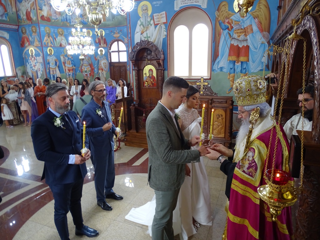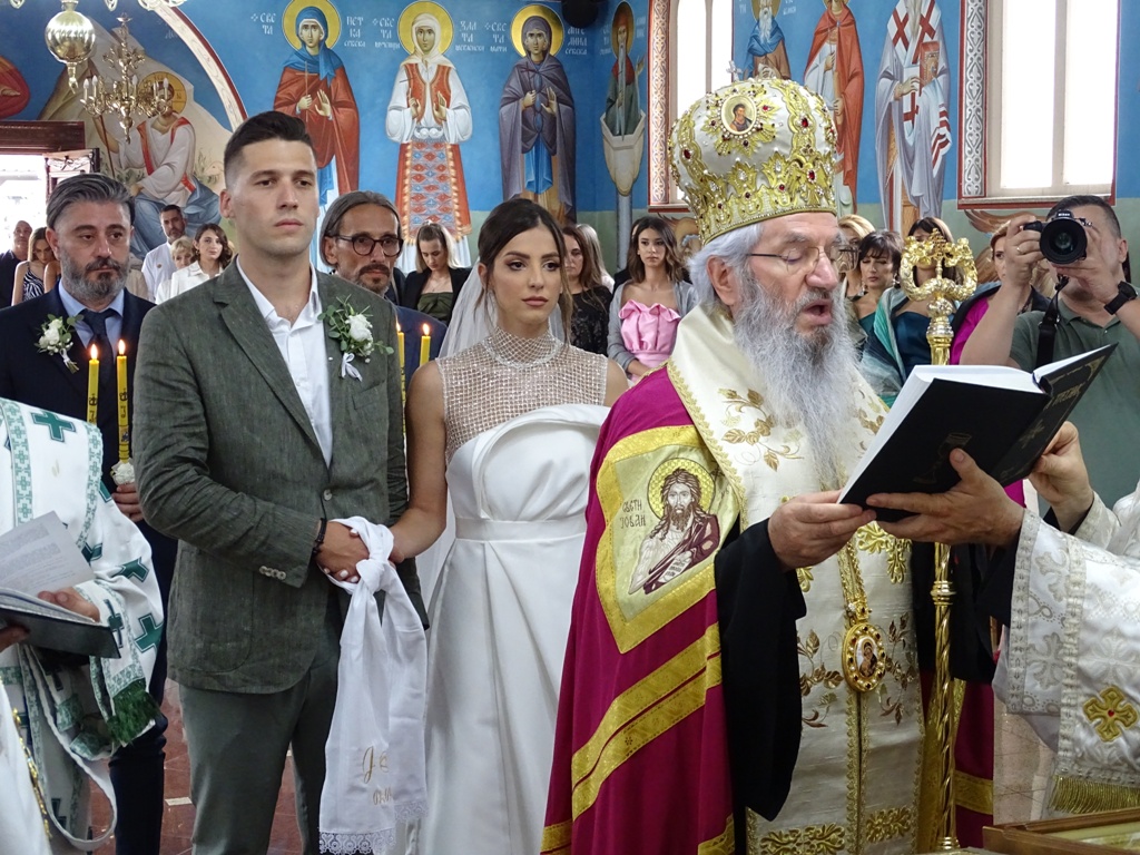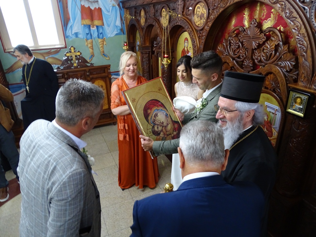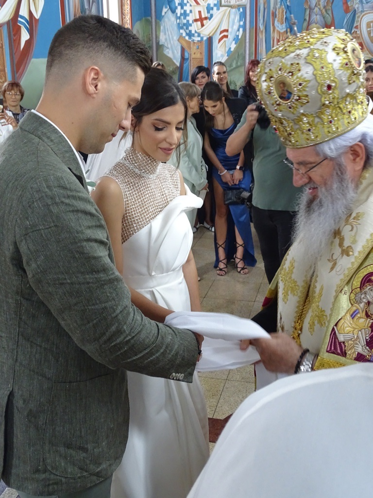 Након чина венчања Епископ је младенцима, сведоцима и родбини честитао венчање и овом приликом младенце поучио значају Свете Тајне брака. Том приликом их је замолио да пазе једно на друго, да буду добри и исправни људи и хришћани и да своју љубав чувају једно за друго. Рекао им је још да су они сада као деца која полазе у први разред школе, али да је ово за њих први разред заједничког живота. Од данас њих двоје су једно пред Богом и пред људима.