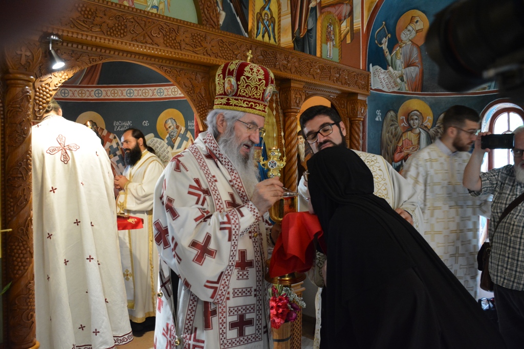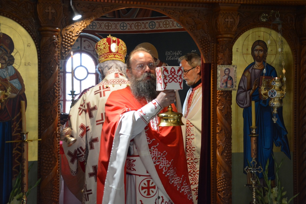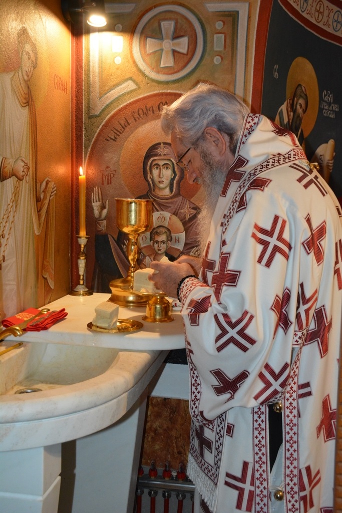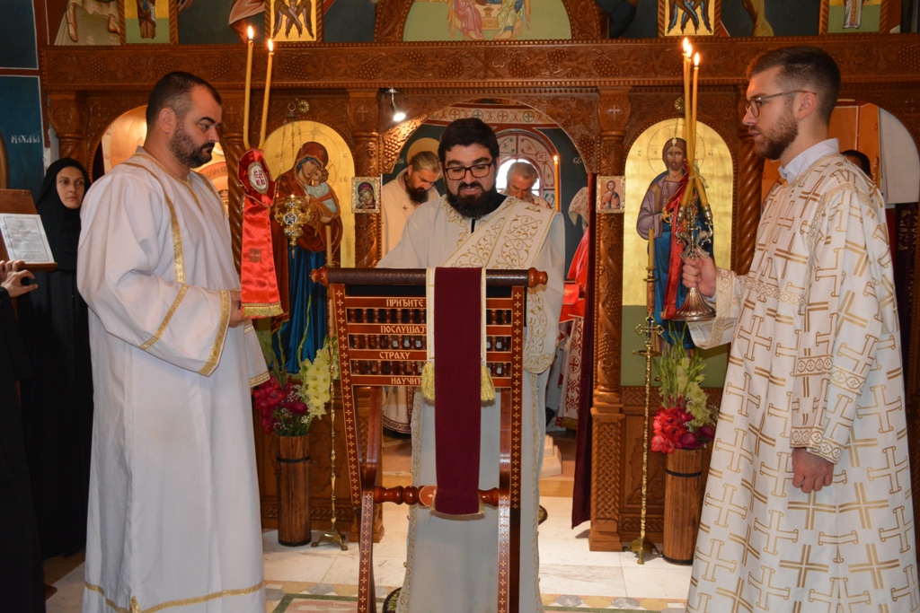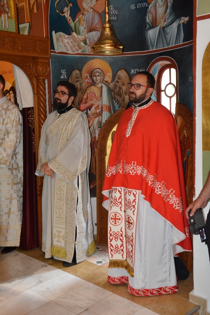 Епископу су саслуживали: јеромонаси Симеон, гост из Епархије тимочке и сабрат манастира Буково, и Онуфрије, игуман манастира Денковца, затим протојереј ставрофор Милић Марковић, архијерејски намесник левачки, јереји Слободан Савковић и Дејан Марковић, као и ђакони Иван Гашић и Василије (Старовлах).