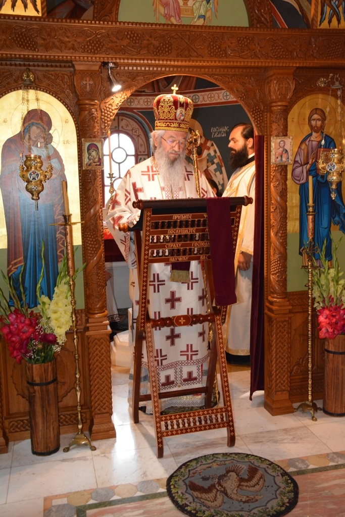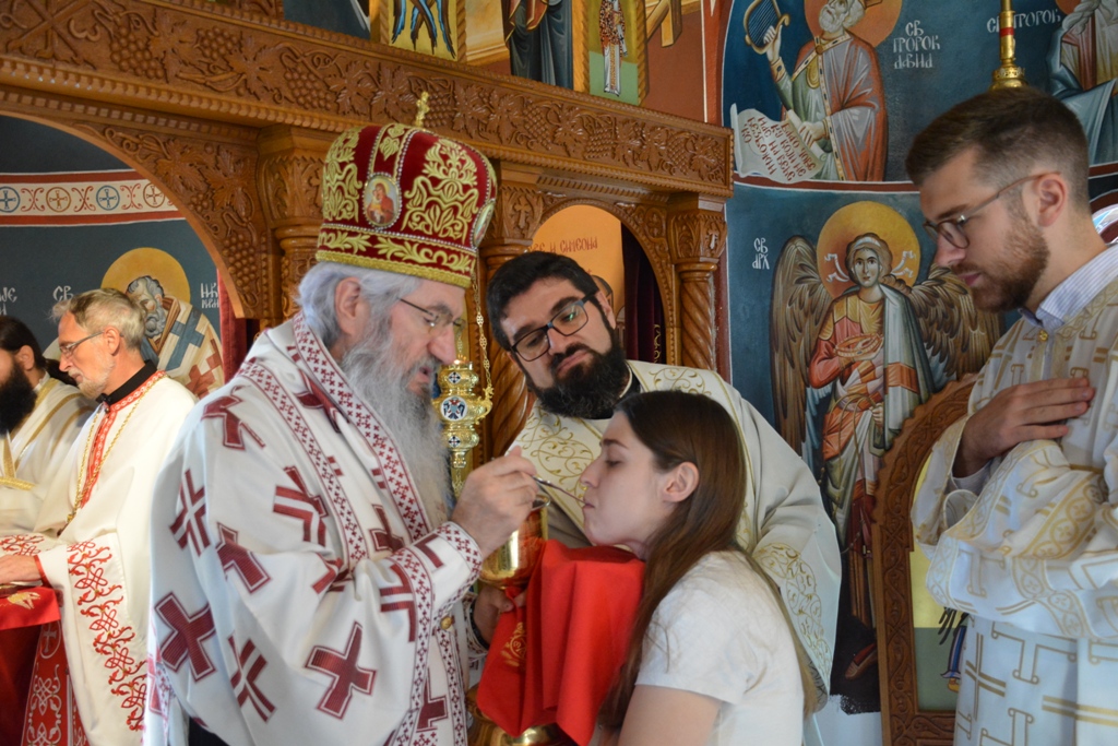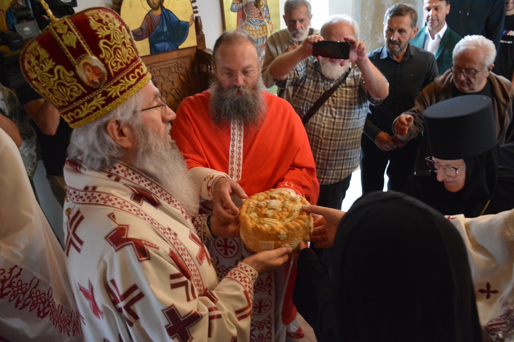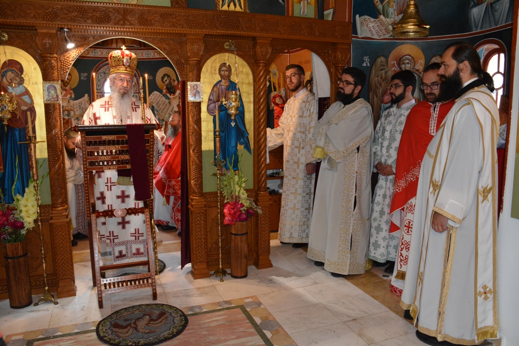 Након прочитаног јеванђељског зачала, Епископ Јован се свештенству и верницима обратио поуком, подсећајући на плодове Духа Светога о којима говори апостол Павле: