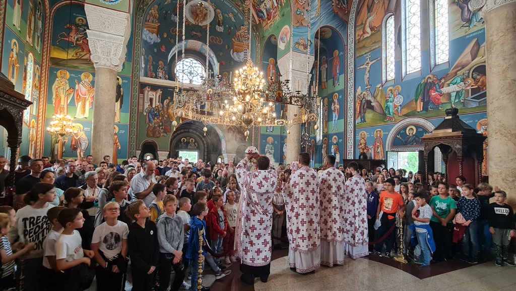 Поред мноштва верног народа који се сваке недеље окупља на сабрање у лазаревачком храму, присутан је био и велики број ученика из основних и средњих школа. Предвођени својим вероучитељима ђаци су активно учествовали у богослужењу кроз заједничко појање са хором и изговарањем молитви које су научили на часовима верске наставе. Велики број ученика се овом приликом и причестио.
