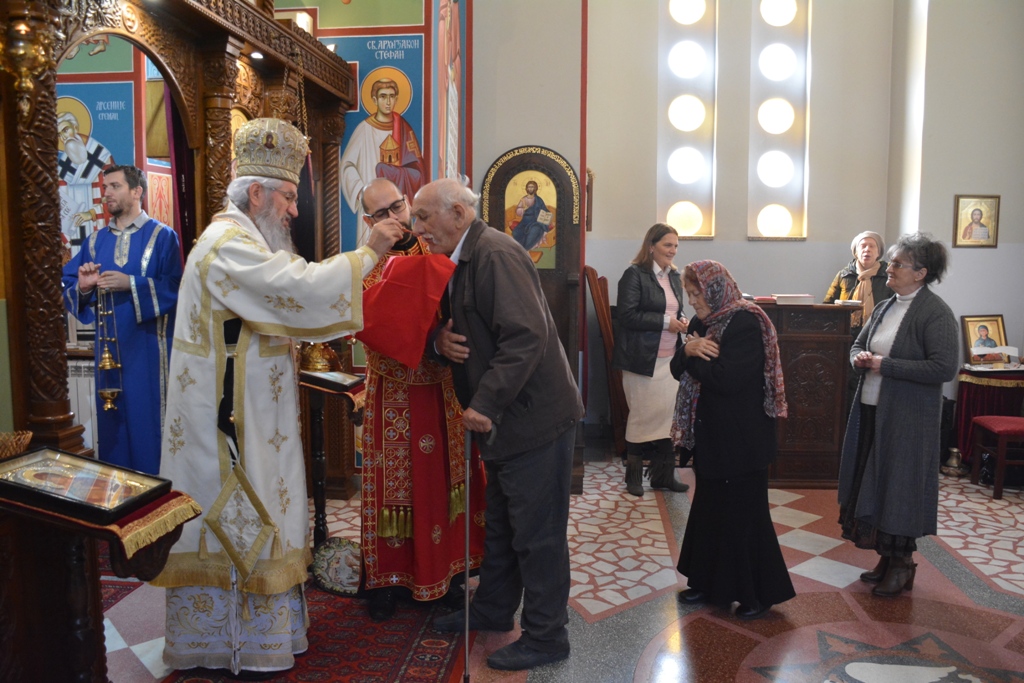 Епископу су саслуживали: старешина храма протојереј Саша Антонијевић, јереј Милош Ђурић и ђакон белошевачке Лазарице Немања Стојковић.