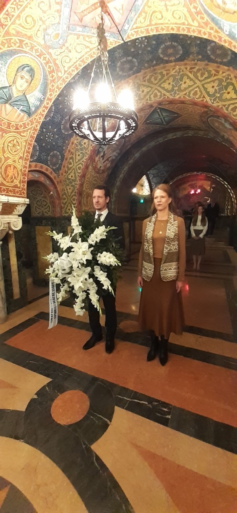 Након заамвоне молитве, свештеници су одслужили парастос краљу Александру. После службе Божије, уследила је свечана церемонија полагања венаца.