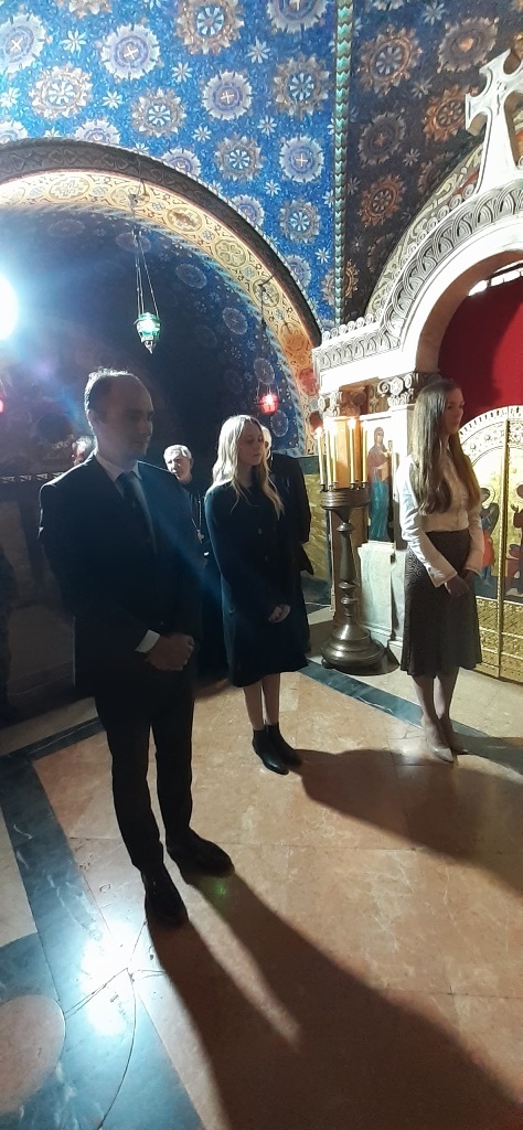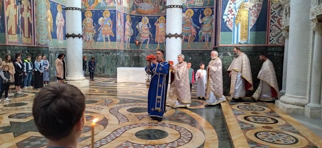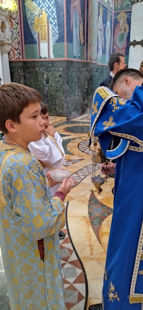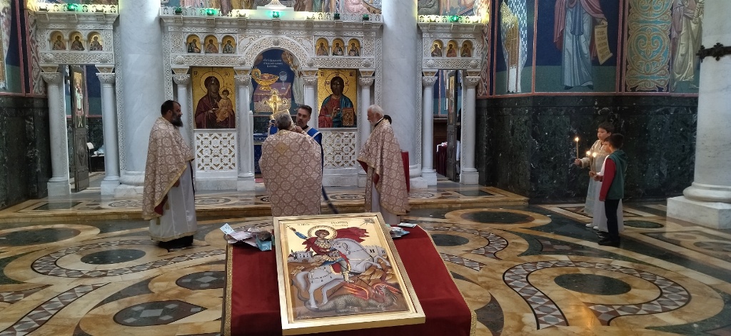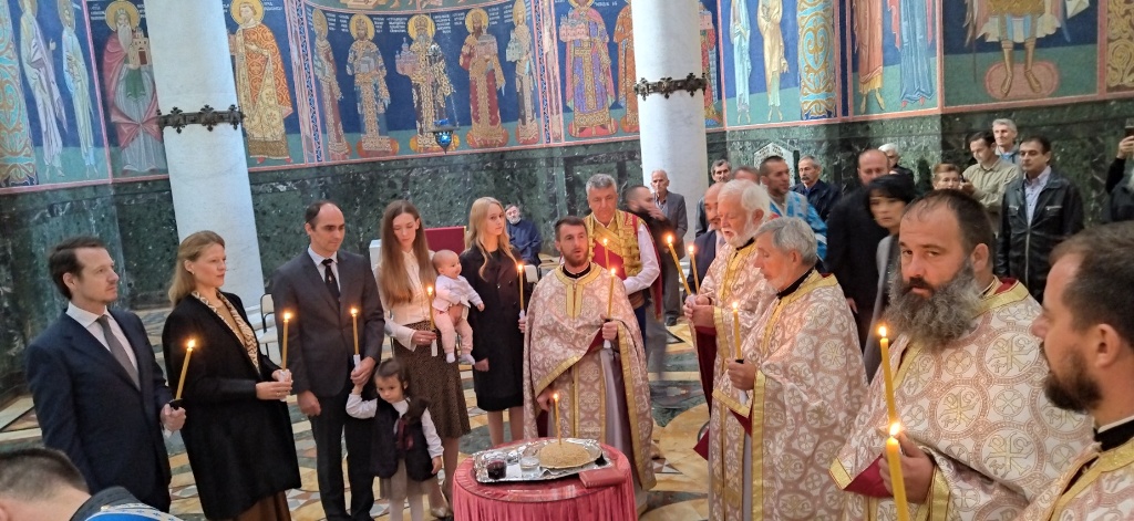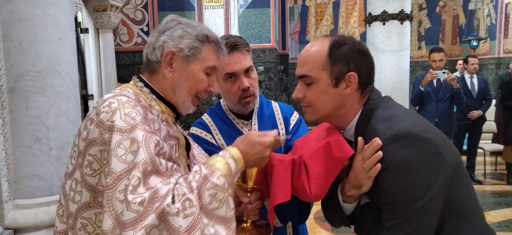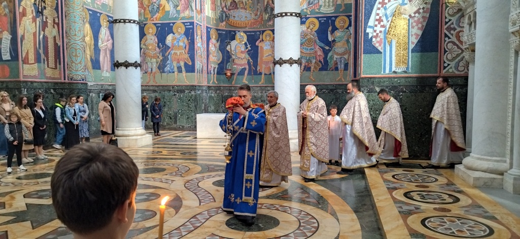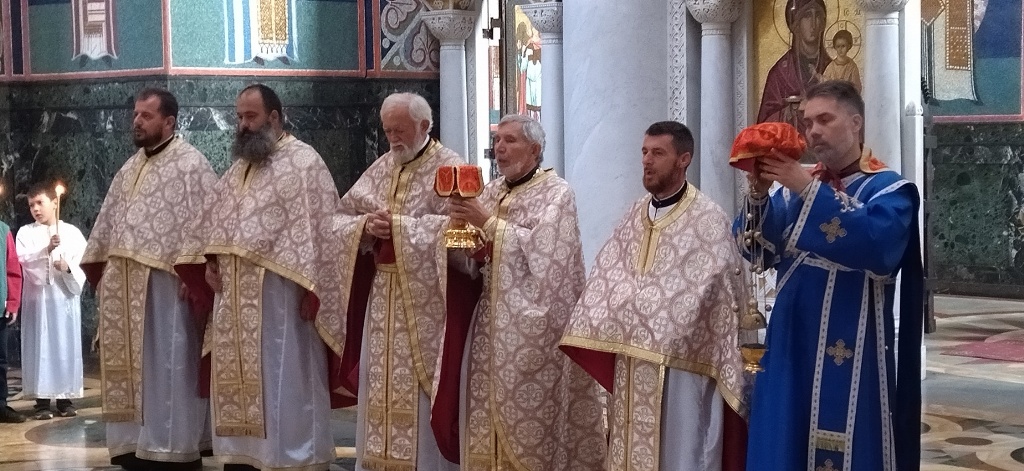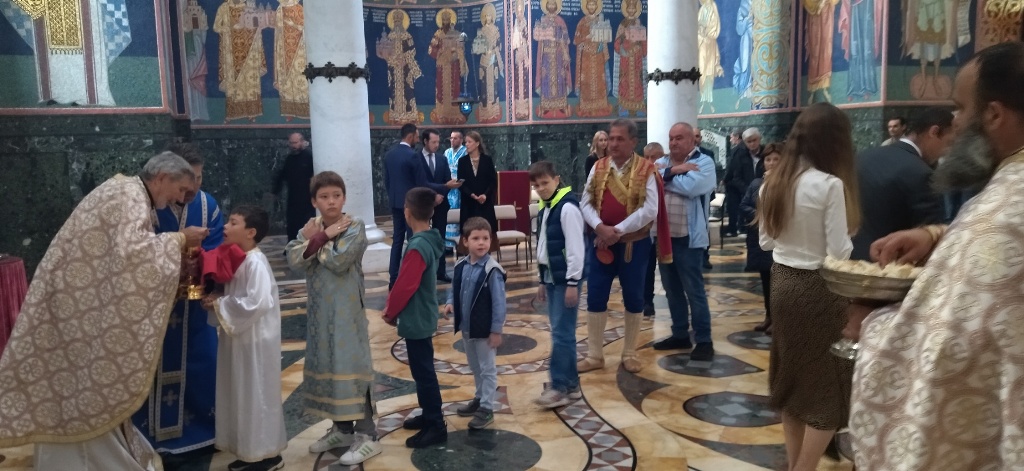 “У Име Оца и Сина и Светога Духа. Драга браћо и сестре, данас смо се састали под сводовима овога Светога Храма да се поучимо речима Светог Јеванђеља које смо данас чули, али и да се кроз Свету Тајну Причешћа сјединимо са Животодавцем и Спаситељем нашим Господом Исусом Христом. Такође, сабрасмо се данас да се опоменемо и сетимо и краља нашег Александра.