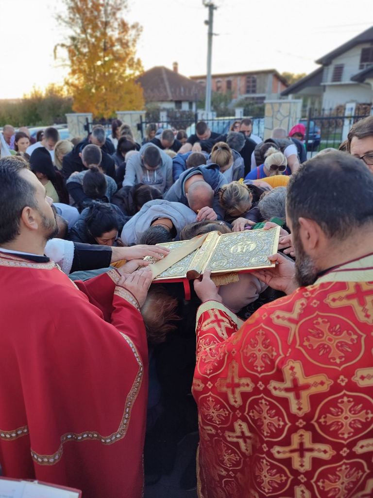 Верни народ испунио је порту светогеоргијевског храма чекајући укрепљење и исцелење у овој Светој Тајни. Радост је било гледати лица верног народа пуна наде и укрепљења, наде на Васкрслог Господа и силу Духа Светога, кроз Сина Божијега, а у Светој Тајни која је остављена нама на исцелење и укрепљење.