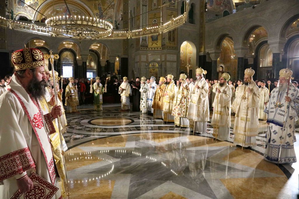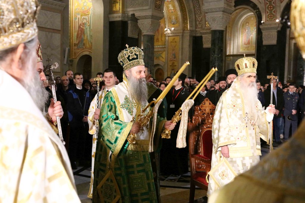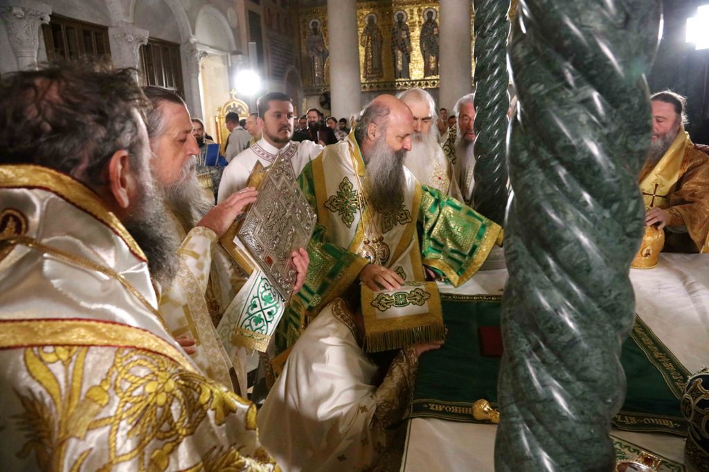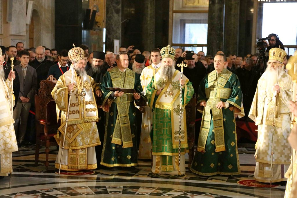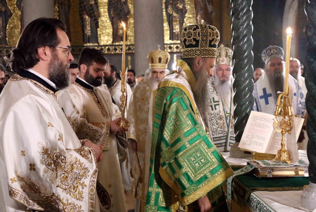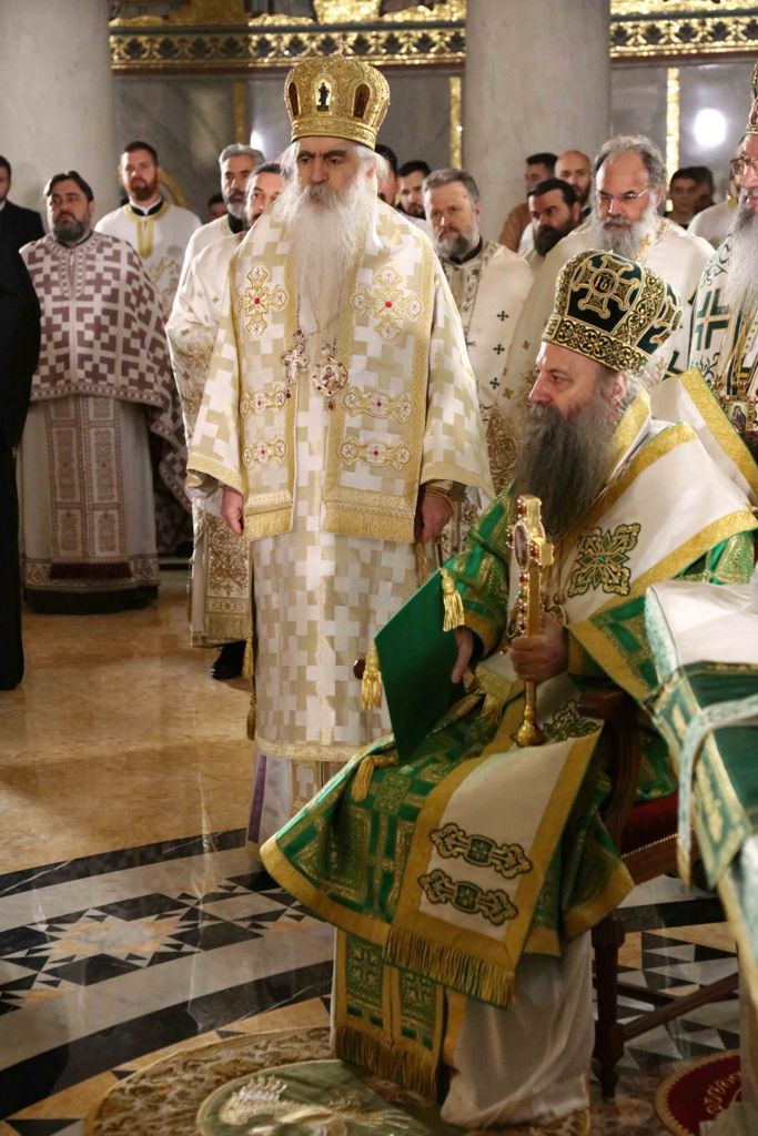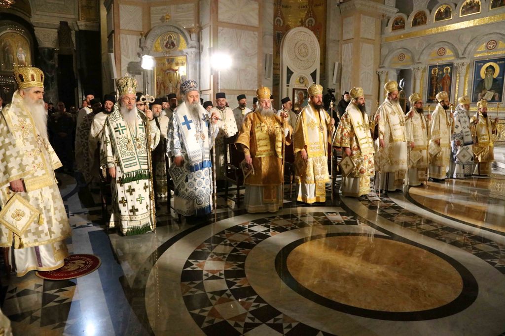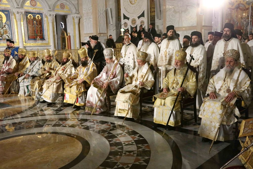 Предстојатељу Српске Православне Цркве саслуживали су Његово Блаженство Архиепископ охридски и Митрополит скопски г. Јован и преосвећена господа епископи бачки Иринеј, врањски Пахомије, шумадијски Јован, браничевски Игнатије, зворничко-тузлански Фотије, милешевски Атанасије, брегалнички Марко, рашко-призренски Теодосије, бихаћко-петровачки Сергије, тимочки Иларион, нишки Арсеније, осечкопољски и барањски Херувим, ваљевски Исихије, будимљанско-никшићки Методије, стобијски Давид, ремезијански Стефан, мохачки Дамаскин, марчански Сава, хвостански Алексеј, новобрдски Иларион, јегарски Нектарије.