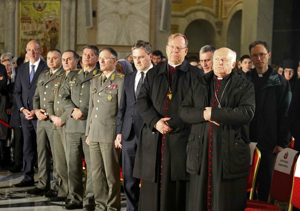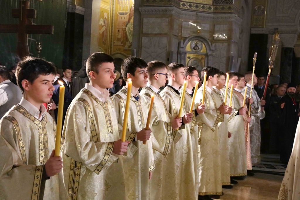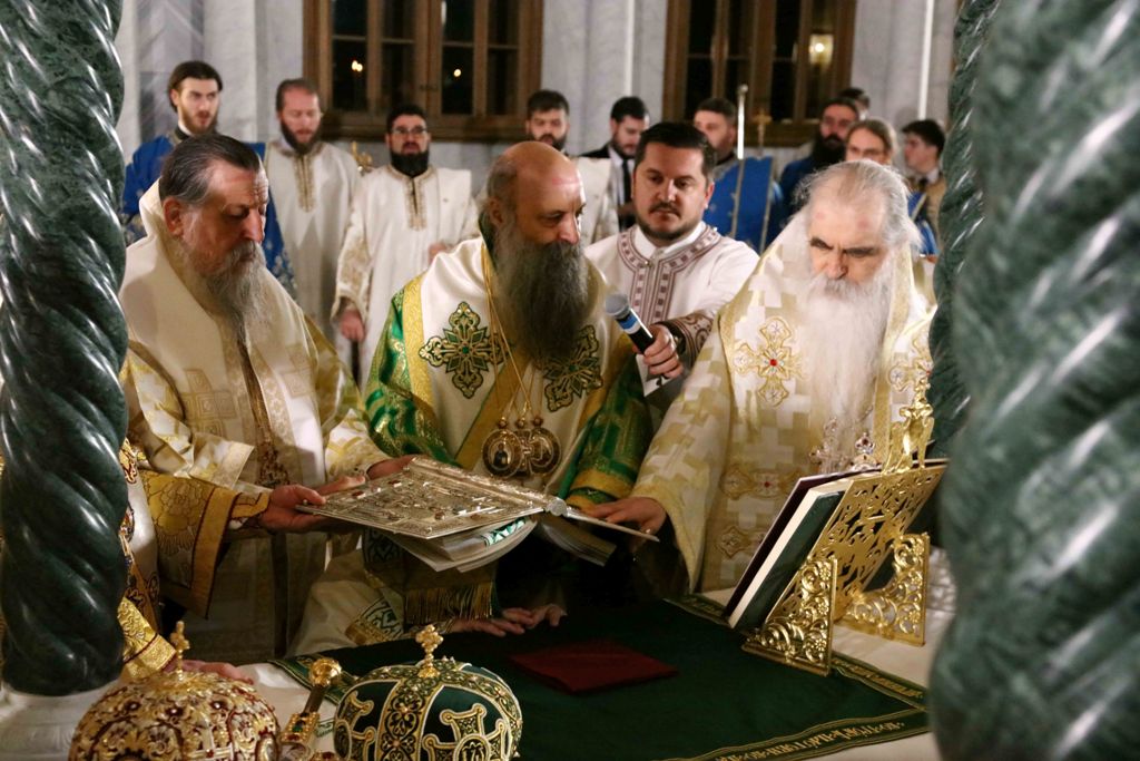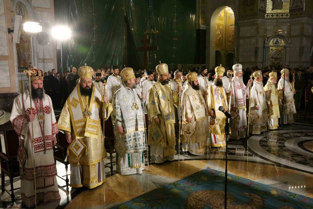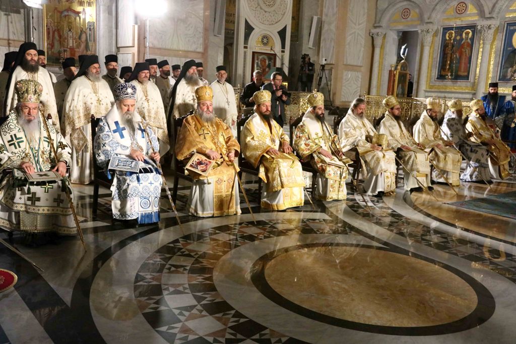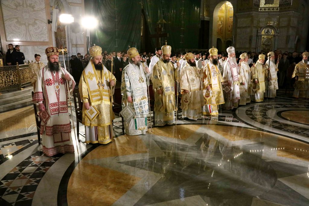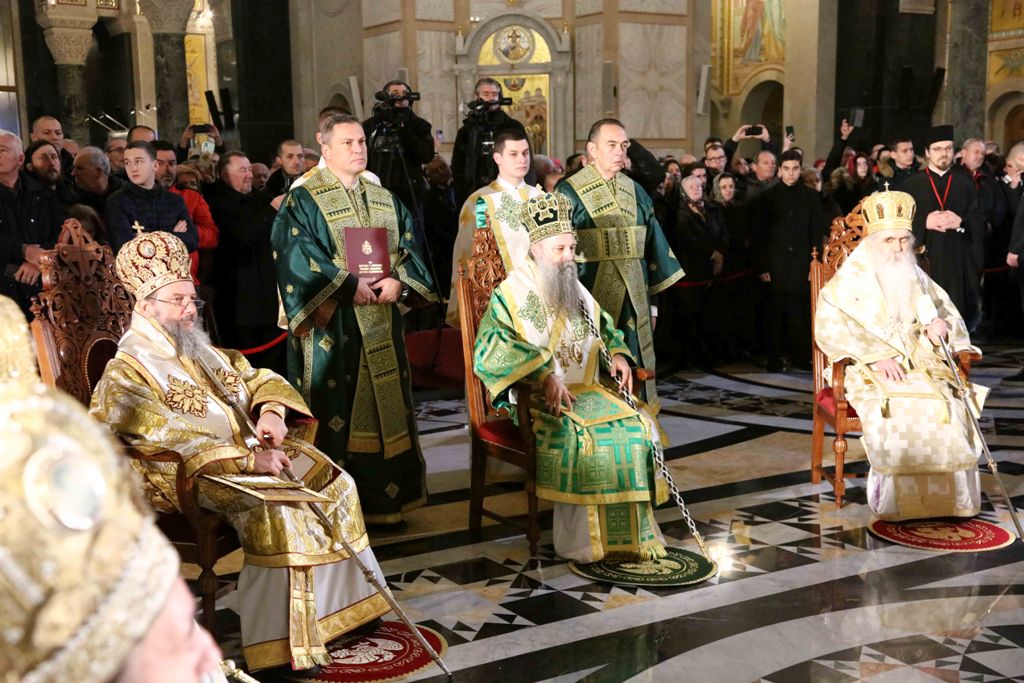 Предстојатељу Српске Православне Цркве саслуживали су Његово Блаженство Архиепископ охридски и Митрополит скопски г. Јован и преосвећена господа епископи бачки Иринеј, врањски Пахомије, шумадијски Јован, браничевски Игнатије, зворничко-тузлански Фотије, милешевски Атанасије, брегалнички Марко, рашко-призренски Теодосије, бихаћко-петровачки Сергије, тимочки Иларион, нишки Арсеније, осечкопољски и барањски Херувим, ваљевски Исихије, будимљанско-никшићки Методије, стобијски Давид, ремезијански Стефан, мохачки Дамаскин, марчански Сава, хвостански Алексеј, новобрдски Иларион, јегарски Нектарије.
