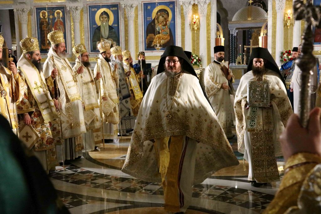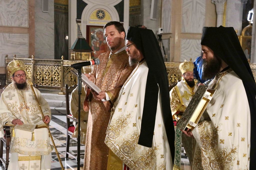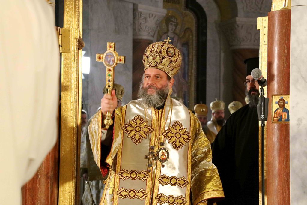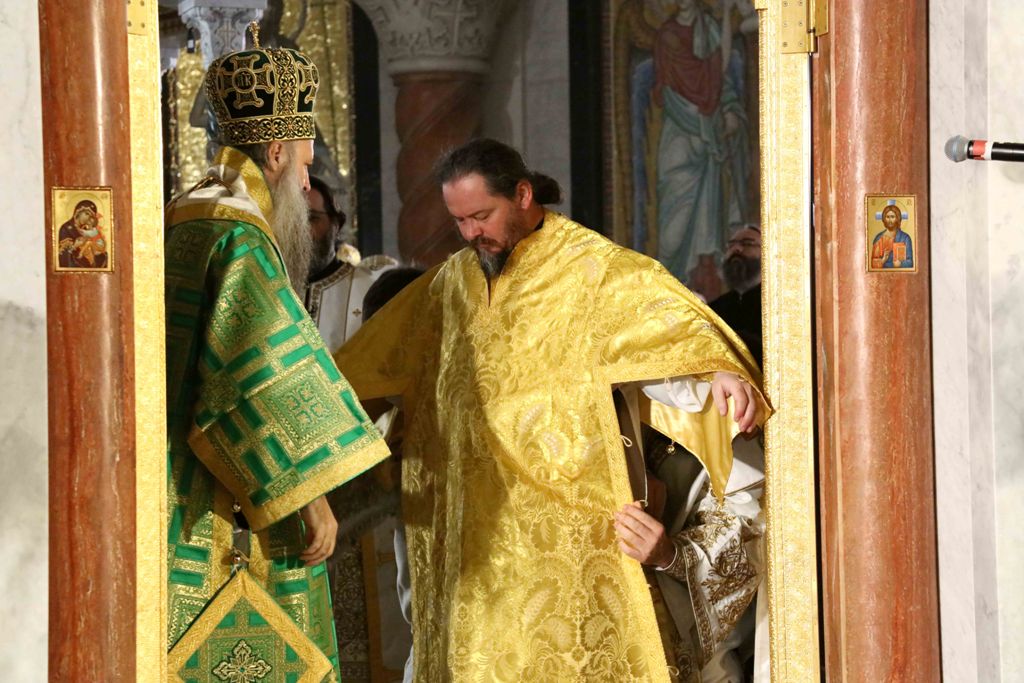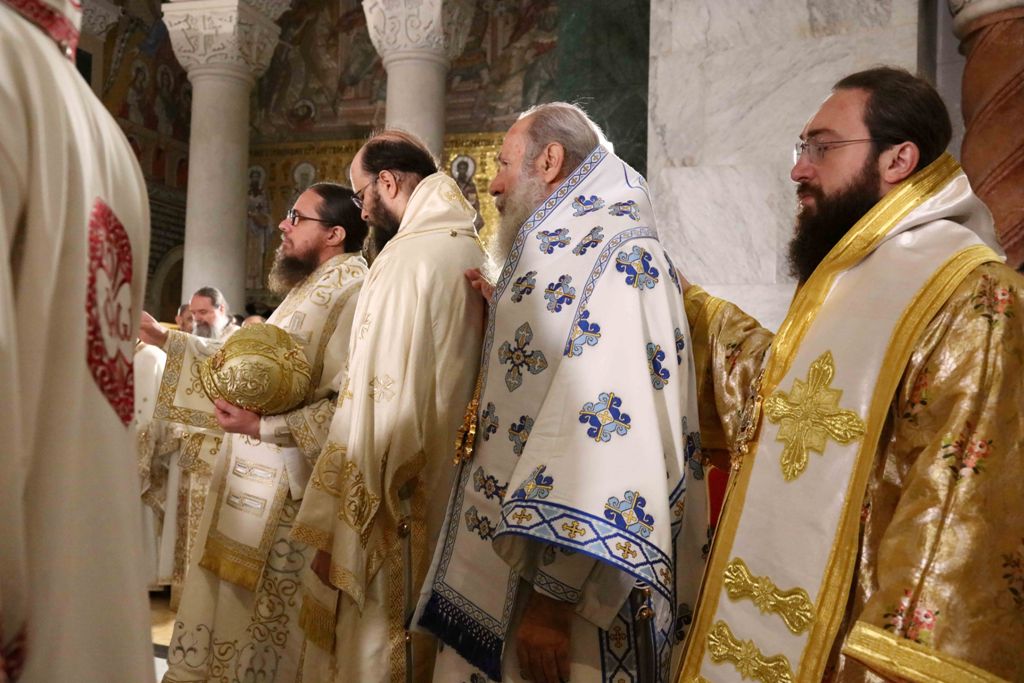 – У име Оца и Сина и Светог Духа. Браћо архијереји, браћо и сестре, верни народе Божји, ево на овај светодуховски празник – јер свака хиротонија епископа јесте догађај када служимо исту службу коју служимо и на празник Педесетнице, на празник Цркве Христове, важно је да знамо оно што је наш новохиротонисани епископ прочитао у свом исповедању вере, а то је да се на Божанственој Литургији као сабрању, служењу и светотајинском заједништву све Цркве, народа Божјег, остварује и оприсутњује сав Христов божански домострој спасења света и рода људског.