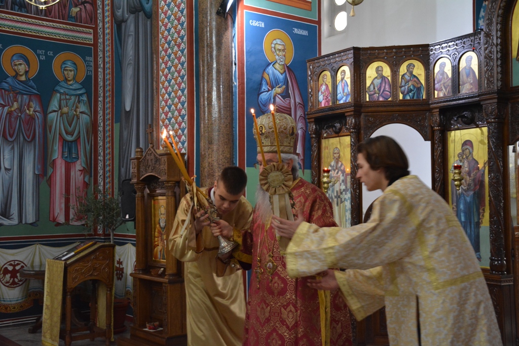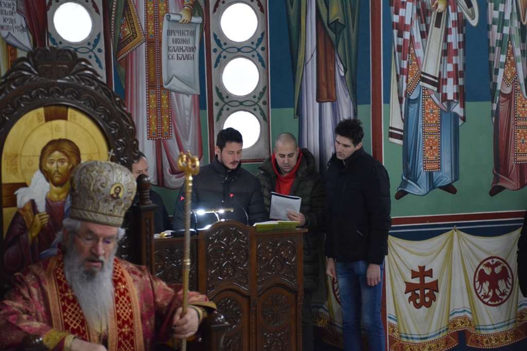 Његовом Преосвештенству саслуживали су: протојереј-ставрофор Живота Марковић, јереј Александар Мирковић и ђакон Александар Ђорђевић.