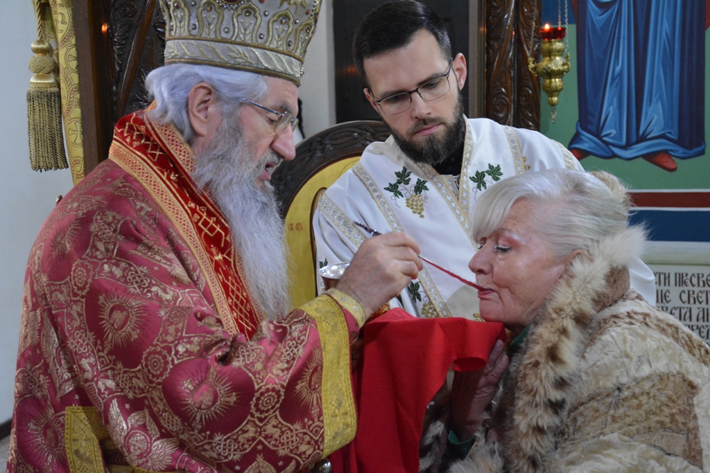 У наставку свете литургије, Преосвећени је причестио верни народ Телом и Крвљу Господа Исуса Христа.