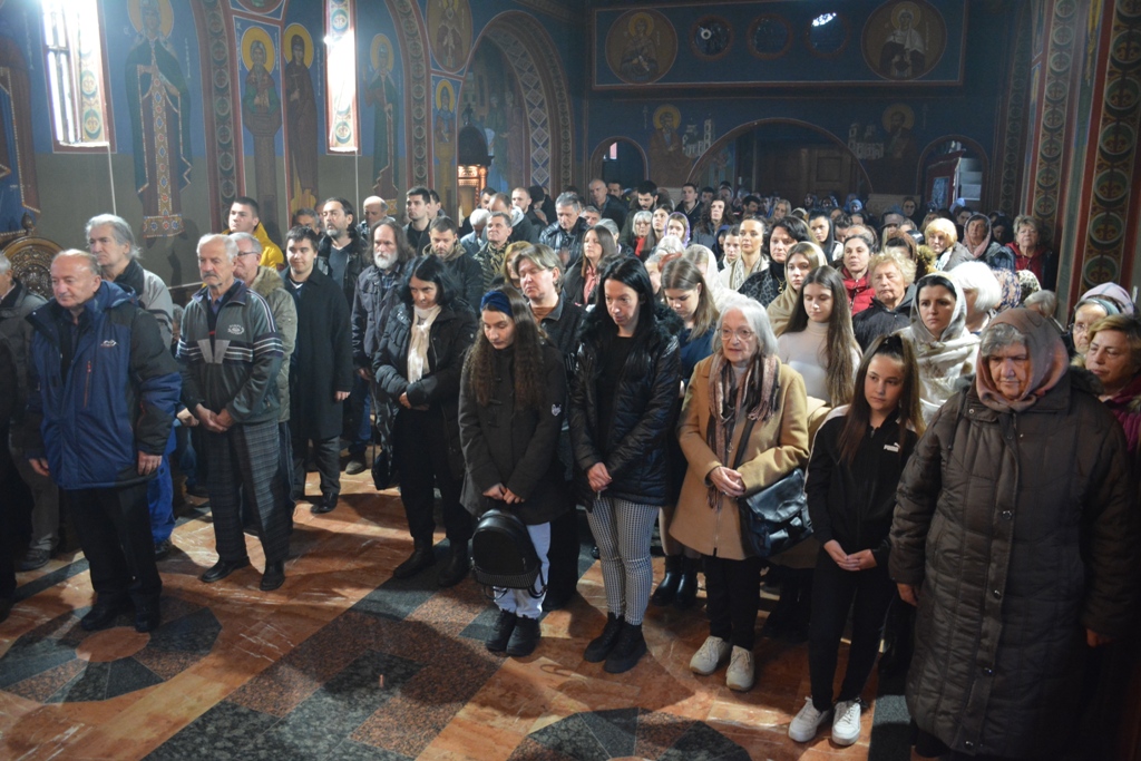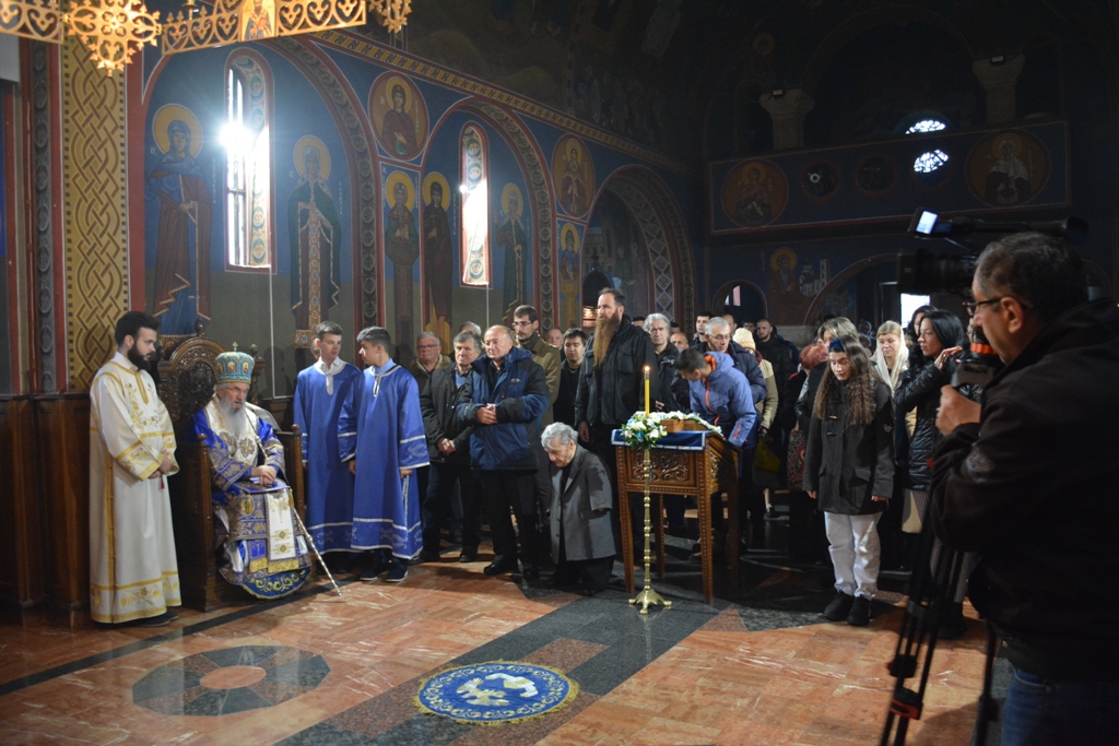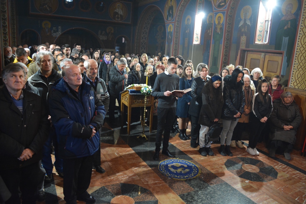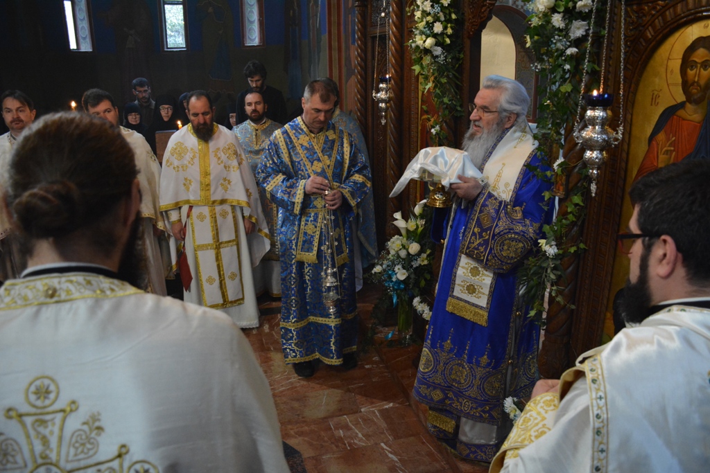 Епископу су саслуживали, протојереј-ставрофор Зоран Крстић, архимандрит Онуфрије (Вранић), протојереј-ставрофор Милован Антонијевић, протојереј-ставрофор Синиша Марковић, протојереј-ставрофор Драган Брашанац, протојереј-ставрофор Рајко Стефановић, протојереј Срђан Тешић, јереј Ненад Милојевић, јереј Дејан Марковић, јеромонах Јован (Прокин) и протођакон Иван Гашић.