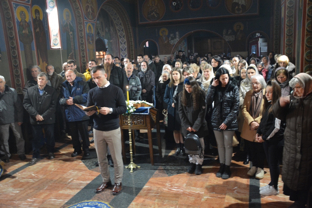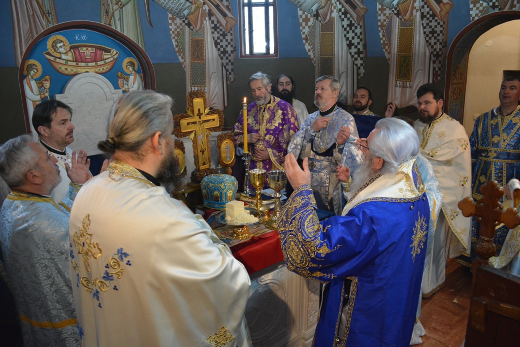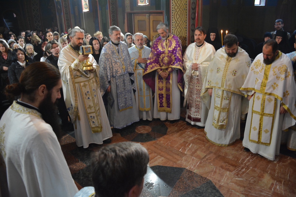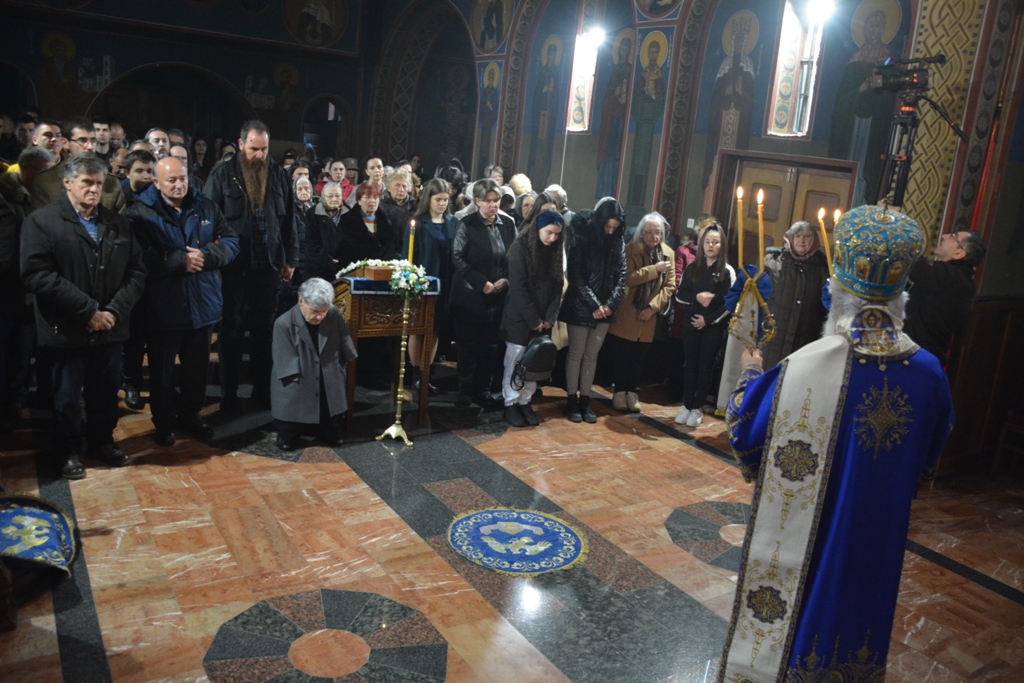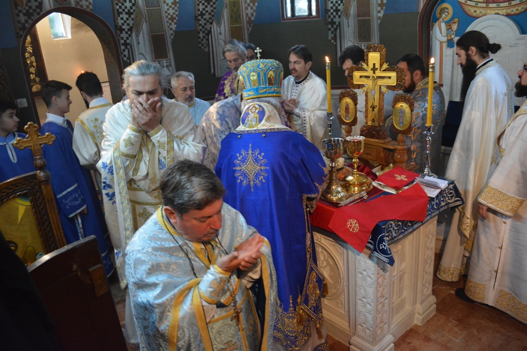 Епископу су саслуживали, протојереј-ставрофор Зоран Крстић, архимандрит Онуфрије (Вранић), протојереј-ставрофор Милован Антонијевић, протојереј-ставрофор Синиша Марковић, протојереј-ставрофор Драган Брашанац, протојереј-ставрофор Рајко Стефановић, протојереј Срђан Тешић, јереј Ненад Милојевић, јереј Дејан Марковић, јеромонах Јован (Прокин) и протођакон Иван Гашић.