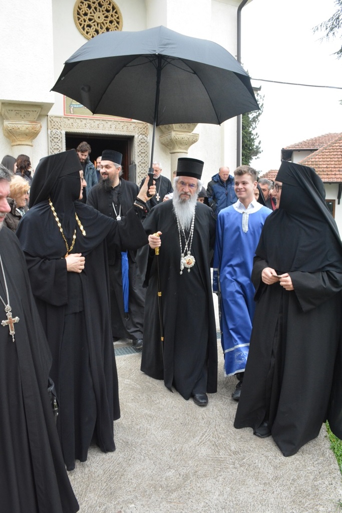 Потребно је и нама да се уразумимо и молимо Богородици. Да се сећамо овог догађаја на дан Благовести па ћемо моћи увек да чујемо ту вест, благу вест. Али, човек зависно од њега, он ће чути оно што жели да чује. Ко жели да чује добро, добро ће и добити. Сваки човек јеванђеља гледа само оно што је добро и сеже ка добром и види оно што је добро, а све друго заборавља. Битно је заборавити све лоше да нам не би то лоше одвукло пажњу. У човеку нема апсолутног добра, а ни зла, само је зависно шта хоћемо да видимо. Зато да се увек помолимо Мајци Божјој. Оптерећени смо са свих страна неким негативним стварима и дешавањима. Нека је благословен и данашњи празник и нека нам буде на очишћење Свето причешће, нека је срећна слава сестринству овог манастира и свима вама који сте дошли да се помолите Мајци Божјој. Ухватимо се за мајку и за њену руку и нека нам Бог да да никада не буде по вољи нашој него увек по вољи Божјој како нас Богородица и учи. Све што терамо да буде по нашој вољи, неће нам на добро изаћи. А, ако кажемо и препустимо се Богу, онда ћемо доћи у једно блажено стање. Не треба нам ни много школе нити било шта друго да бисмо научили оних пар речи, “Пресвета Богородице спаси нас”.