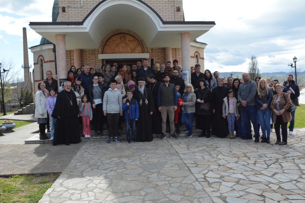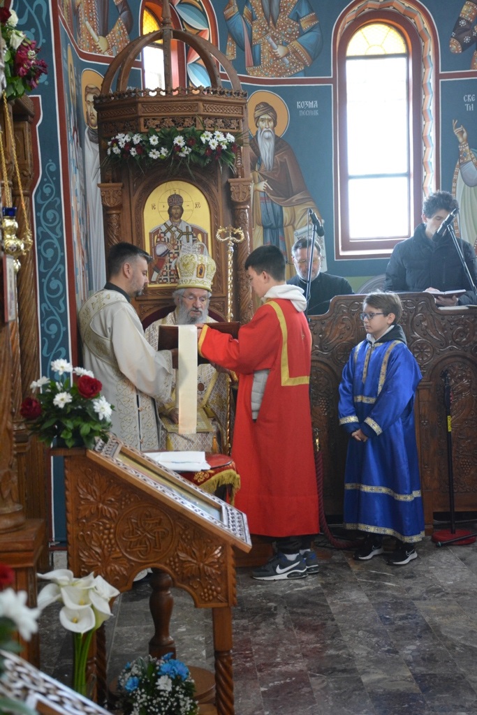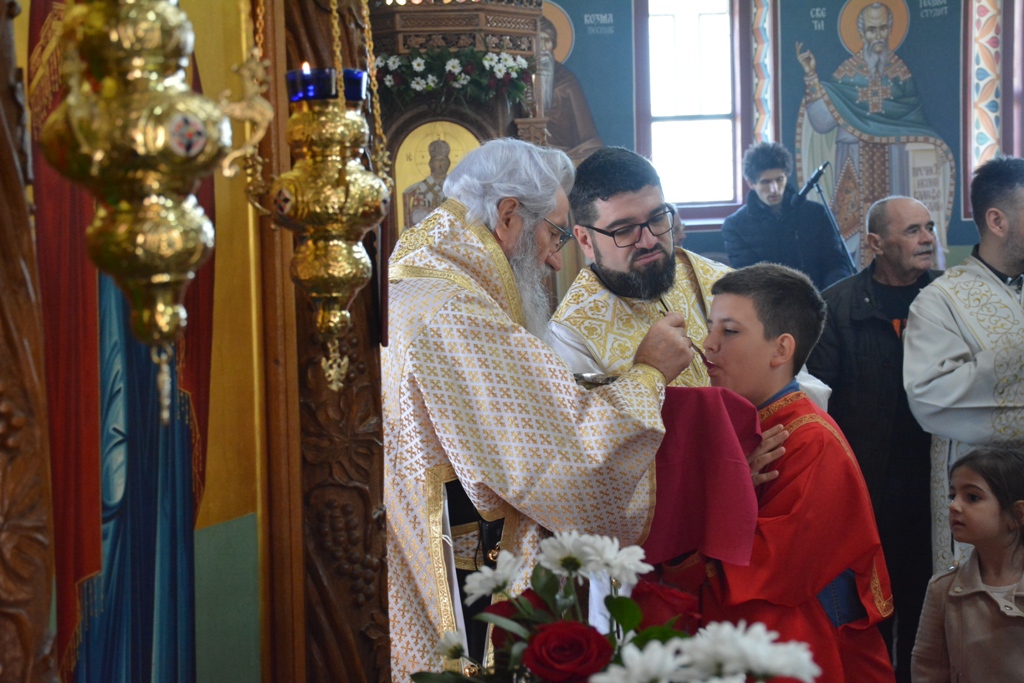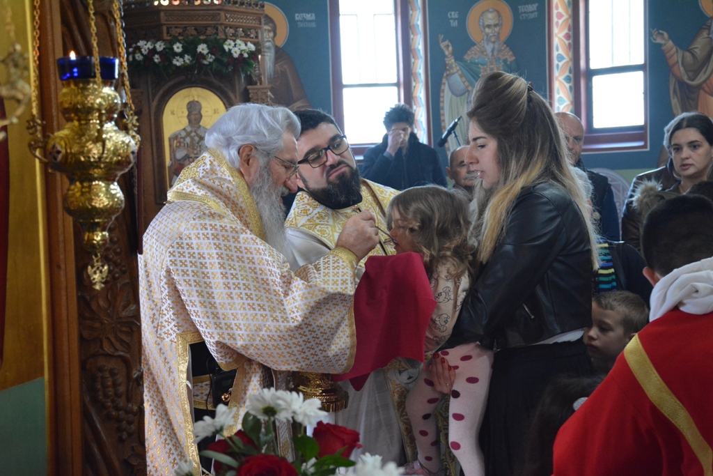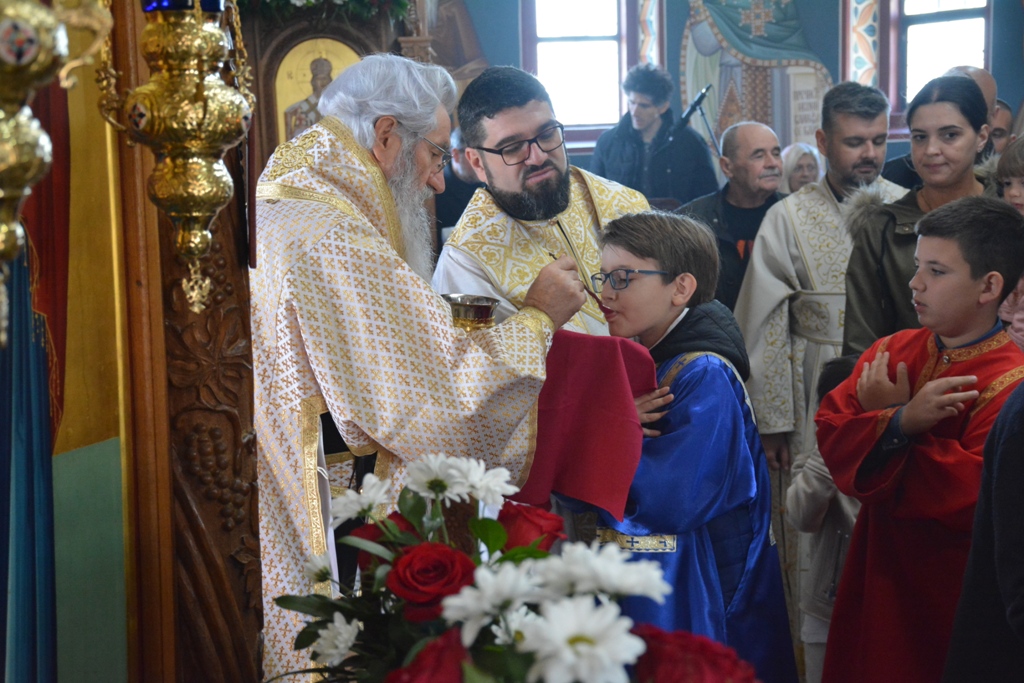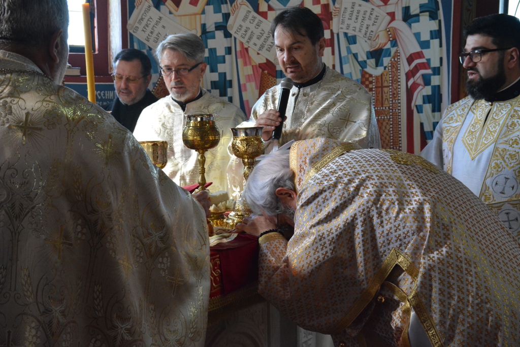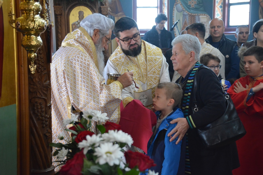 У току Свете литургије, Епископ је причестио велики број верника који се припремао за Свето причешће.