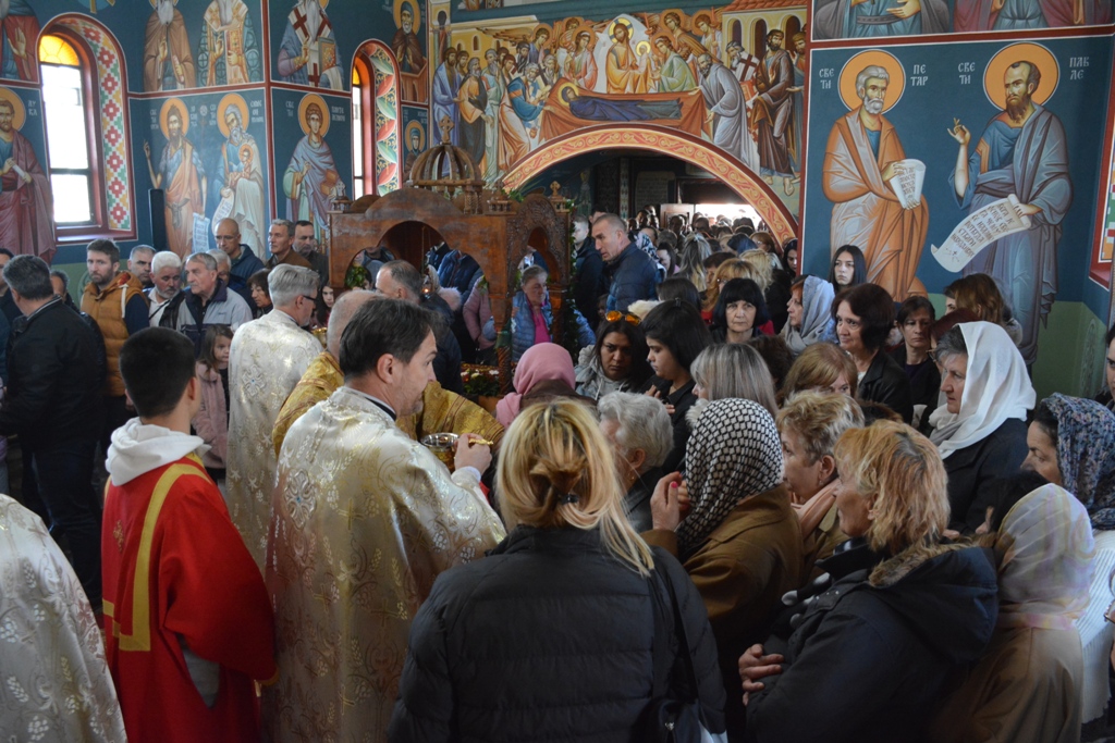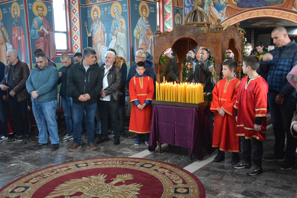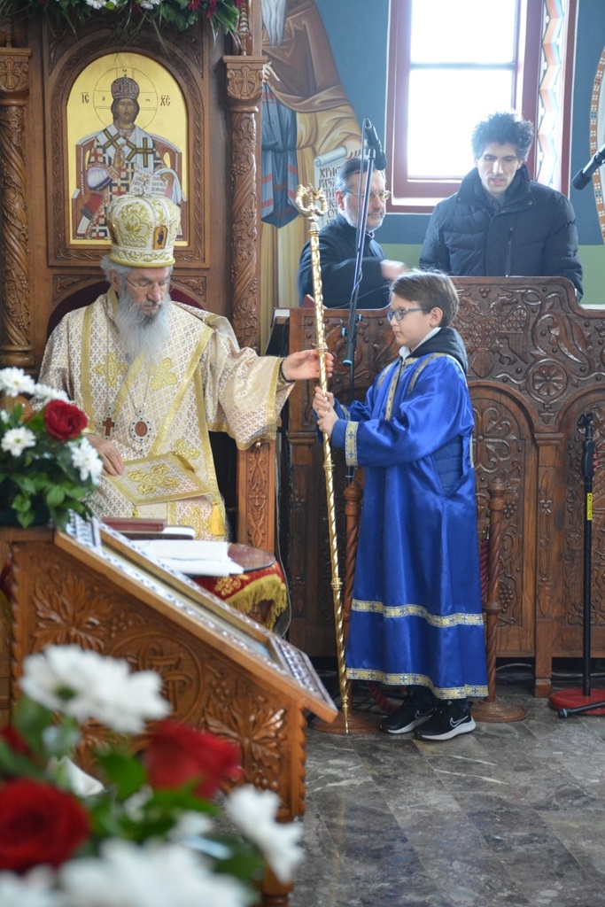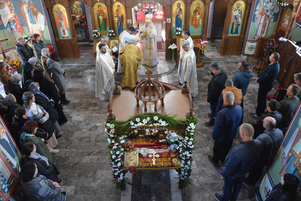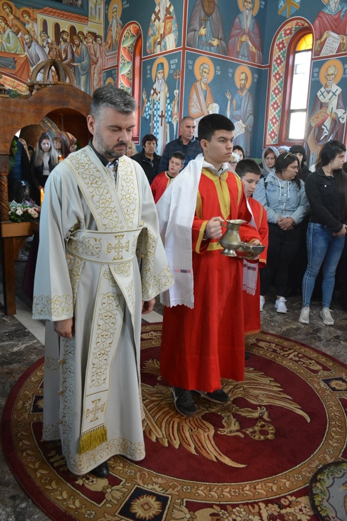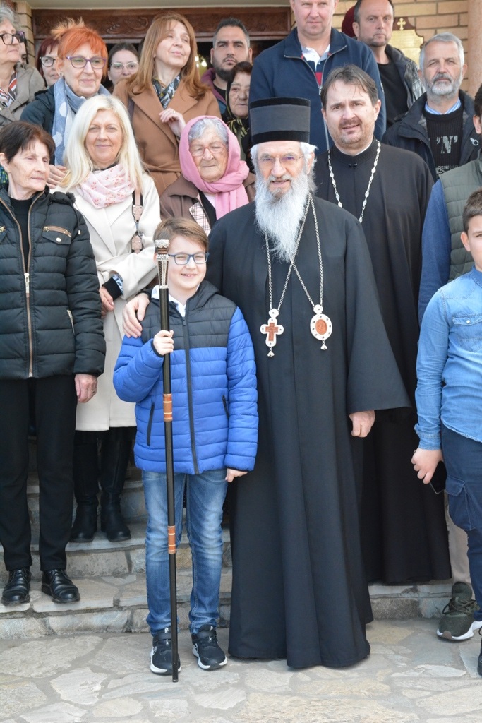 У току Свете литургије, Епископ је причестио велики број верника који се припремао за Свето причешће.