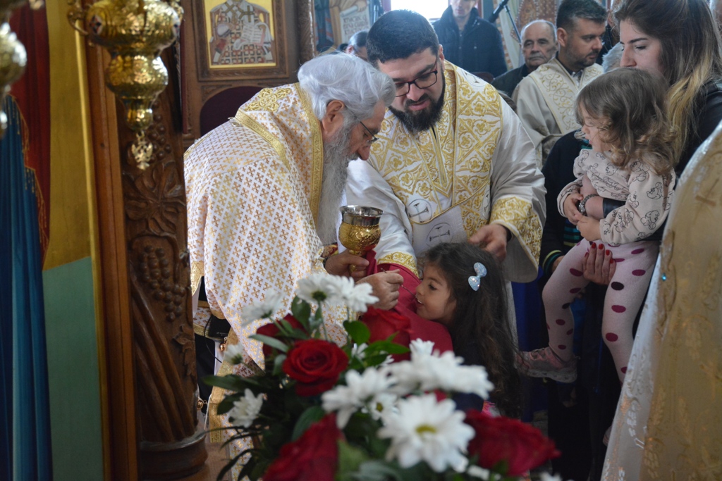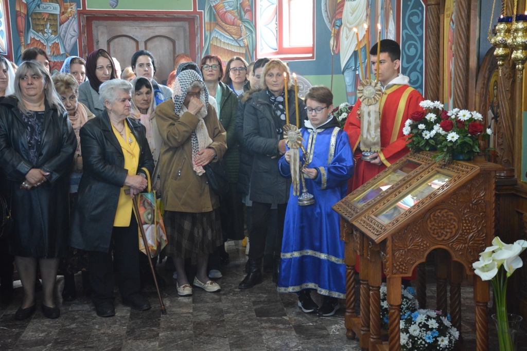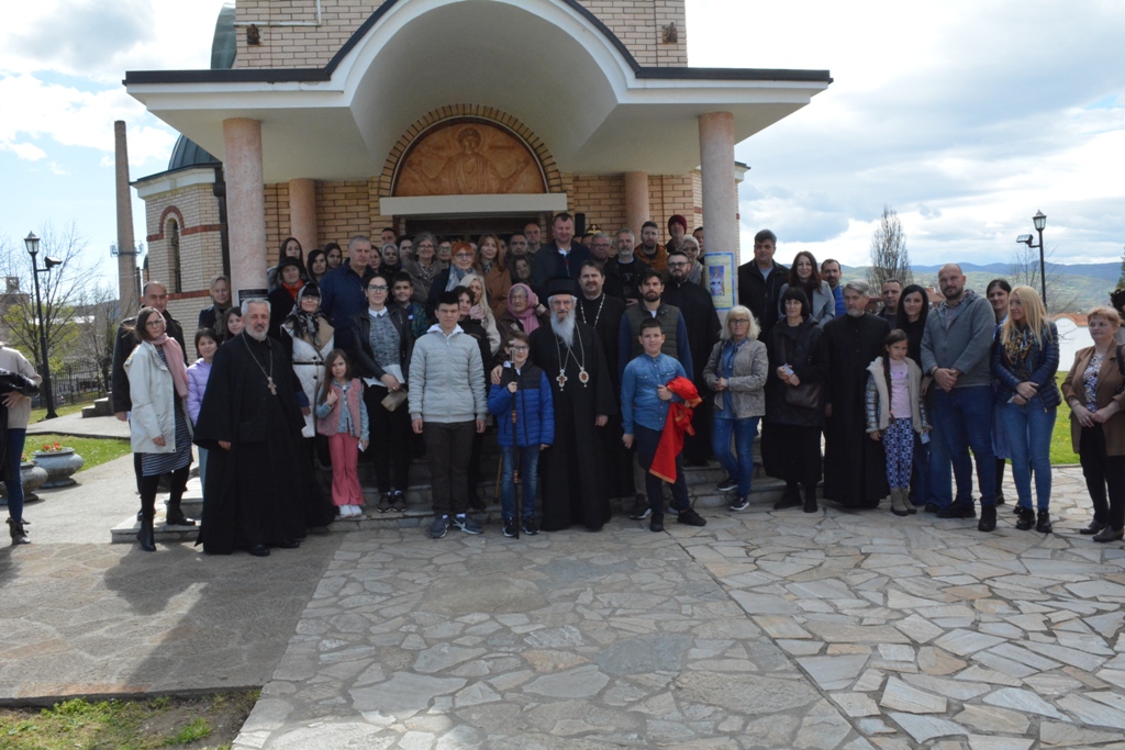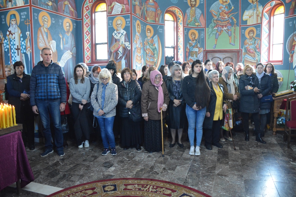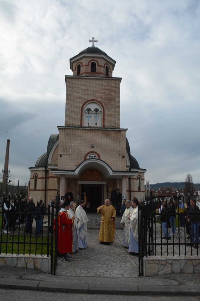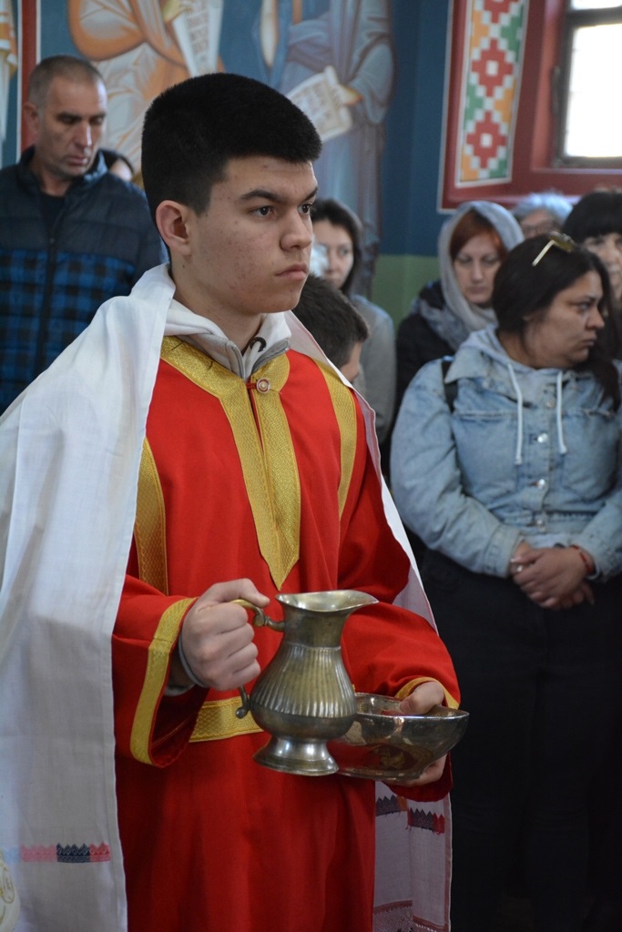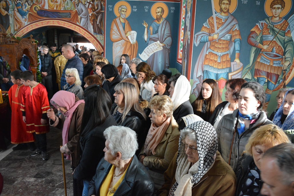 У току Свете литургије, Епископ је причестио велики број верника који се припремао за Свето причешће.