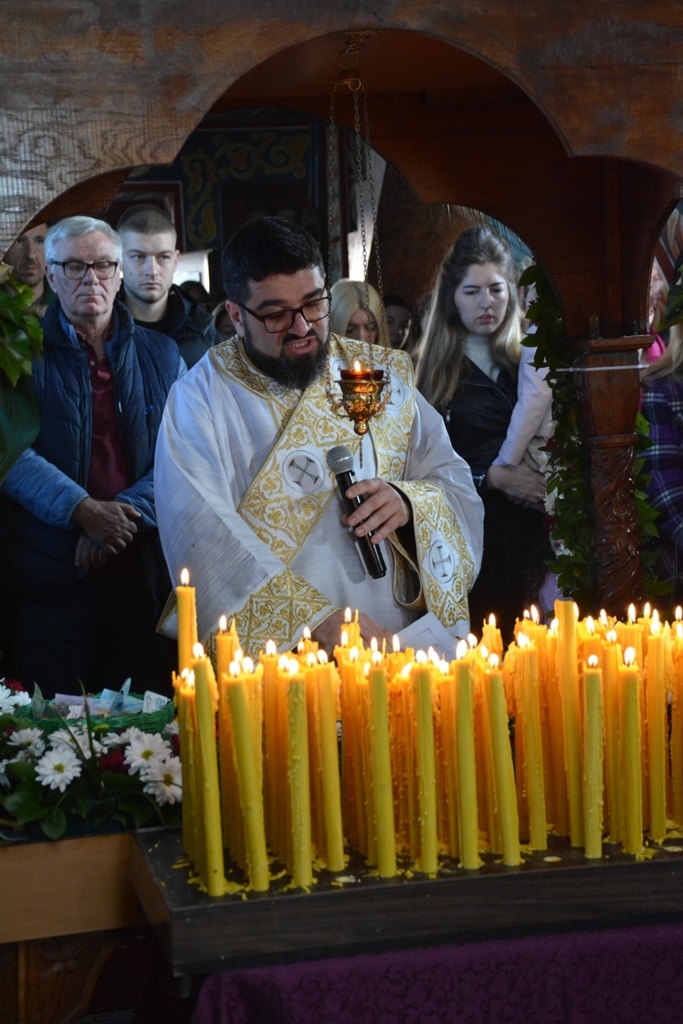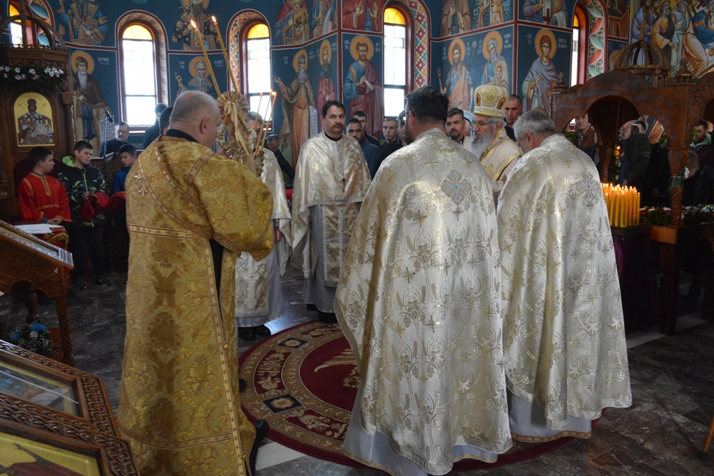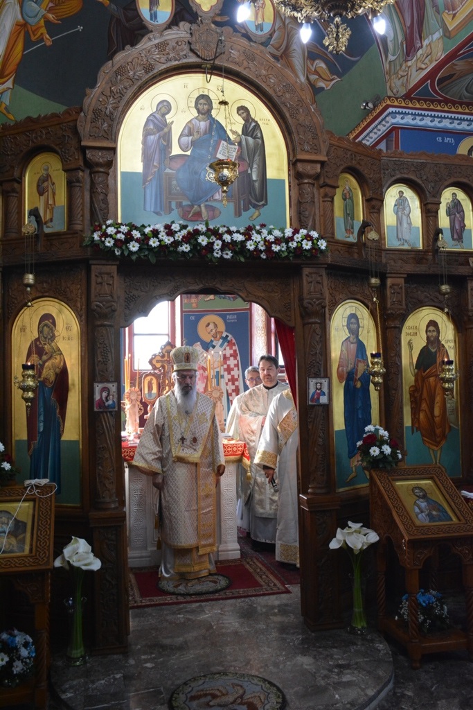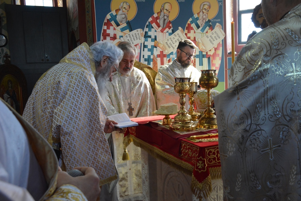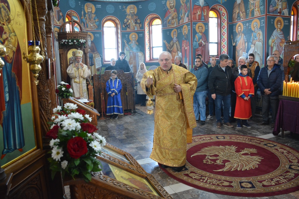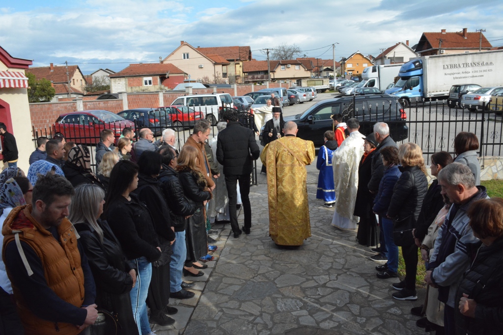 Епископу је саслуживало братство храма као и Архијерејски намесник крагујевачки мр Рајко Стефановић и протођакон Иван Гашић.