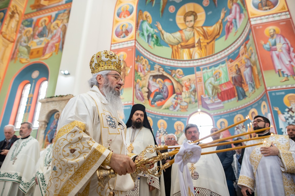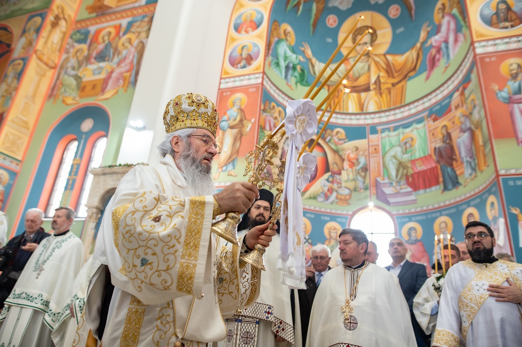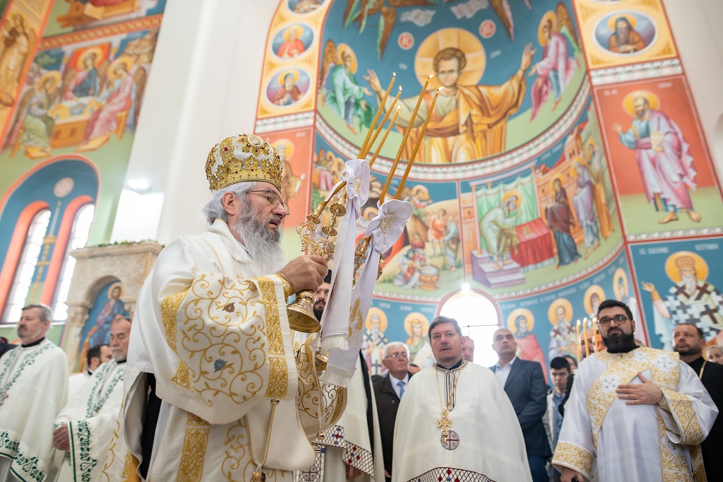 Нама без живе Цркве не требају ни ови храмови, али нам требају храмови да служимо службу, да се ту састајемо да се у њима молимо, да се у њима причешћујемо и зато би требало да имамо на уму за све ово што рекох ове речи Светог апостола Павла, које смо и данас чули у прочитаном Апостолу: Браћо, нека је у вама иста мисао која је у Христу Господу Исусу. И ове речи значе да је за свакога хришћанина главни циљ и, ако хоћете, крајња мета и највиши домет људске мисли управо мислити оно што је у Христу Исусу. Када је наша мисао усмерена ка мисли Христовој, онда неће наше мисли лутати. Онда ћемо само мисли сабирати да мислимо о добру и да говоримо о добру и да чинимо добро. Ко не уме да влада добро мислима својим, а то није лако, он не влада у ствари собом. Зато ће тај човек истицати само себе и само говорити – ја, ја, ја. Само ће истицати сопствени его. Зашто то такав човек чини? Зато што је у ствари свестан да нема тих врлина, али хоће да их скрива и сакрије тиме што ће се пред другима претварати другачији и бољи, него што јесте. Отуда свака људска мисао, ако се не преобрази у Христову мисао, она трули и сасушује се.