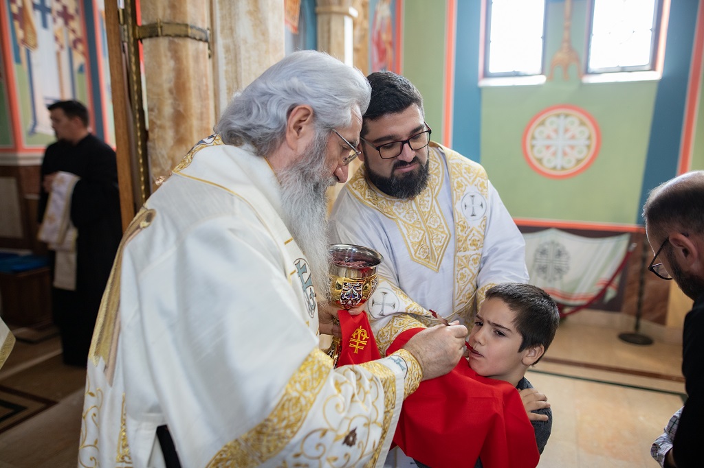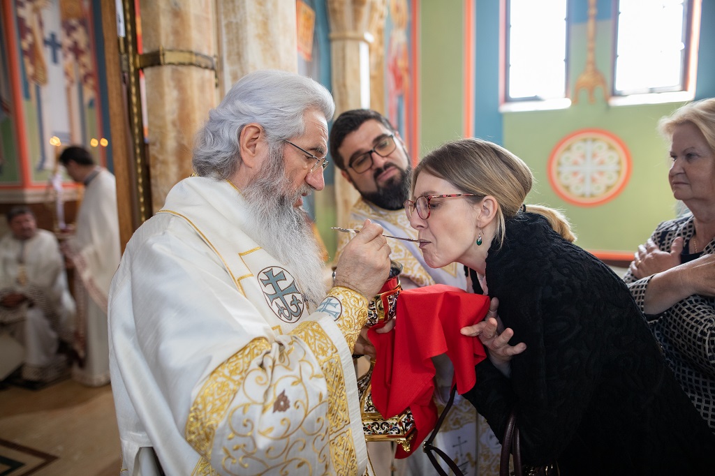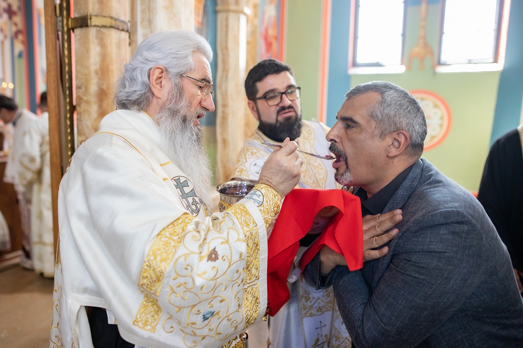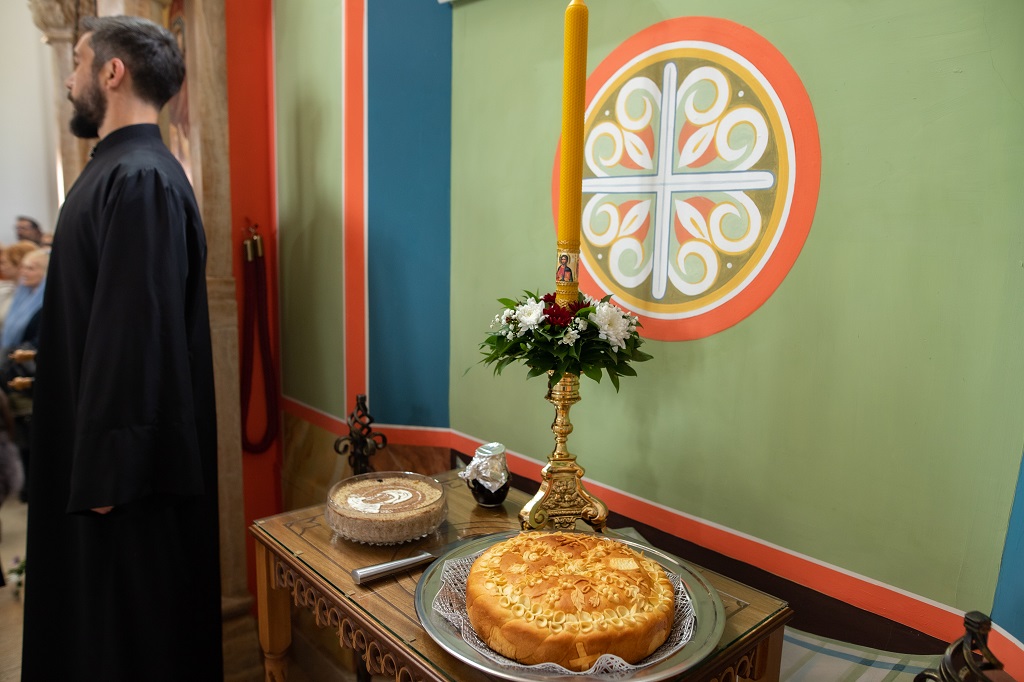 Сво свештенство, монаштво и мноштво верног народа из Младеновца и околине је са великом пажњом саслушало беседу нашег Архијереја, а потом се сјединило са Господом. На крају Свете Литургије извршен је чин освећења кољива и резања колача. У порти цркве Светих Јоакима и Ане је било приређено окрепљење након евхаристијског сабрања.