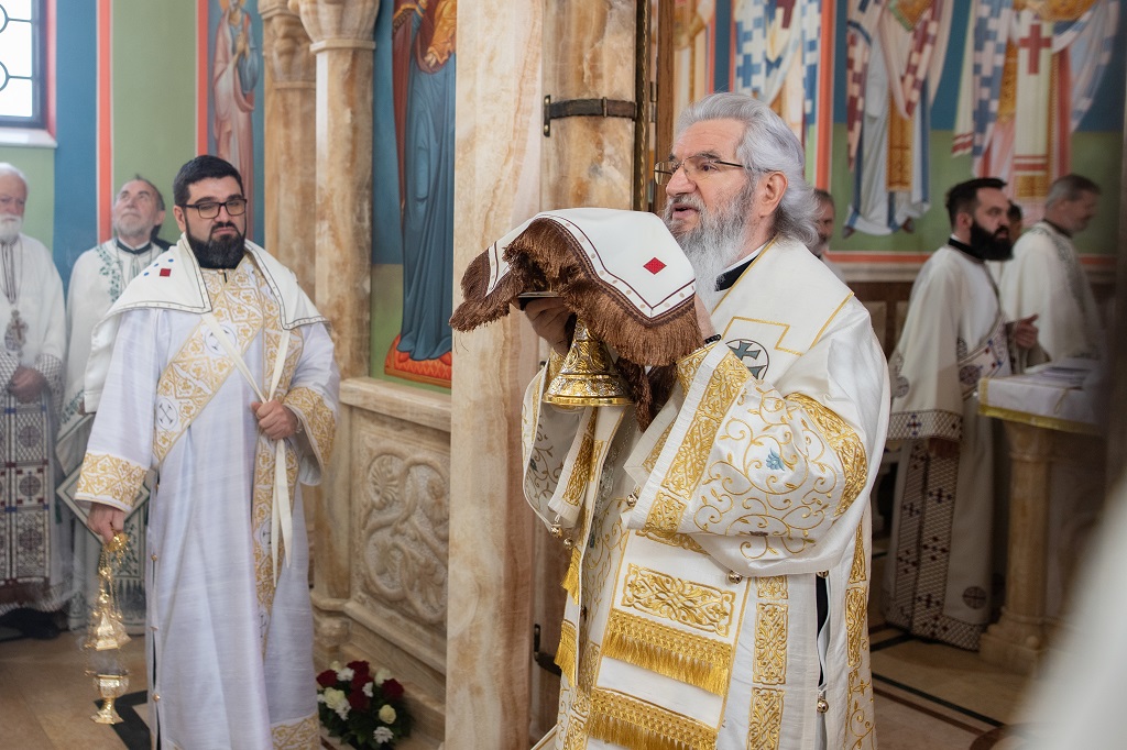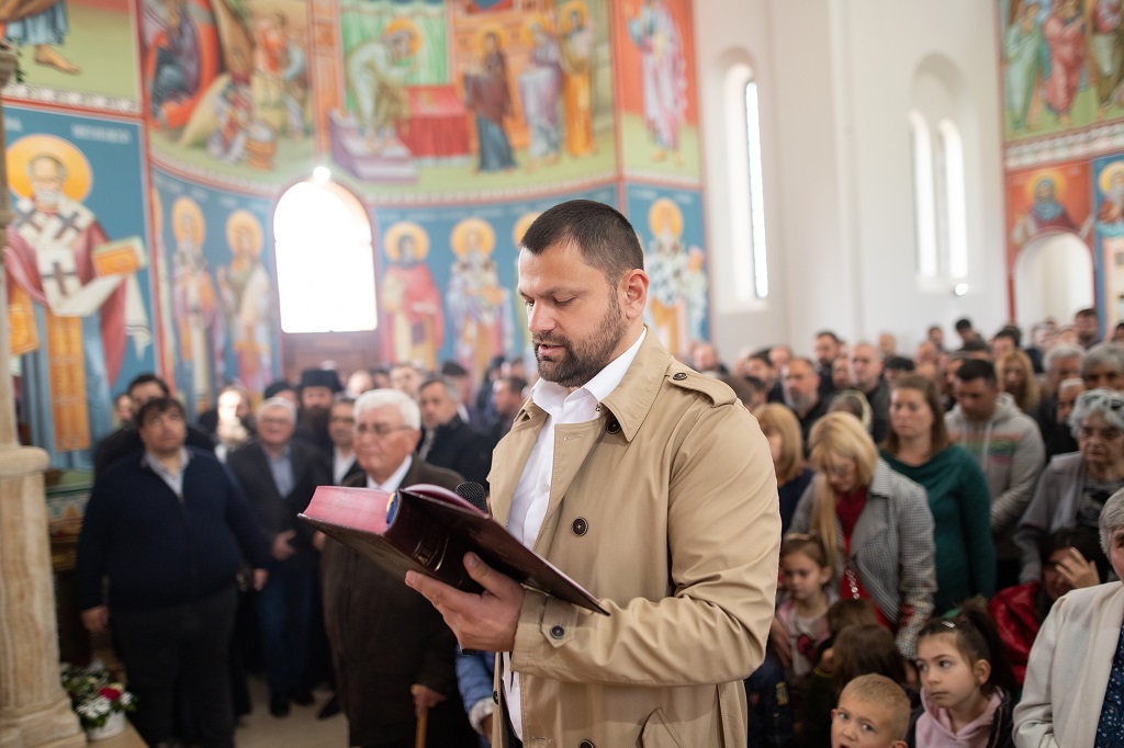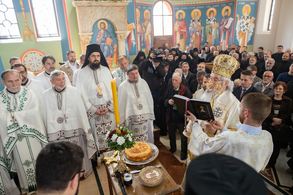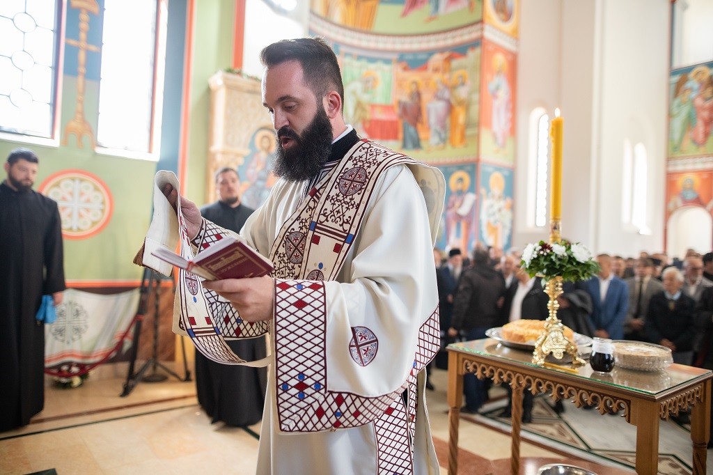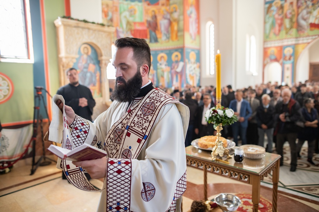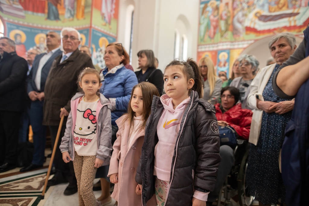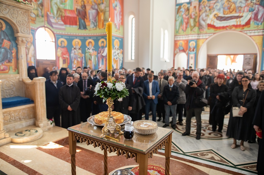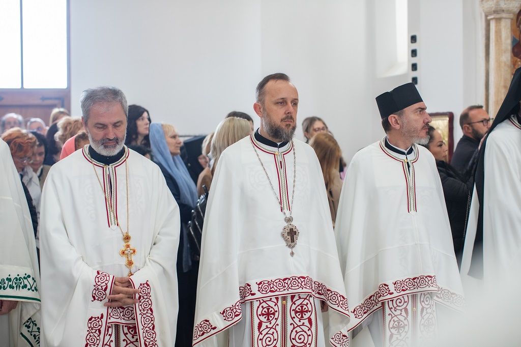 Браћо и сестре! Ако хоћемо искрено да размислимо и да будемо искрени и поштени, онда ћемо схватити и разумети да ми највише сами себе оптерећујемо и то собом. Највише својим егом, највише тиме што сам заокупљен собом, али заокупљен како да се истакнем, како да се покажем, како да се прикажем бољим него што јесам, значајнијим него што јесам. То је у људској природи и то је оно све што у ствари не дозовљава да заиста Христа примимо у себе и да носимо Христа у себи, да би Христос носио нас. Дакле, рекох браћо и сестре, Крст је знак наше припадности, наше вере. И отуда идентитет наше вере се црпи и произилази управо из Васкрсења, а не из неких ритуала. Не из неких наших обичаја, за које мислимо да се на њима заснива идентитет наше вере. Понављам и себи и вама, идентитет наше вере је управо у Васкрсењу, у вери у Васкрсење или другим речима у вери у загробни, вечни живот. То је та вера коју би требало да ми чувамо и којом би требало да живимо. Да чувамо веру, да би нас вера чувала. Да живимо вером, да би вером спознали и Бога и све тајне неба и земља, а значи и да би спознали и тајну другог човека. Све то управо произилази из Васкрсења, а то значи да доброта и врлине које носимо, које испуњавамо нису узалудне и неће бити узалудне. Све што добро учинимо на овоме свету, неће нам пропасти. Неће остати не награђено од стране Бога. Но, не смемо то што чинимо, да чинимо у своју славу и у своје име, да би могао казати – ја сам то, то и то створио – него да то чинимо у славу Божију. Кад чинимо у име Божије, чинимо у име свакога другога. Зато не можемо доброту да одвојимо од Бога, па да припишемо себи.