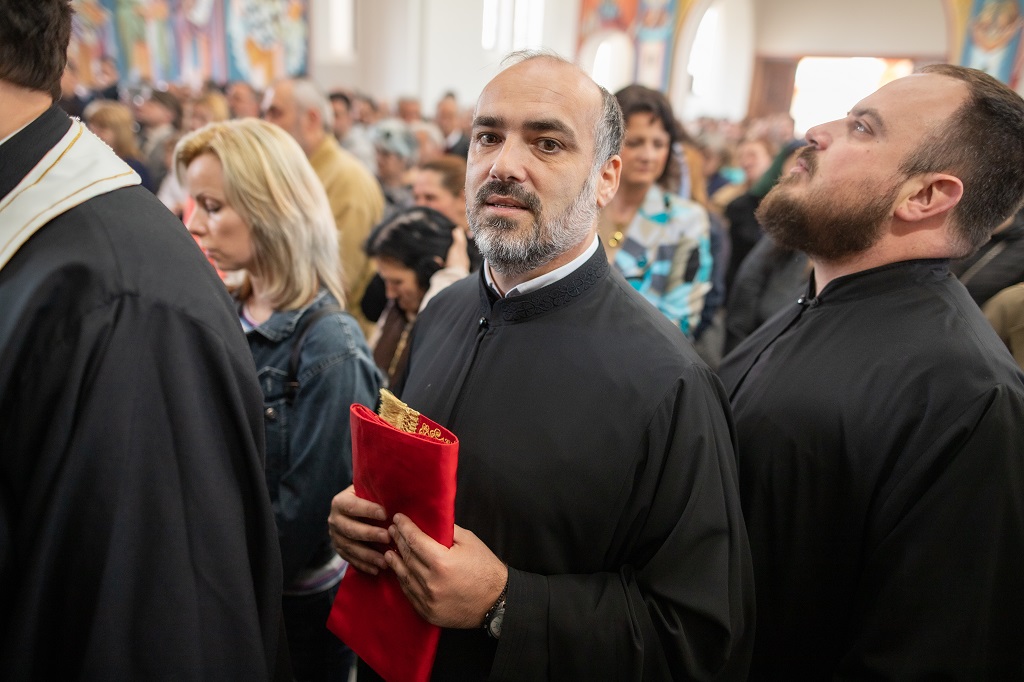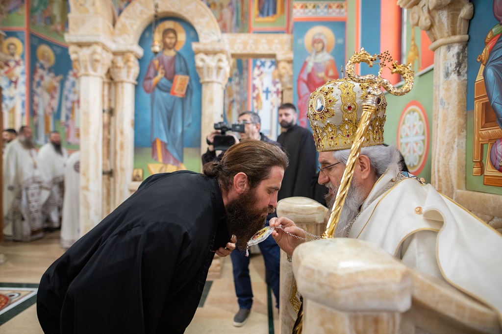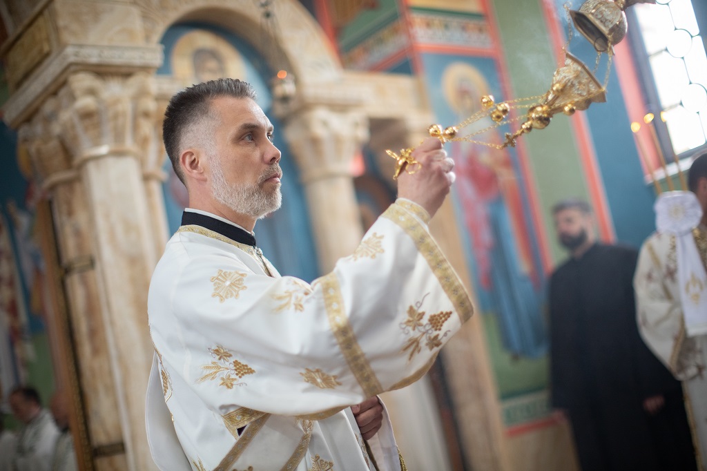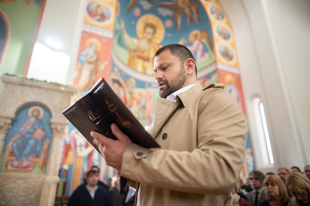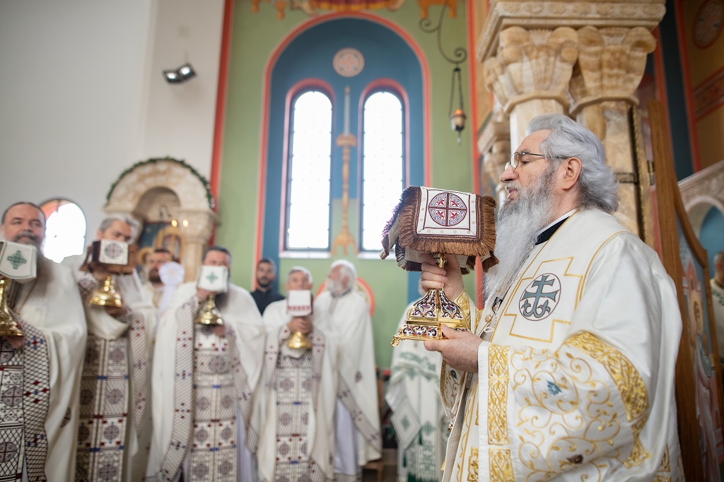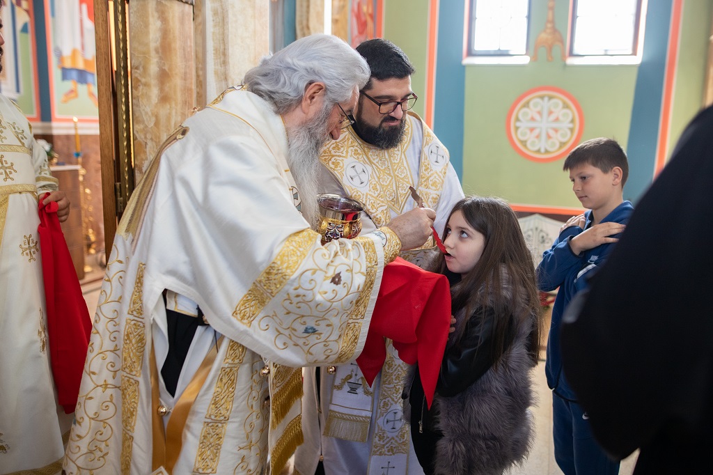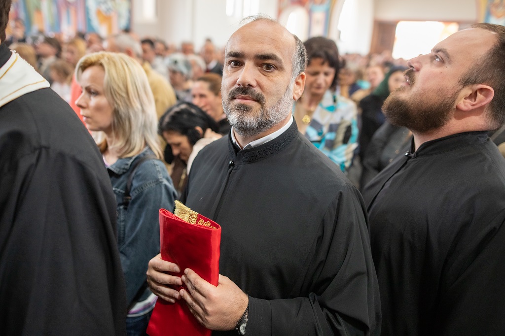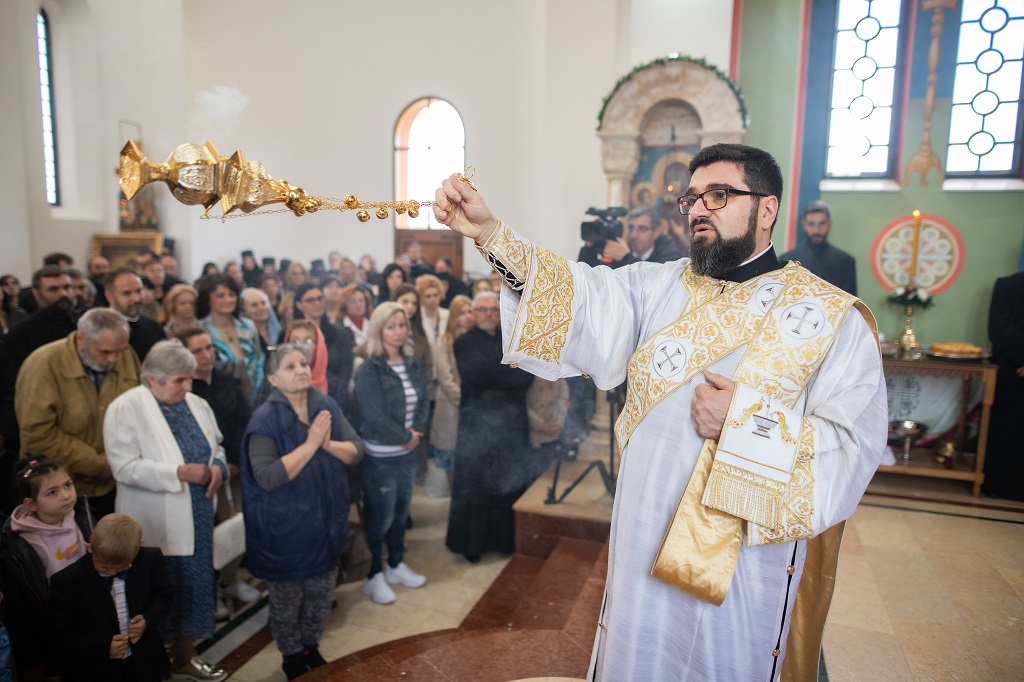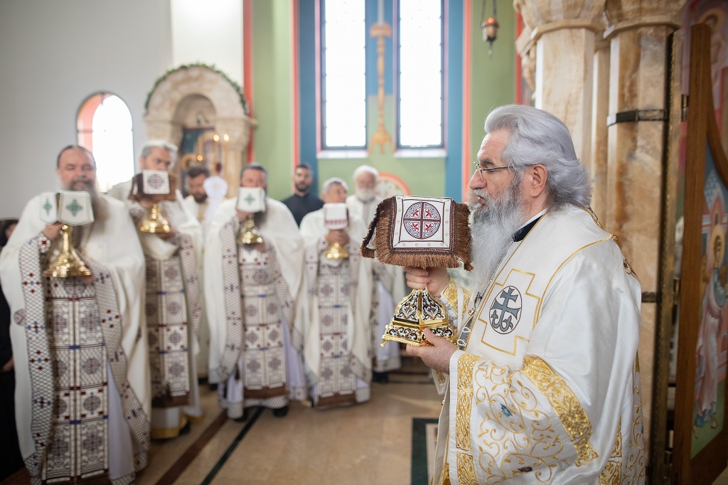 Браћо и сестре! Ако хоћемо искрено да размислимо и да будемо искрени и поштени, онда ћемо схватити и разумети да ми највише сами себе оптерећујемо и то собом. Највише својим егом, највише тиме што сам заокупљен собом, али заокупљен како да се истакнем, како да се покажем, како да се прикажем бољим него што јесам, значајнијим него што јесам. То је у људској природи и то је оно све што у ствари не дозовљава да заиста Христа примимо у себе и да носимо Христа у себи, да би Христос носио нас. Дакле, рекох браћо и сестре, Крст је знак наше припадности, наше вере. И отуда идентитет наше вере се црпи и произилази управо из Васкрсења, а не из неких ритуала. Не из неких наших обичаја, за које мислимо да се на њима заснива идентитет наше вере. Понављам и себи и вама, идентитет наше вере је управо у Васкрсењу, у вери у Васкрсење или другим речима у вери у загробни, вечни живот. То је та вера коју би требало да ми чувамо и којом би требало да живимо. Да чувамо веру, да би нас вера чувала. Да живимо вером, да би вером спознали и Бога и све тајне неба и земља, а значи и да би спознали и тајну другог човека. Све то управо произилази из Васкрсења, а то значи да доброта и врлине које носимо, које испуњавамо нису узалудне и неће бити узалудне. Све што добро учинимо на овоме свету, неће нам пропасти. Неће остати не награђено од стране Бога. Но, не смемо то што чинимо, да чинимо у своју славу и у своје име, да би могао казати – ја сам то, то и то створио – него да то чинимо у славу Божију. Кад чинимо у име Божије, чинимо у име свакога другога. Зато не можемо доброту да одвојимо од Бога, па да припишемо себи.