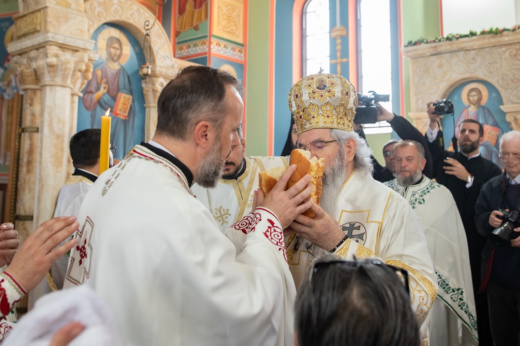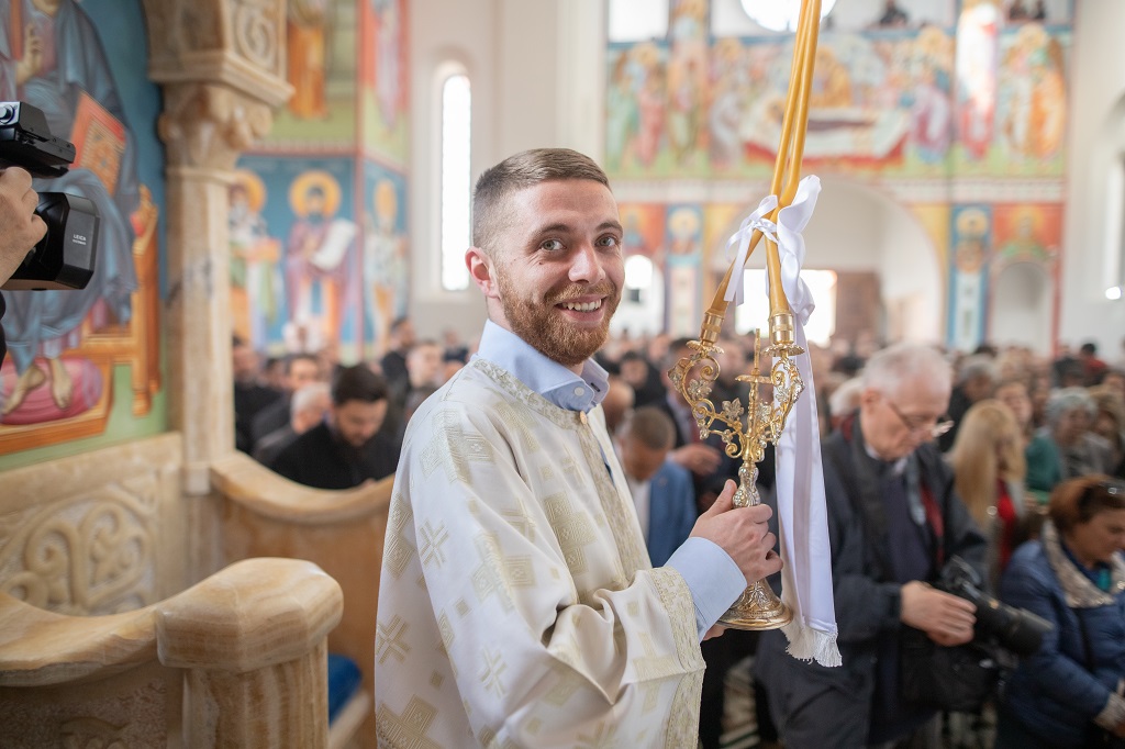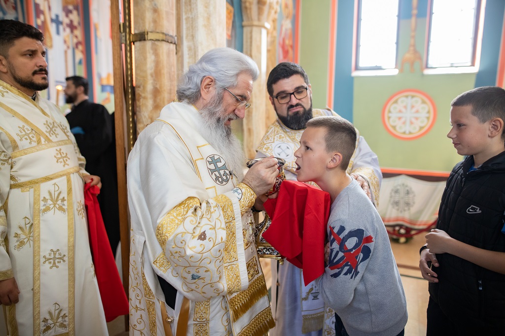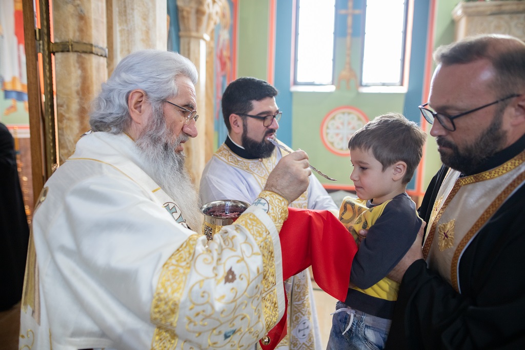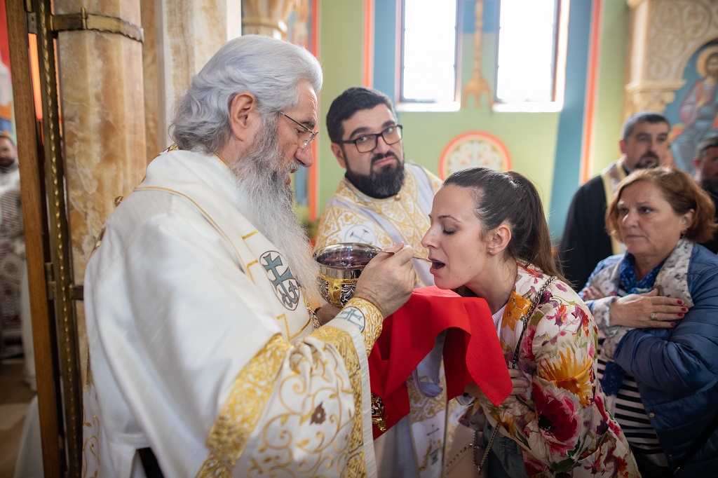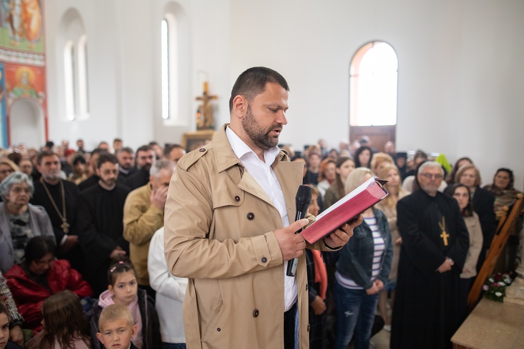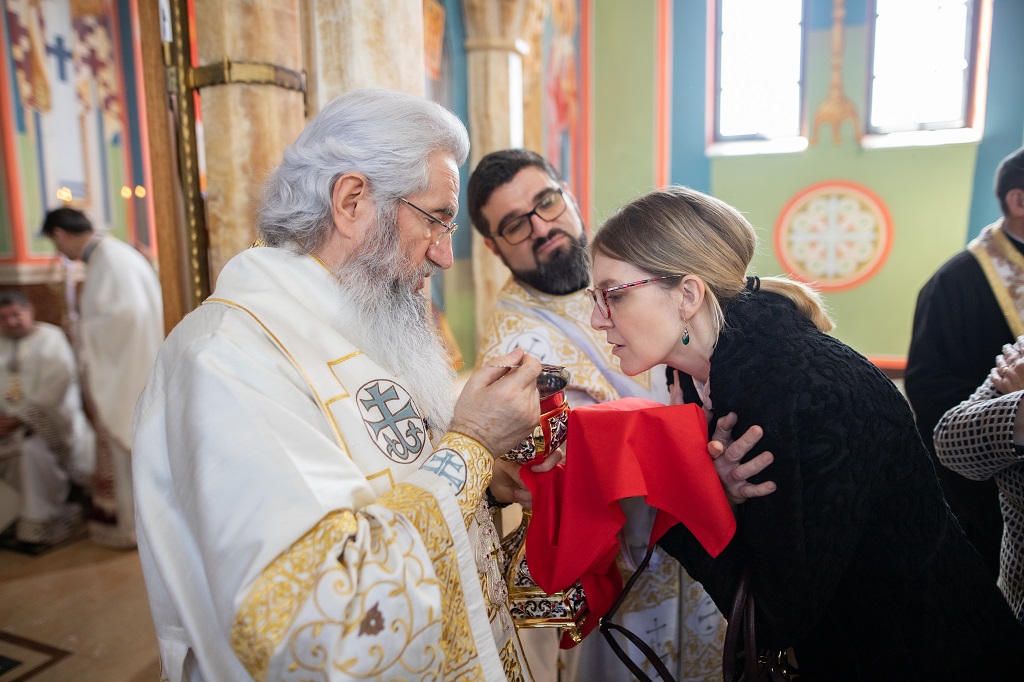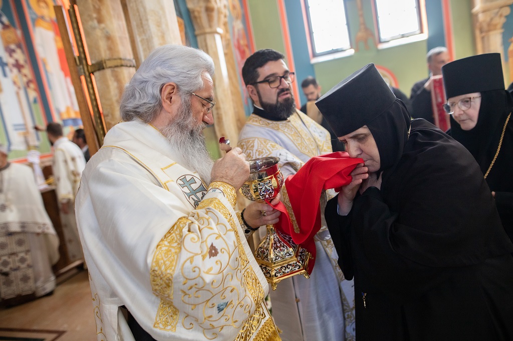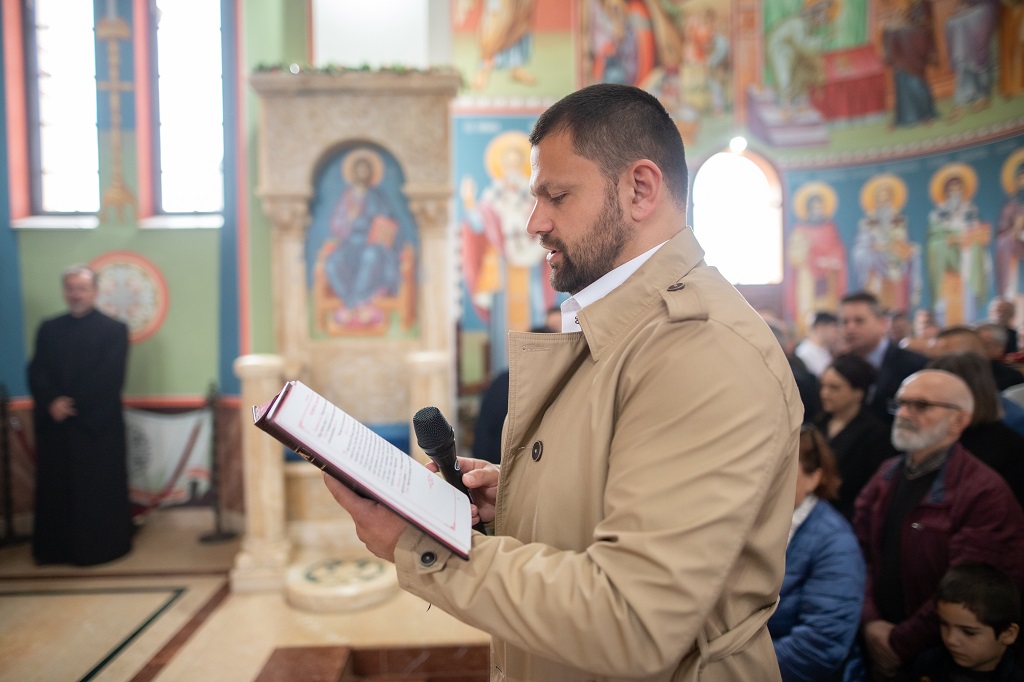 Браћо и сестре! Ако хоћемо искрено да размислимо и да будемо искрени и поштени, онда ћемо схватити и разумети да ми највише сами себе оптерећујемо и то собом. Највише својим егом, највише тиме што сам заокупљен собом, али заокупљен како да се истакнем, како да се покажем, како да се прикажем бољим него што јесам, значајнијим него што јесам. То је у људској природи и то је оно све што у ствари не дозовљава да заиста Христа примимо у себе и да носимо Христа у себи, да би Христос носио нас. Дакле, рекох браћо и сестре, Крст је знак наше припадности, наше вере. И отуда идентитет наше вере се црпи и произилази управо из Васкрсења, а не из неких ритуала. Не из неких наших обичаја, за које мислимо да се на њима заснива идентитет наше вере. Понављам и себи и вама, идентитет наше вере је управо у Васкрсењу, у вери у Васкрсење или другим речима у вери у загробни, вечни живот. То је та вера коју би требало да ми чувамо и којом би требало да живимо. Да чувамо веру, да би нас вера чувала. Да живимо вером, да би вером спознали и Бога и све тајне неба и земља, а значи и да би спознали и тајну другог човека. Све то управо произилази из Васкрсења, а то значи да доброта и врлине које носимо, које испуњавамо нису узалудне и неће бити узалудне. Све што добро учинимо на овоме свету, неће нам пропасти. Неће остати не награђено од стране Бога. Но, не смемо то што чинимо, да чинимо у своју славу и у своје име, да би могао казати – ја сам то, то и то створио – него да то чинимо у славу Божију. Кад чинимо у име Божије, чинимо у име свакога другога. Зато не можемо доброту да одвојимо од Бога, па да припишемо себи.