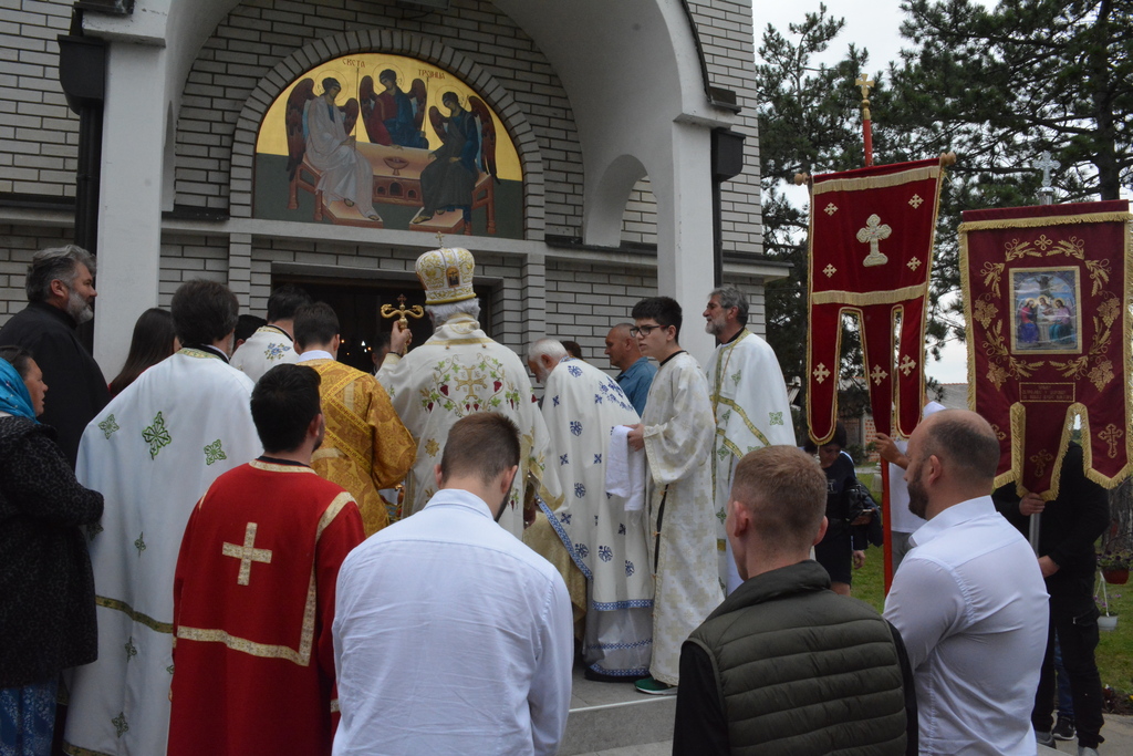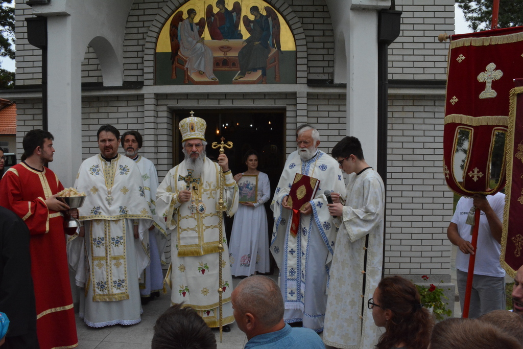Нека нам Господ помогне да не гасимо Духа Божјег у себи, како говори свети апостол Павле. Угасимо ли Духа Божјег у себи, гасимо живот, јер се живот даје Духом Светим. Зато, нека овај дан буде дан када се освећујемо Духом Светим. Нека је срећан и благословен данашњи дан и благословена слава овог храма. Нека сте срећни и благословени сви који сте дошли да се Богу молимо за здравље, добро, мир. Све је ово данас угрожено. Чим човек духовно оболи, одмах почиње да обољева и телесно. Не мора грех да буде узрок сваке наше болести, али узрок сваке наше духовне болести јесте недостатак Духа Божјег у нама. Бог вас благословио!