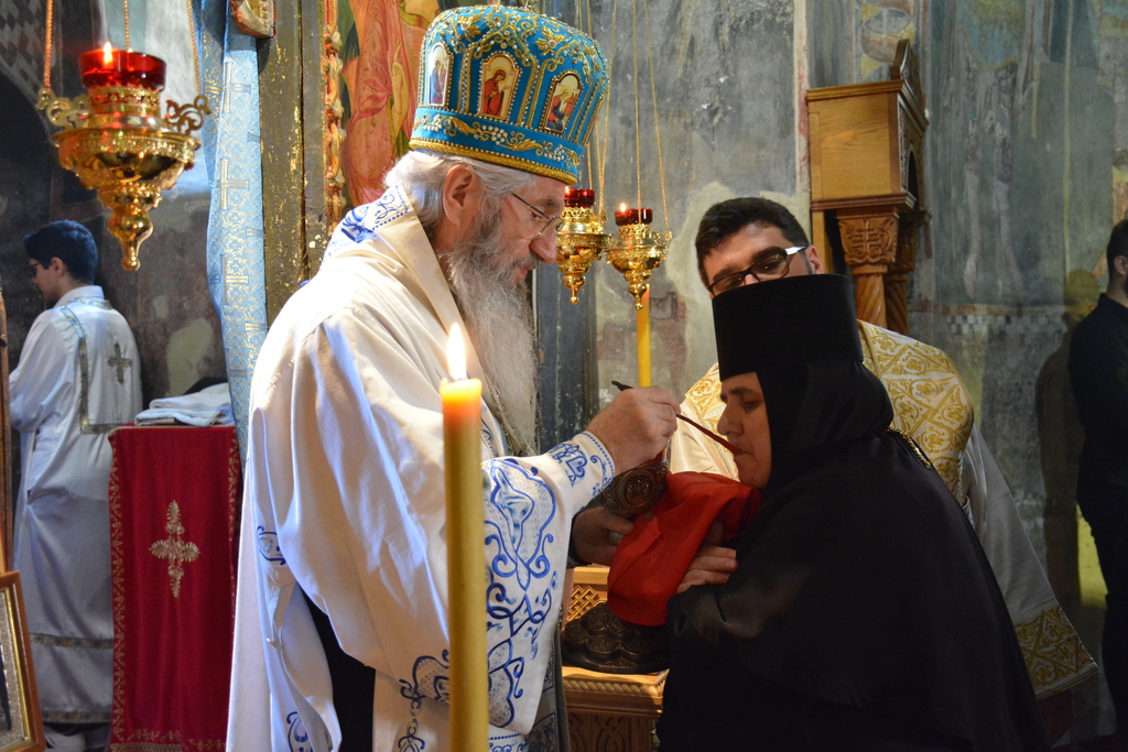 По заанвоној молитви Преосвећени је пресекао славски колач, после чега је литургијско сабрање било продужено трпезом љубави коју је својим трудом и залагањем уприличило сестринство манастира, на челу са игуманијом Нектаријом.