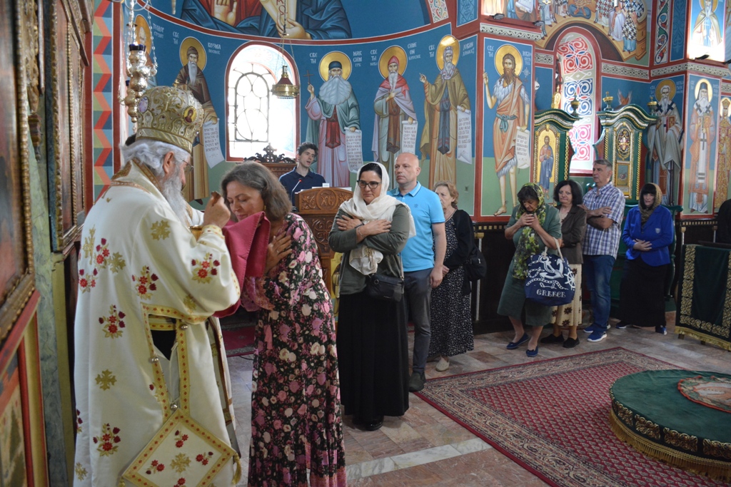 Након причешћа верног народа, Владика је присутнима поделио свој Архијерејски благослов и иконице.