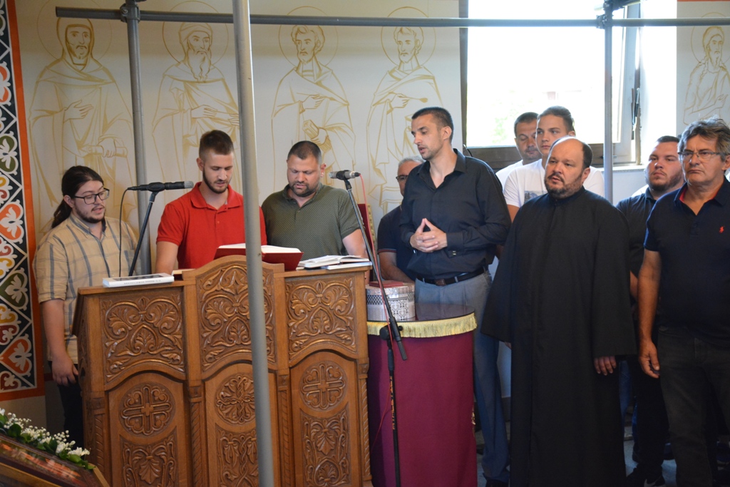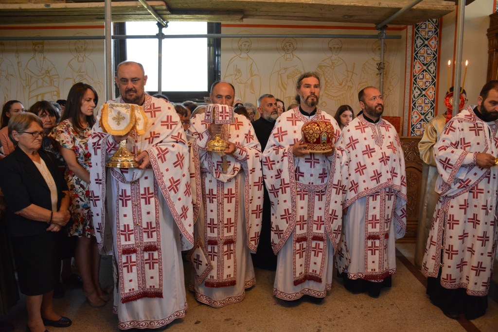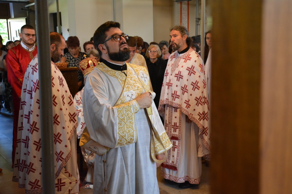 Епископу су саслуживали Архијерејски намесник колубарско посавски, протојереј-ставрофор Златко Димитријевић, поротјереј-ставрофор Мирослав Филиповић,поротјереј Жељко Ж. Ивковић, протонамесник Влада Димитријевић, протођакони Иван Гашић и Никола Урошевић.