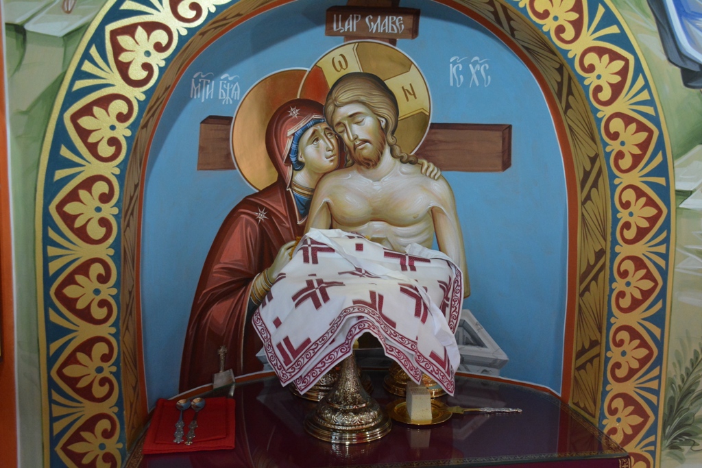 Браћо и сетре, нека је слава Богу у Тројици, који нас је сабрао у овом светом храму да се молимо Богу и служимо Литургују. Кроз давање себе да заблагодаримо Богу за сва добра која нам чини. Бог нам чини много више него што ми знамо и осећамо. Осећај вере да нам Бог помаже је веома важан. Да нас Бог не спасава и не помаже, шта би било од нас? Зато треба стално да будемо у вери и онда ће нас вера научити да благодаримо Богу. Вера је слична поверењу које имамо у некога човека кога волимо и који нам је нешто дао. Савест нас поучава да треба да бладодаримо на том дару и да му узвратимо. Ако дарове Божије скривамо и закопавамо, не умножавамо их, онда нећемо умети ни да благодаримо. Дар се не баца у запећак, већ се ставља на видно место, да бисмо се сетили онога ко нам је тај дар поклонио. Бог је свуда присутан. Када год се помолимо Богу он је ту. Иако га не видимо телесним очима, видимо га духовним очима. Питање је само да ли су наше духовне очи отворене или затворене? Што јевећа наша вера, то је веће и отварање наших духовних очију. Што је већа наша љубав према Богу, то је већа и наша љубав према људима. Зато треба да знамо какав је то дар телесног вида и колико је већи дар дуговног вида, којим видимо и оно што је телесним очима невидљиво. Морамо радити на отварању духовних очију, јер у супротном нећемо ништа видети сем овог овде овоземаљског. Али нас Бог није створио само за овоземаљско, већ за вечност. Овоземаљско је пролазно, иако нам је и то потребно. Тело не може без хране, а душа не може без вере, љубави, Светих тајни и врлина. Зато је и потребно да благодаримо Богу на сваком месту. Данас смо чули једно веома поучно Јеванђеље. Говори нам о једеној жени која је ушла у кућу Симона Фарисеја. Фарисеј је позвао Христа у свој дом из благодарности што га је Господ излечио од губе. Била је то заразна и неизлечива болест, а болесни су бивали изопштени из заједнице да не би заразили друге. Из тог разлога је фарисеј позвао Господа у свој дом да му заблагодари. Ова жена, која вероватно раније није чула за Христа, осетила је потребуда се сретне са Христом, да је он исцелитељ. Осетила је да треба дасе очисти, јер је била грешница. Купила је скупоцено миро, ушла у кућу фарисеја Симона где је владала губа и није се плашила да ће се заразити. Осећала је присуство Бога и да је у тој кући највећи Лекар душе и тела. Ако се зарази он ће је излечити. Она је стала позади и косом отирала ноге Господу. И Симон и сви који су били у кући одмах су почели дапрекоревају Христа. И сам Симон уместо да благодари он каже да је ово Христос, Бог или неки пророк, он би знао каква је ова жена грешница. Чудио се зашто Христос допуштада да му прилазе грешници. А Господ је због грешника и дошао. Грешницима треба спасење, праведници су спасени својимправедним животом. Господ на помисао Симонову прича ону јеванђелску причу о двојици дужника. Један је био дужан педесет, а други петсто динара неком поверитељу. Када нису имали даврате новац и један и други су затражили опроштај. А Господ пита Симона шта он мисли који ће више од ових дужника сада љубути Господа? Симон му одговара да ће то бити онај коме је више опроштено. Сада га Христос благо прекорева и каже му да му он откако је дошао у кућу није није ни ноге опрао нити га помазао мирисима. А ова жена је својом косом опрала његове ноге и помазала их скупоценим мирисима. Зато 